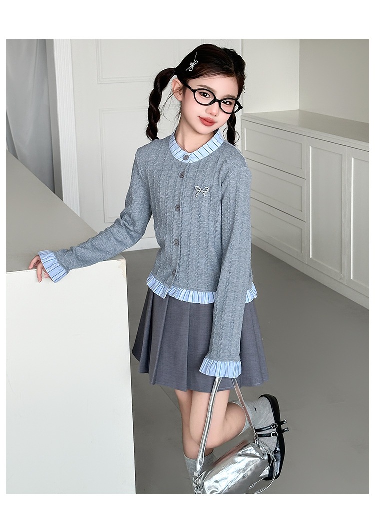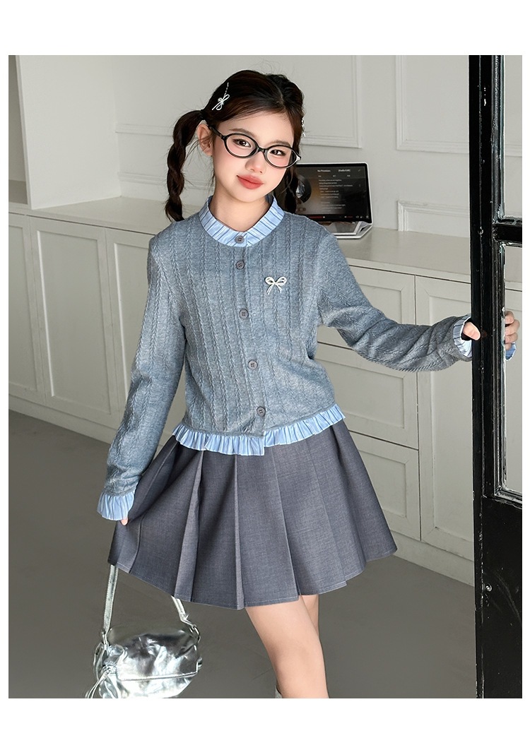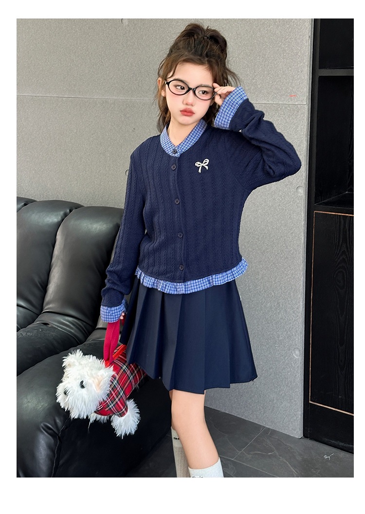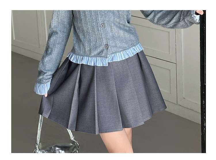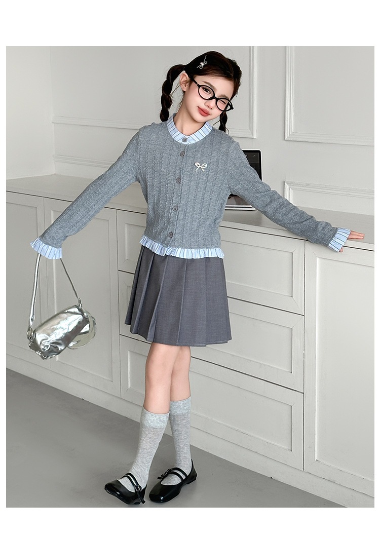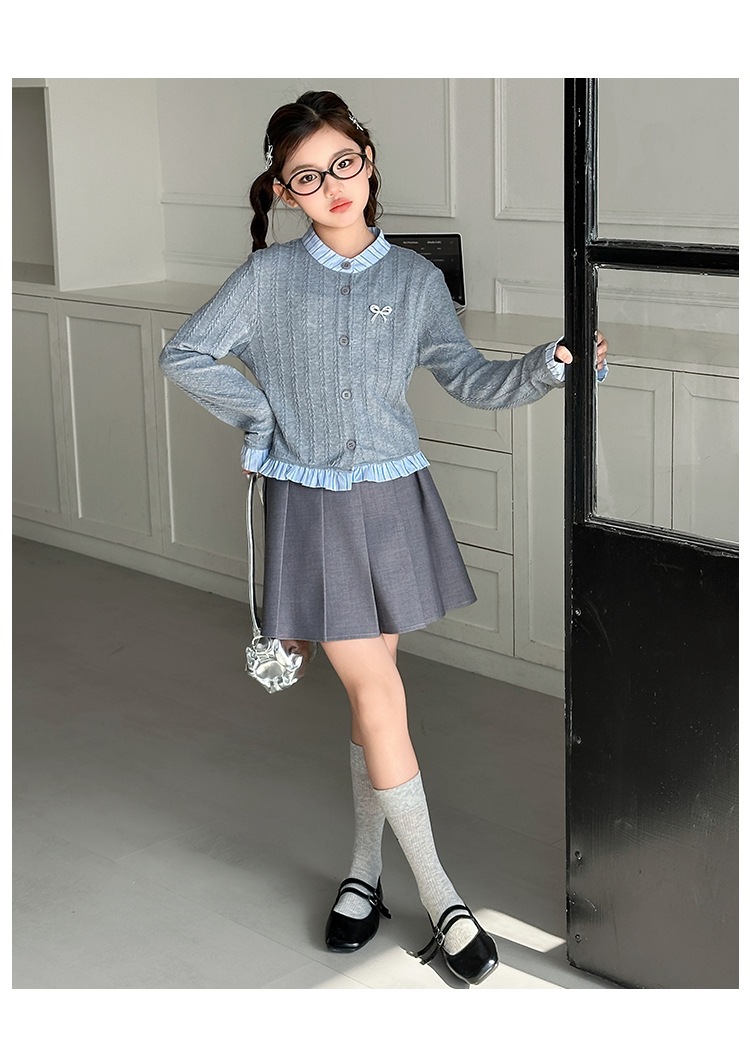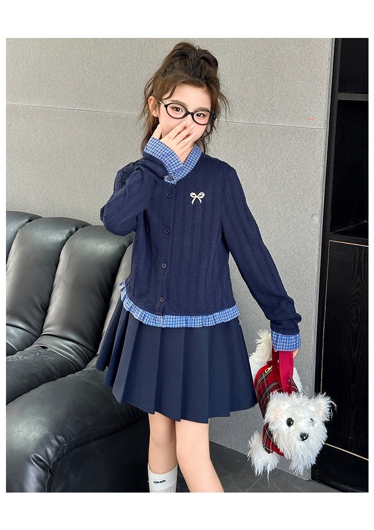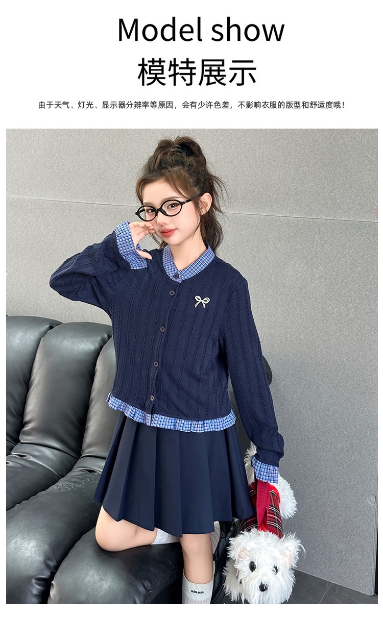 여자 대학 스타일 세트 봄 2025 새로운 스타일 서양식 캐주얼 가짜 투피스 니트웨어 주름 치마 투피스 세트스토어 가기