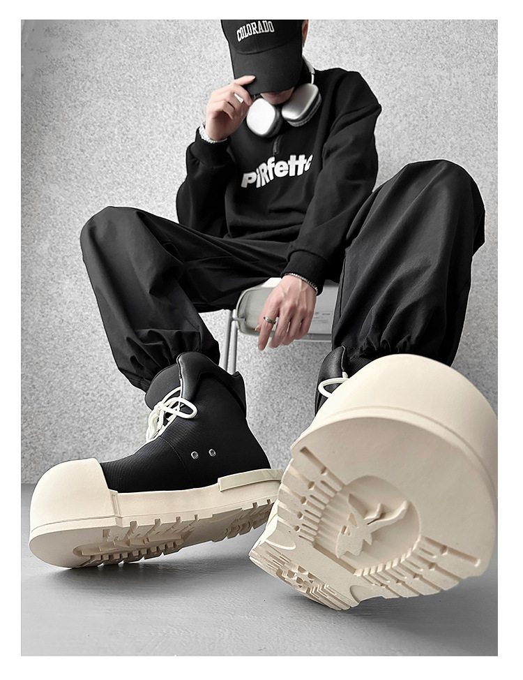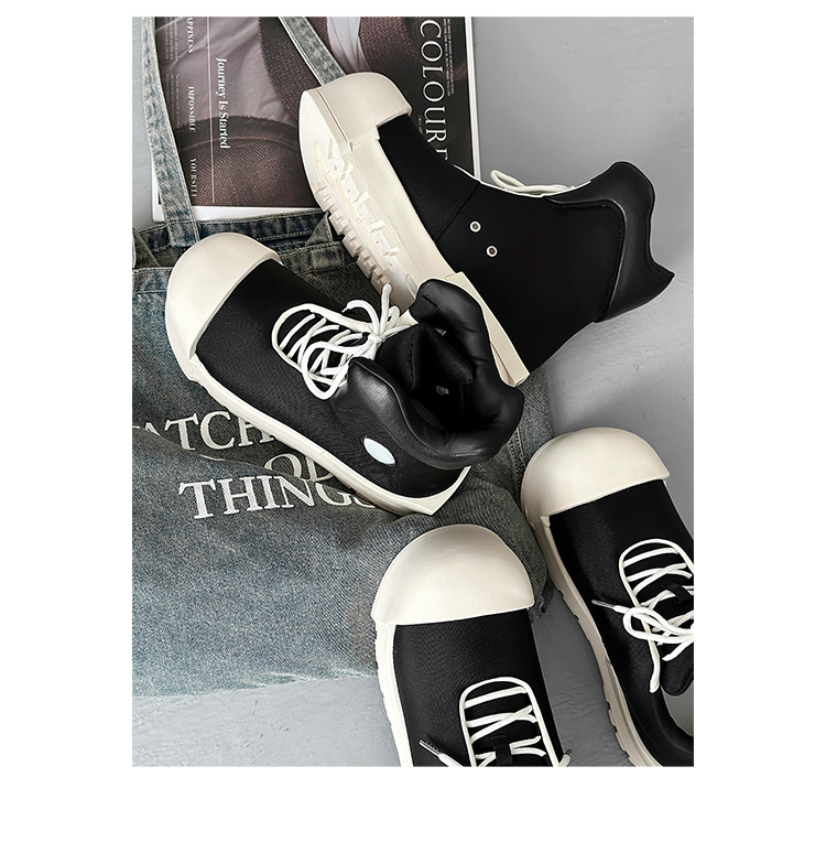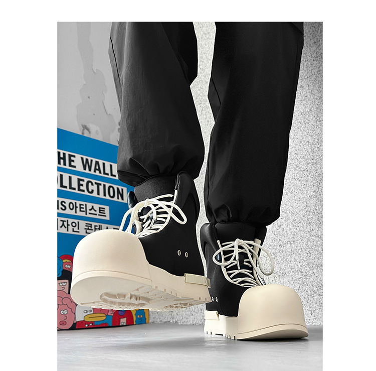 미키 큰 발가락 보드 신발 두꺼운 밑창 증가 캐주얼 올매치 레트로 정품 가죽 높은 미국 가을 및 겨울 짧은 튜브 Baotou