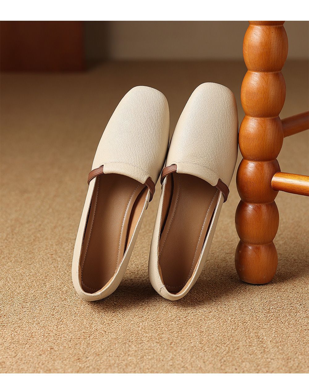 양가죽 화이트 스퀘어 투 로퍼 여성 2024 년 여름 영국 가죽 신발 낮은 굽 싱글 레이어 신발 비니 할머니의 부드러운 밑창 레이디 슈즈