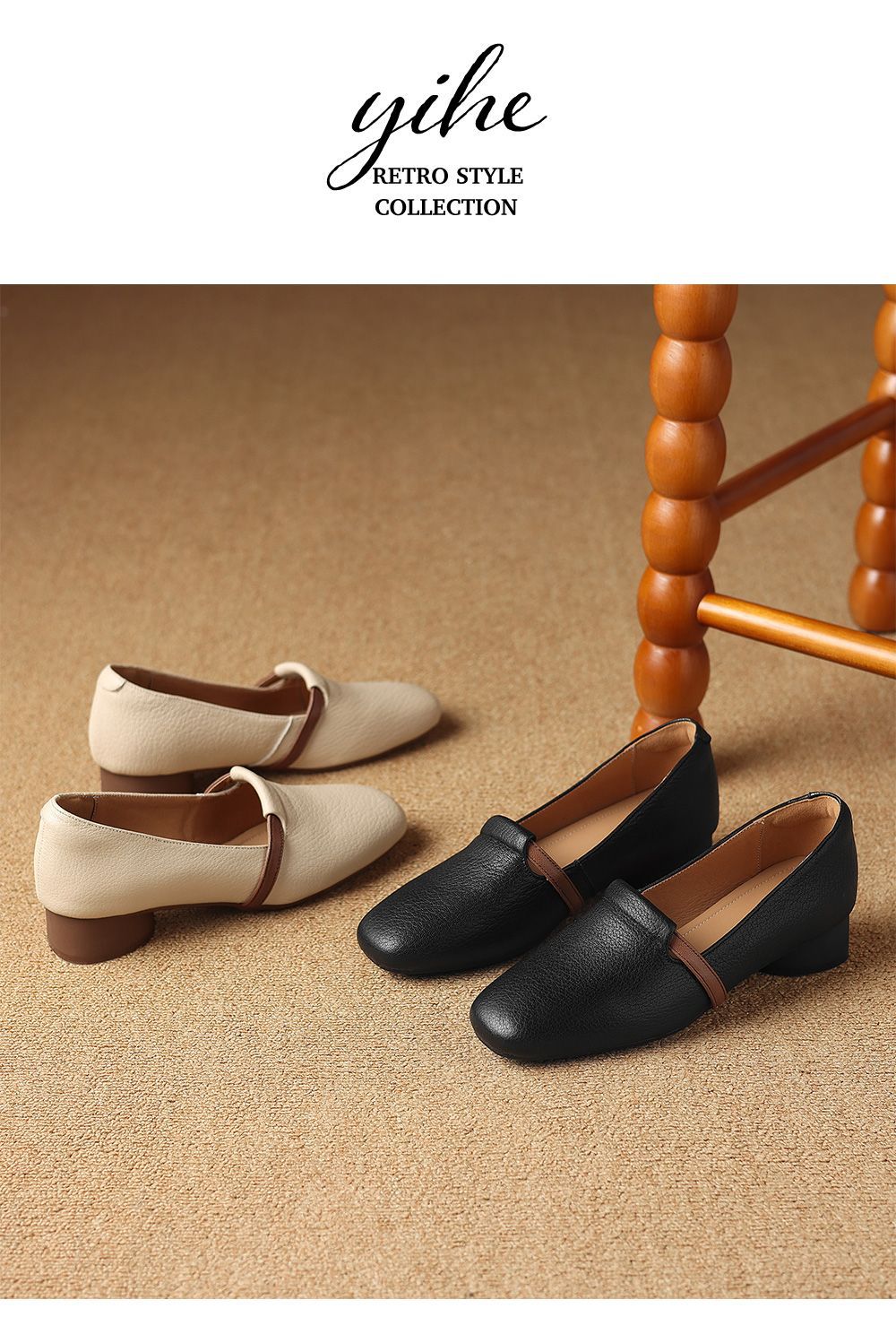 양가죽 화이트 스퀘어 투 로퍼 여성 2024 년 여름 영국 가죽 신발 낮은 굽 싱글 레이어 신발 비니 할머니의 부드러운 밑창 레이디 슈즈스토어 가기