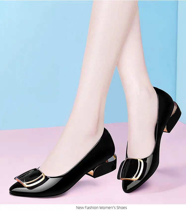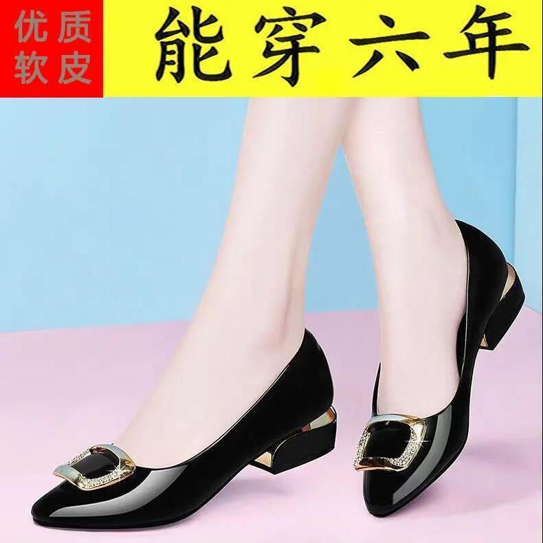 플러스 사이즈 부드러운 가죽 작업 신발 여성의 새로운 올 매치 미드 힐 싱글 레이어 신발스토어 가기