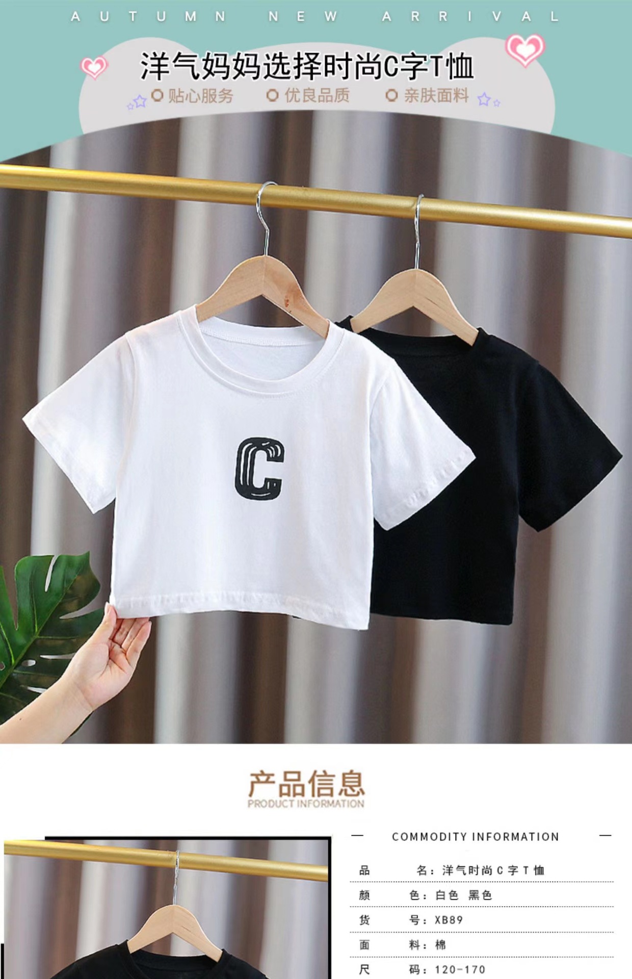 소녀 반팔 티셔츠 여름 2023 새로운 스타일 서양식 화이트 반팔 반팔 아동복 길거리 튀김 얇은 탑 트렌디 1스토어 가기