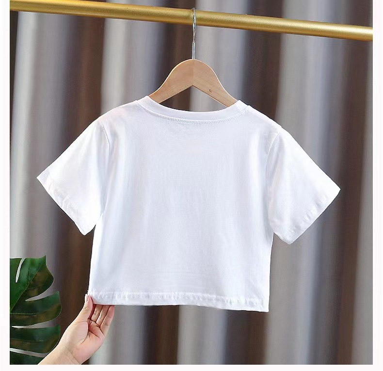 소녀 반팔 티셔츠 여름 2023 새로운 스타일 서양식 화이트 반팔 반팔 아동복 길거리 튀김 얇은 탑 트렌디 1