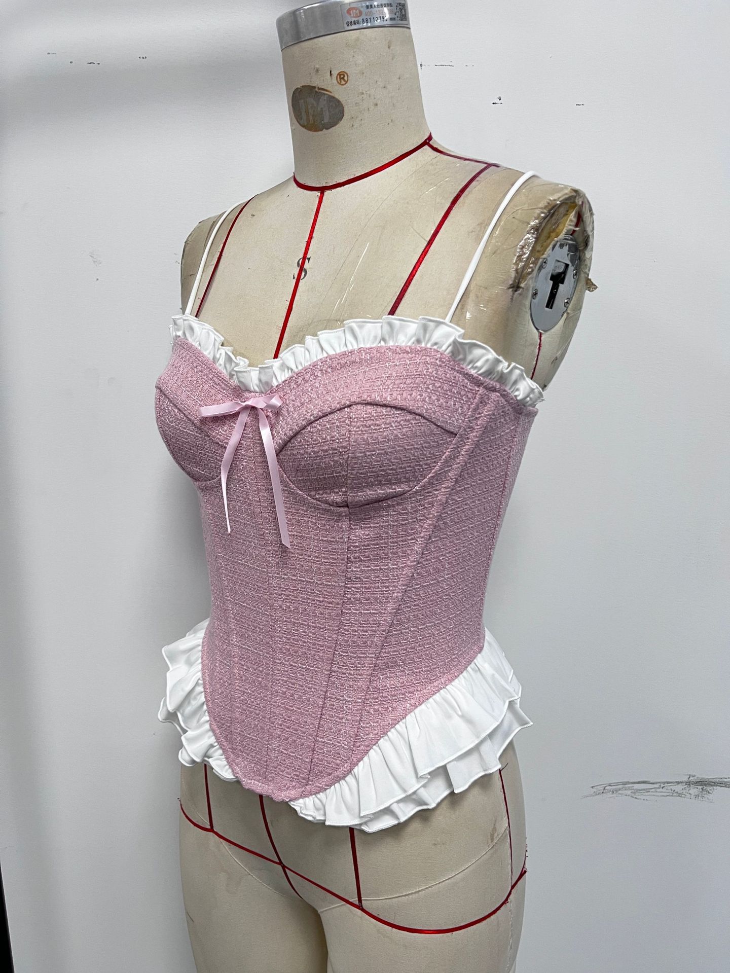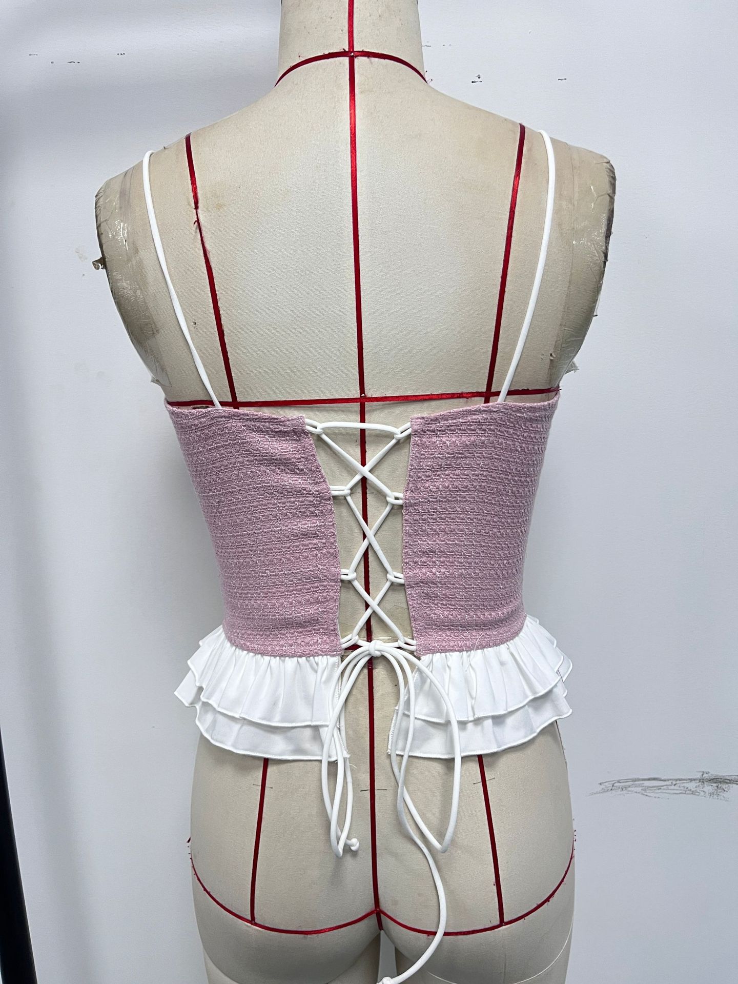 국경 간 새로운 유럽과 미국의 거리 바느질 귀 가장자리 디자인 뜨거운 소녀 가슴은 생선 뼈 작은 조끼 톱 Z0949스토어 가기