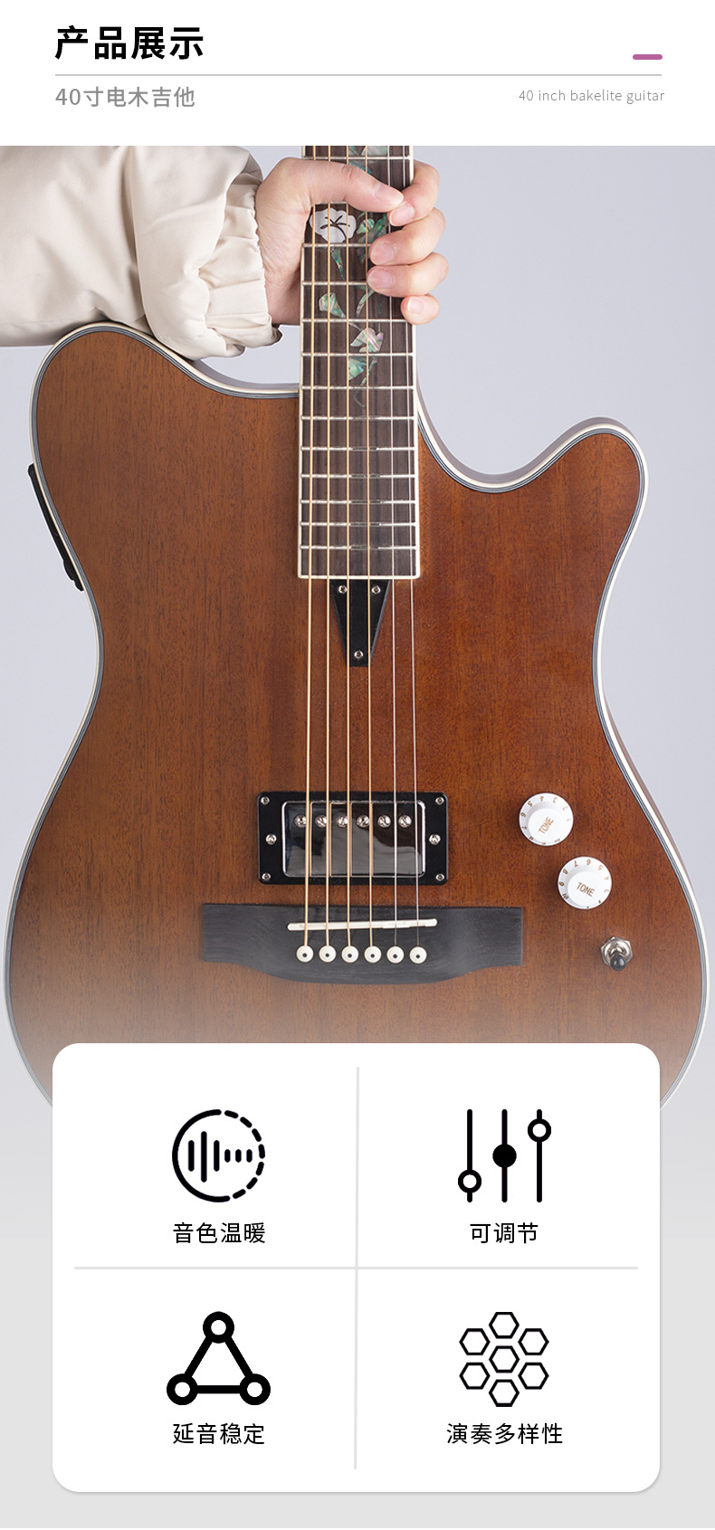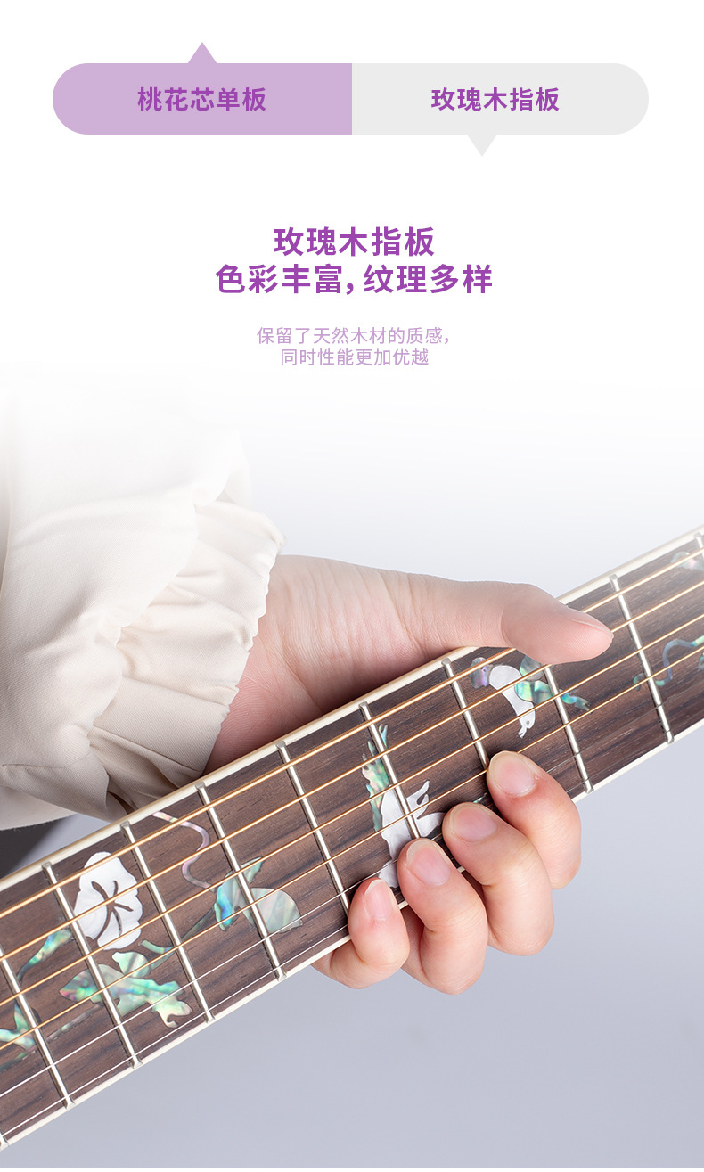 40 인치 매트 풀 복숭아 꽃 코어 포크 기타 전기 어쿠스틱 기타 전기 어쿠스틱 기타 일렉트릭 박스 기타 전체 베니어 효과 장치스토어 가기