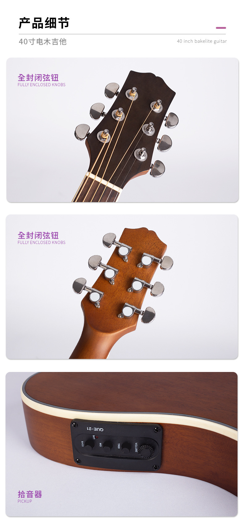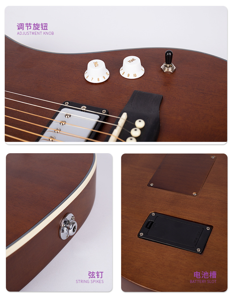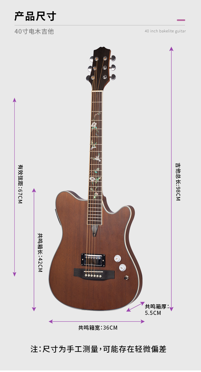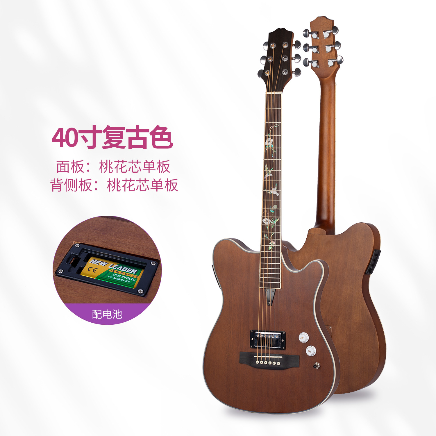 40 인치 매트 풀 복숭아 꽃 코어 포크 기타 전기 어쿠스틱 기타 전기 어쿠스틱 기타 일렉트릭 박스 기타 전체 베니어 효과 장치