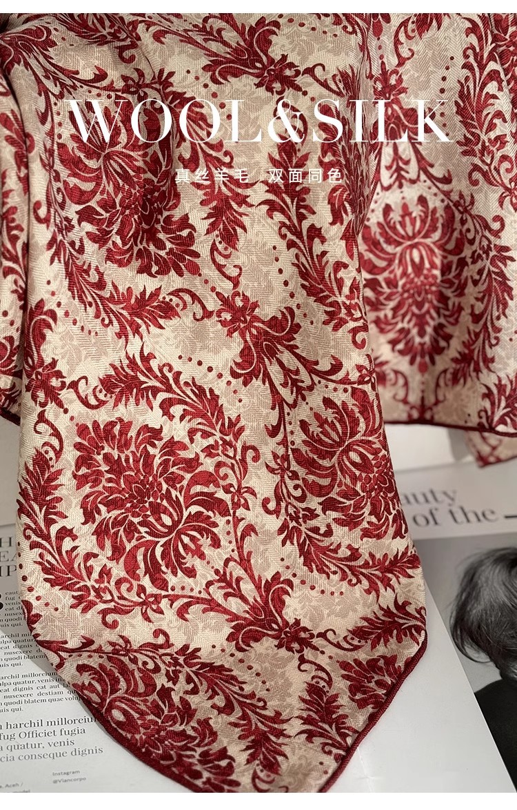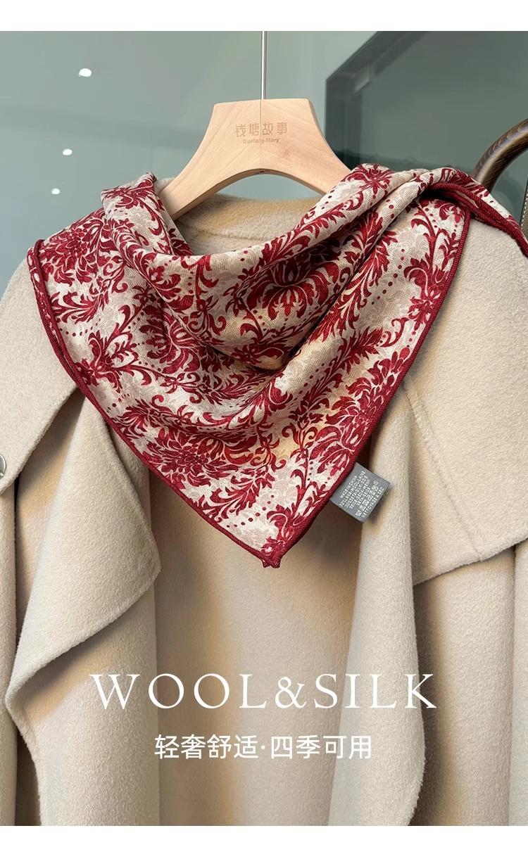 "마스터 클래식 아트" 실크와 울 스카프 여성 가을 겨울 다기능 실크 울 스퀘어 스카프 목도리