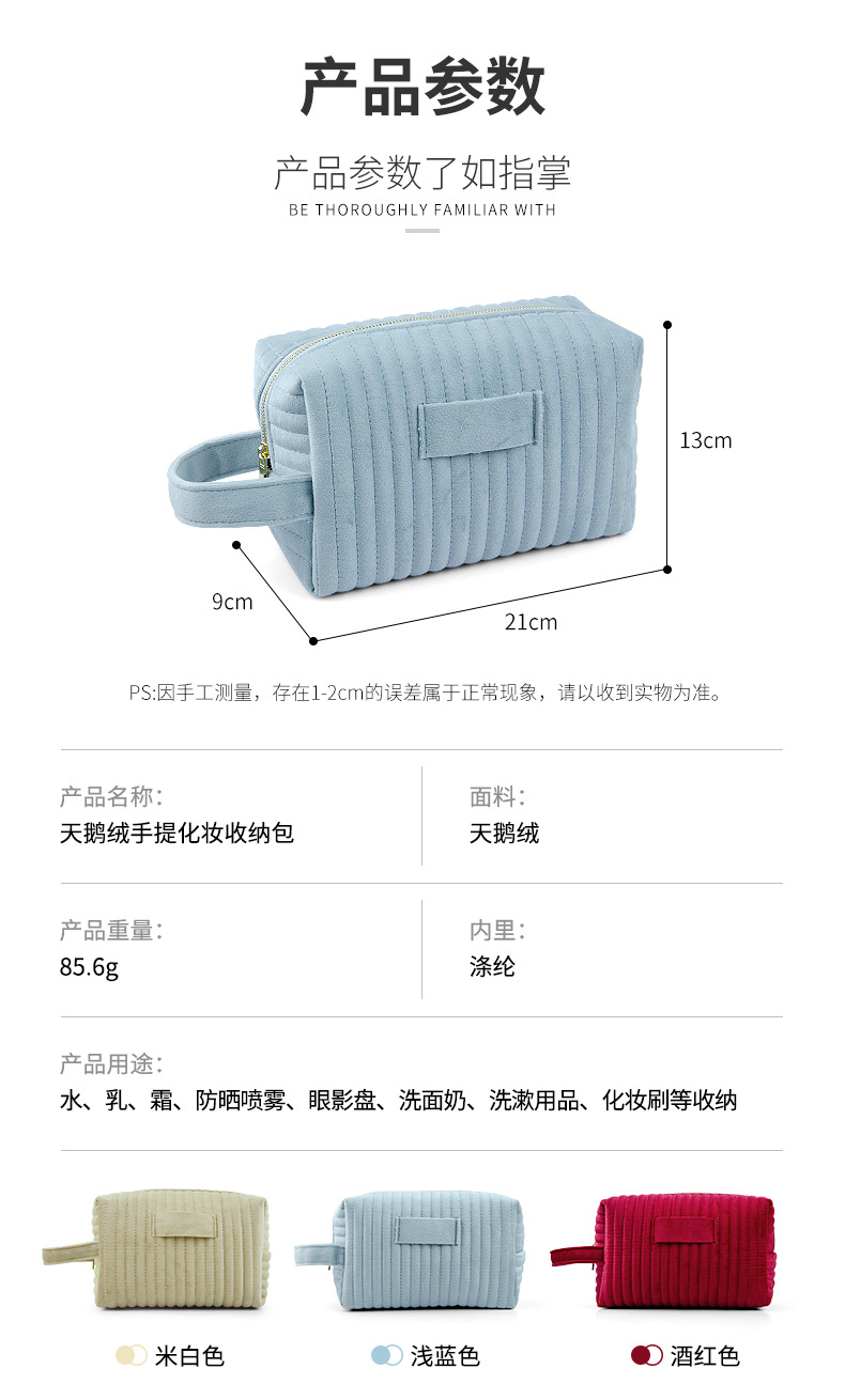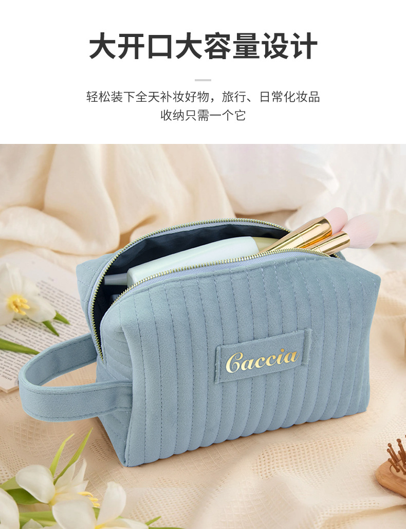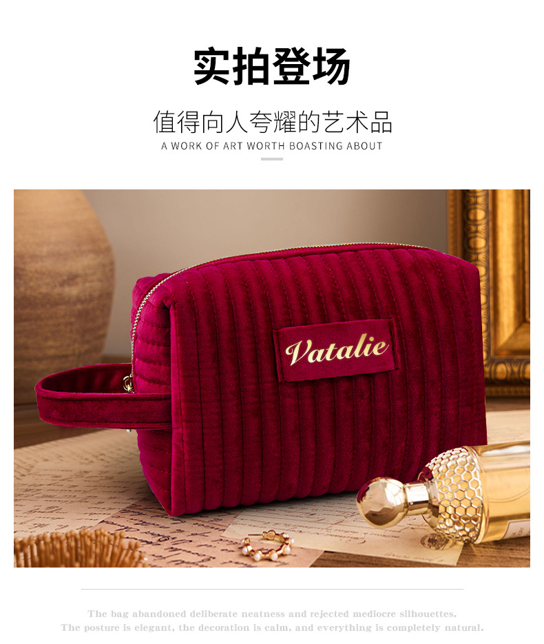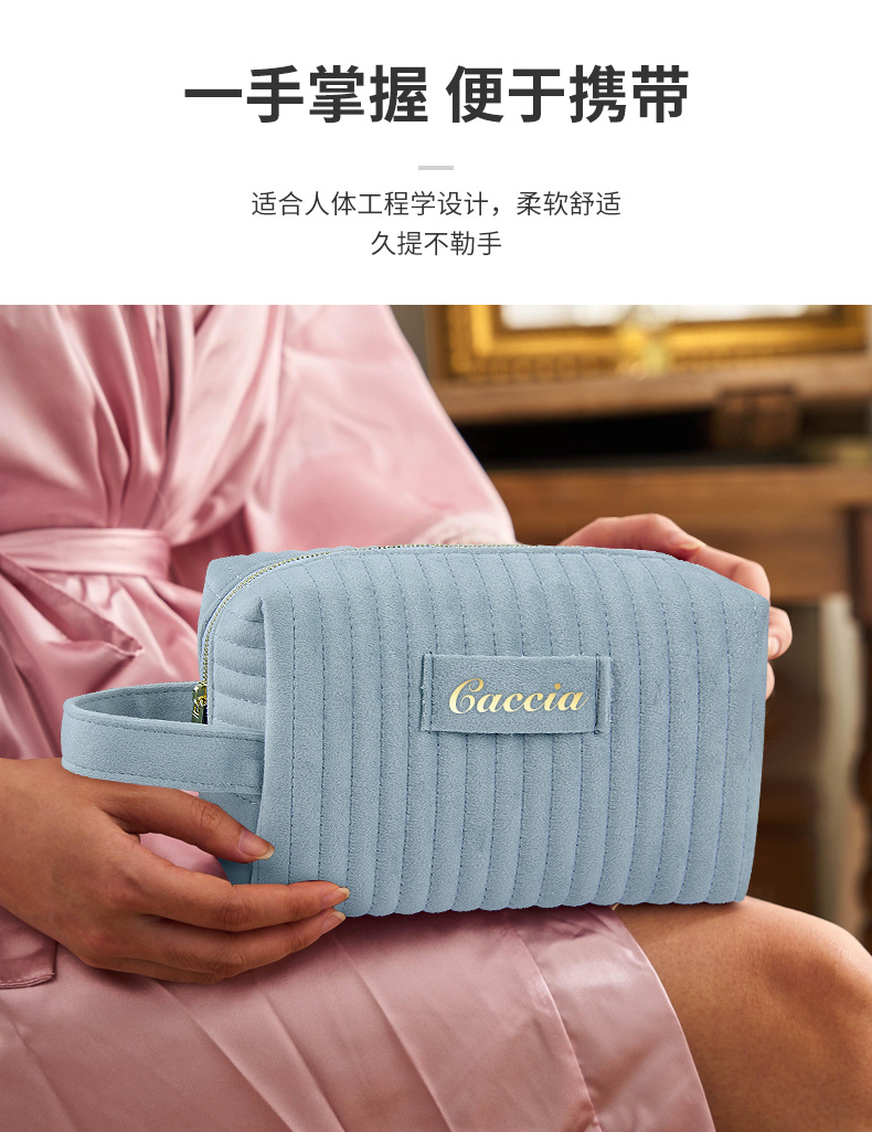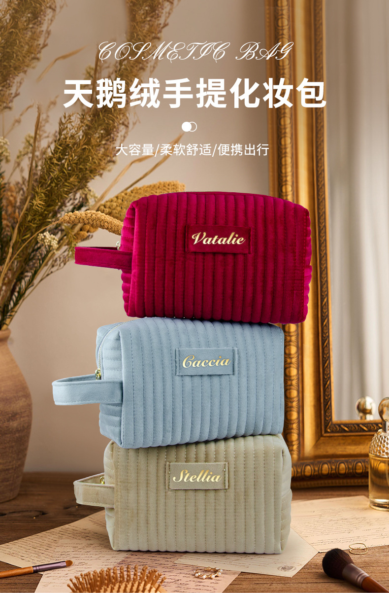 跨境天鹅绒化妆包女大容量高级感便携外出旅行洗漱用品手提收纳包