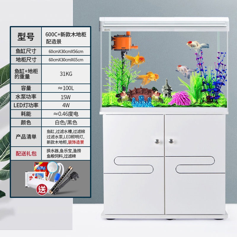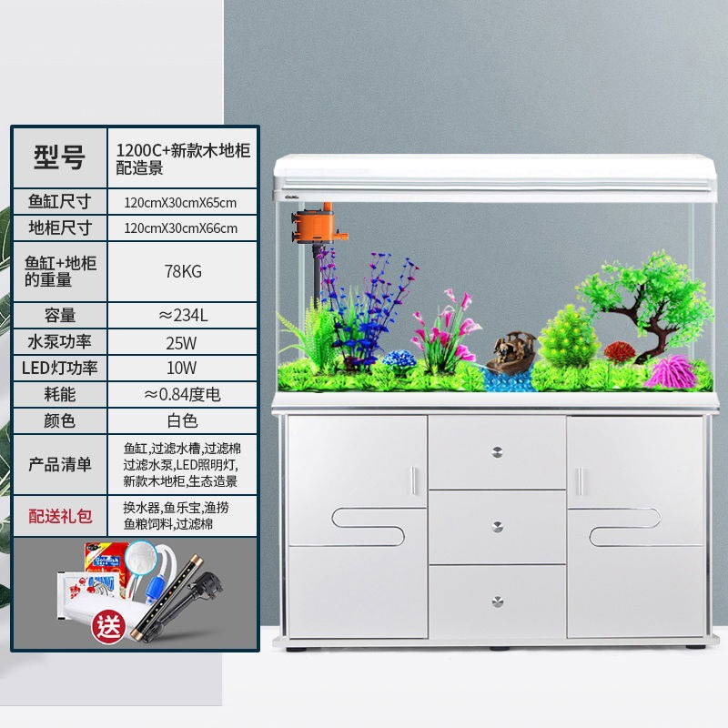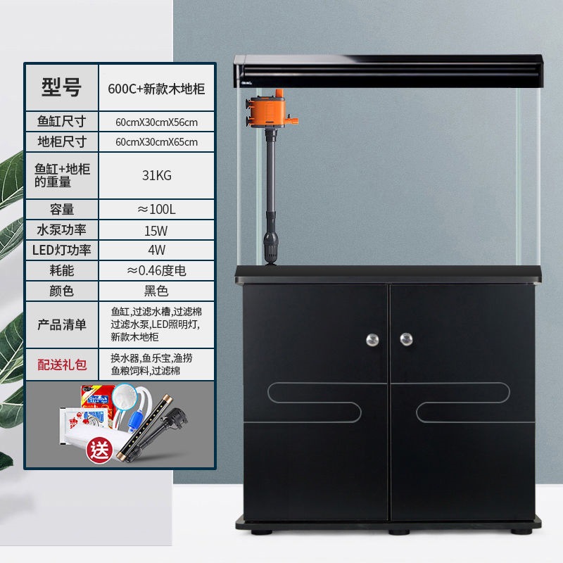 중소형 어항 수족관 게으른 가정 거실 물없는 생태 어항 대형 유리 금붕어 탱크 캐비닛