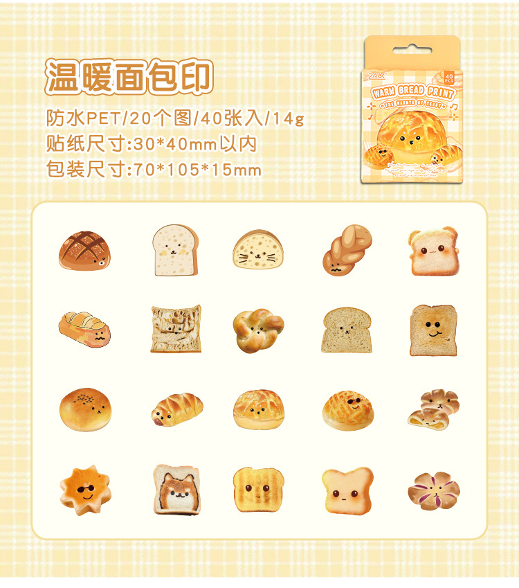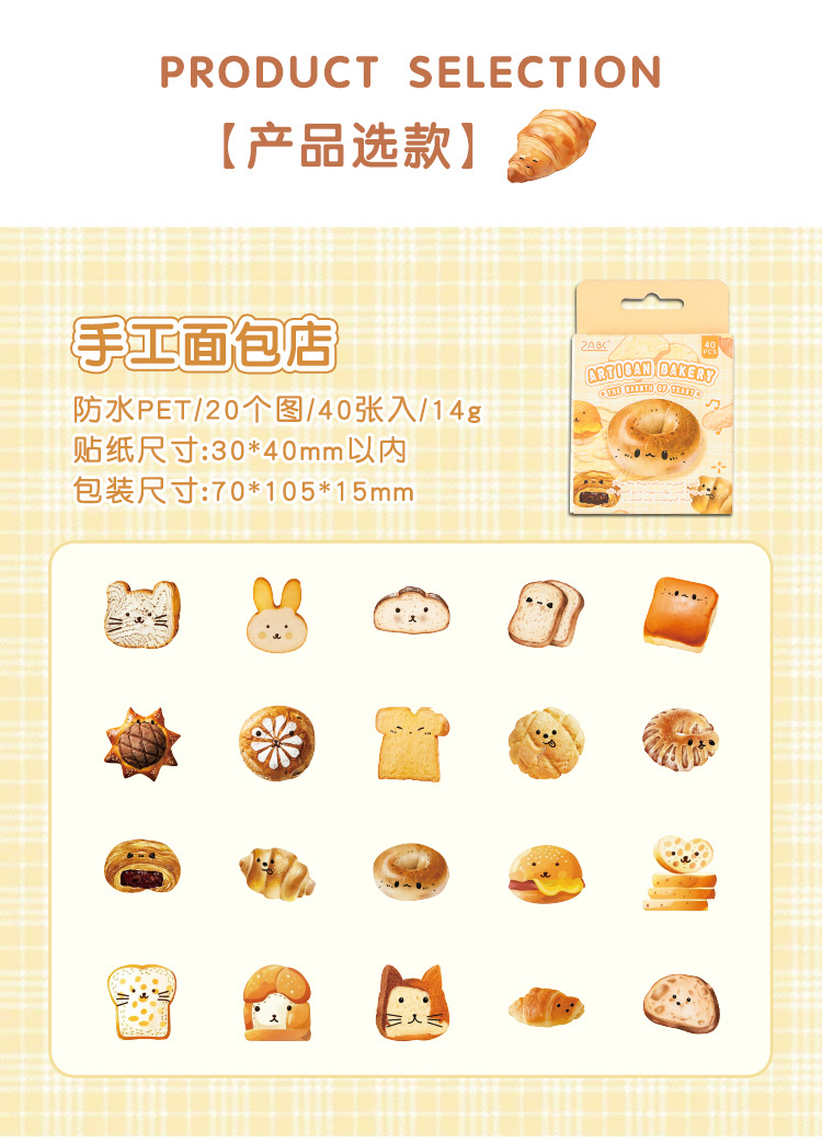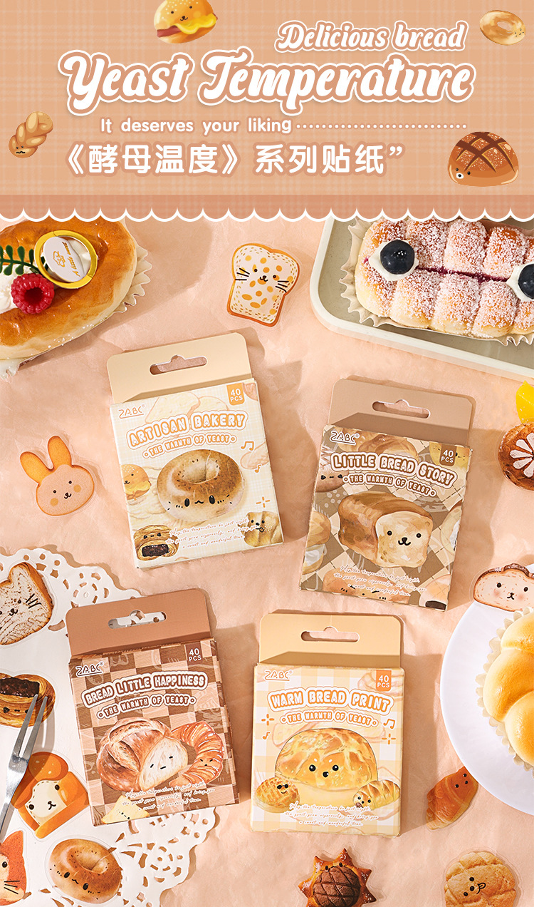 ZABC 국경 상자 애완 동물 스티커 효모 온도 시리즈 40 빵 딤섬 테마 소재 4스토어 가기