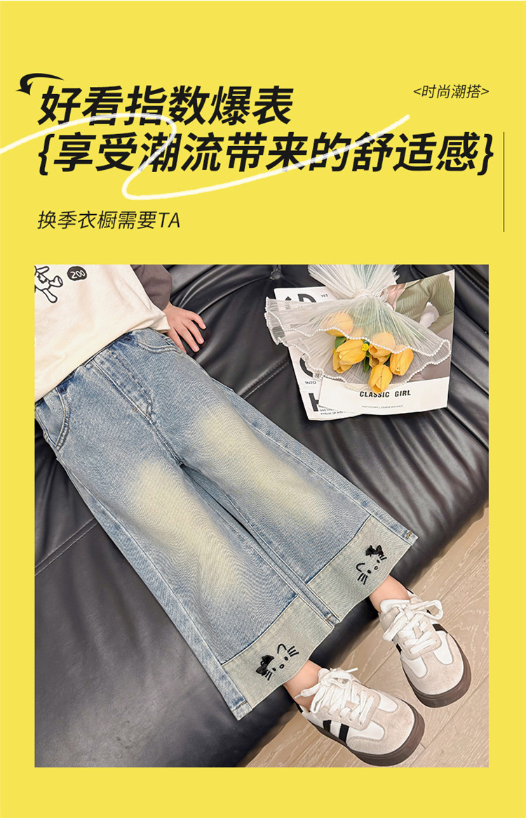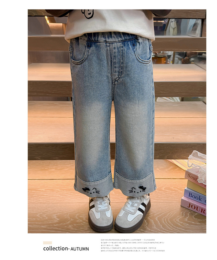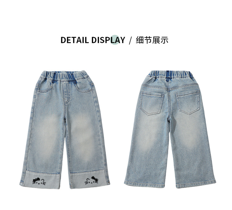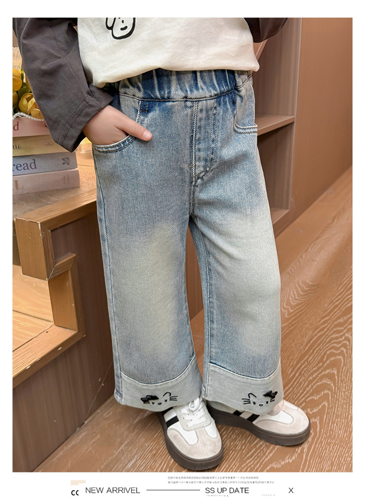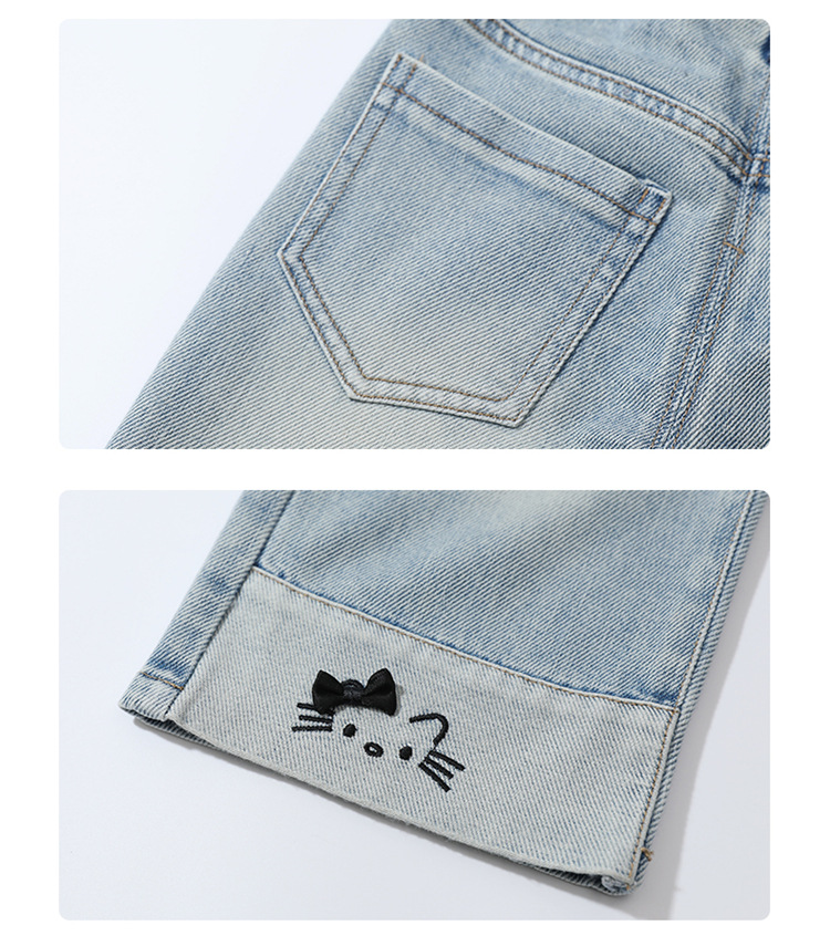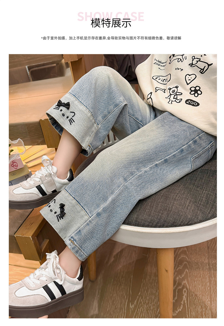 여자 키티 청바지 봄과 가을 2025 새로운 패션 어린 소녀 세련된 바지 중소 어린이 스트레이트 다리 바지스토어 가기