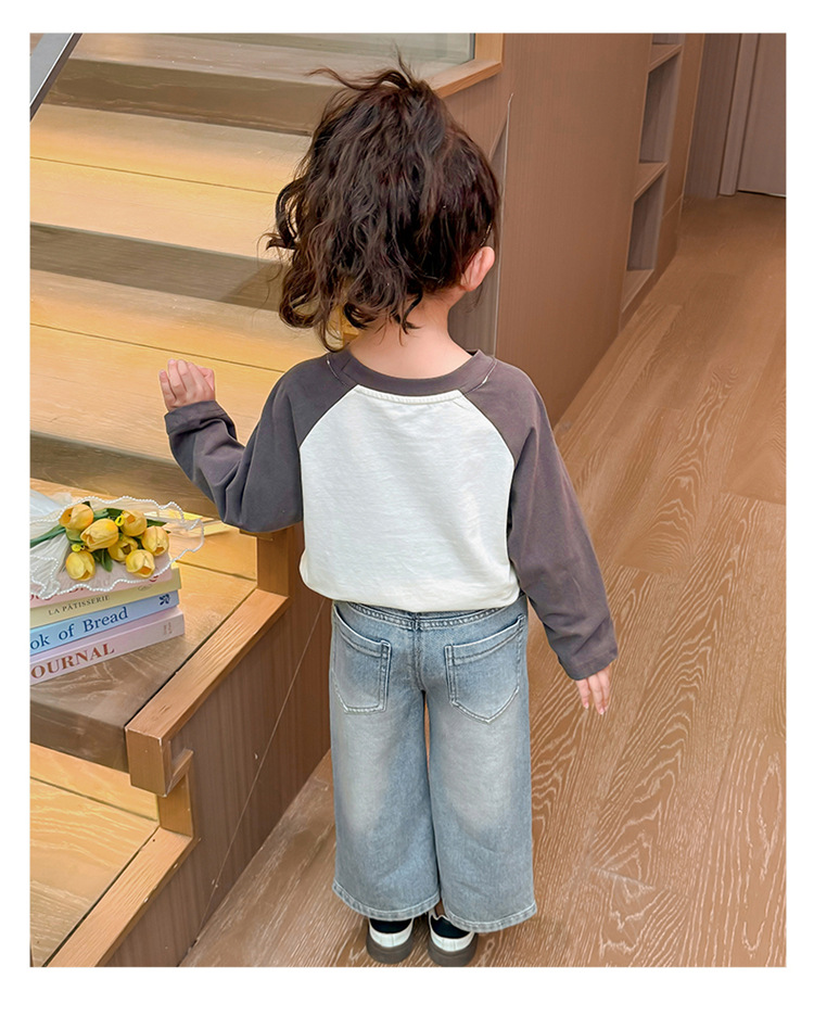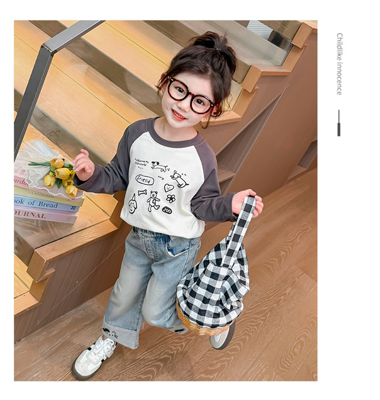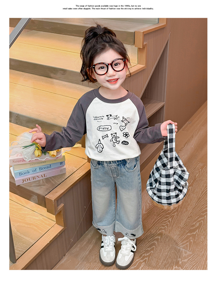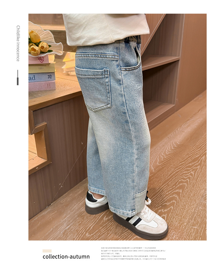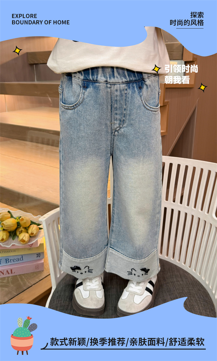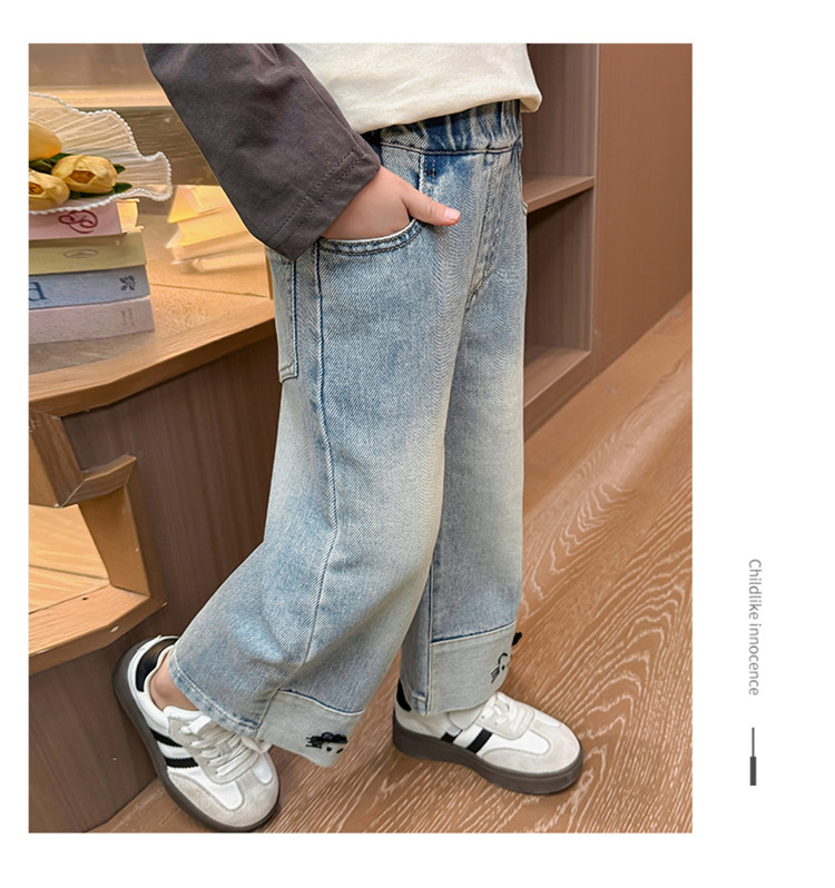 여자 키티 청바지 봄과 가을 2025 새로운 패션 어린 소녀 세련된 바지 중소 어린이 스트레이트 다리 바지스토어 가기