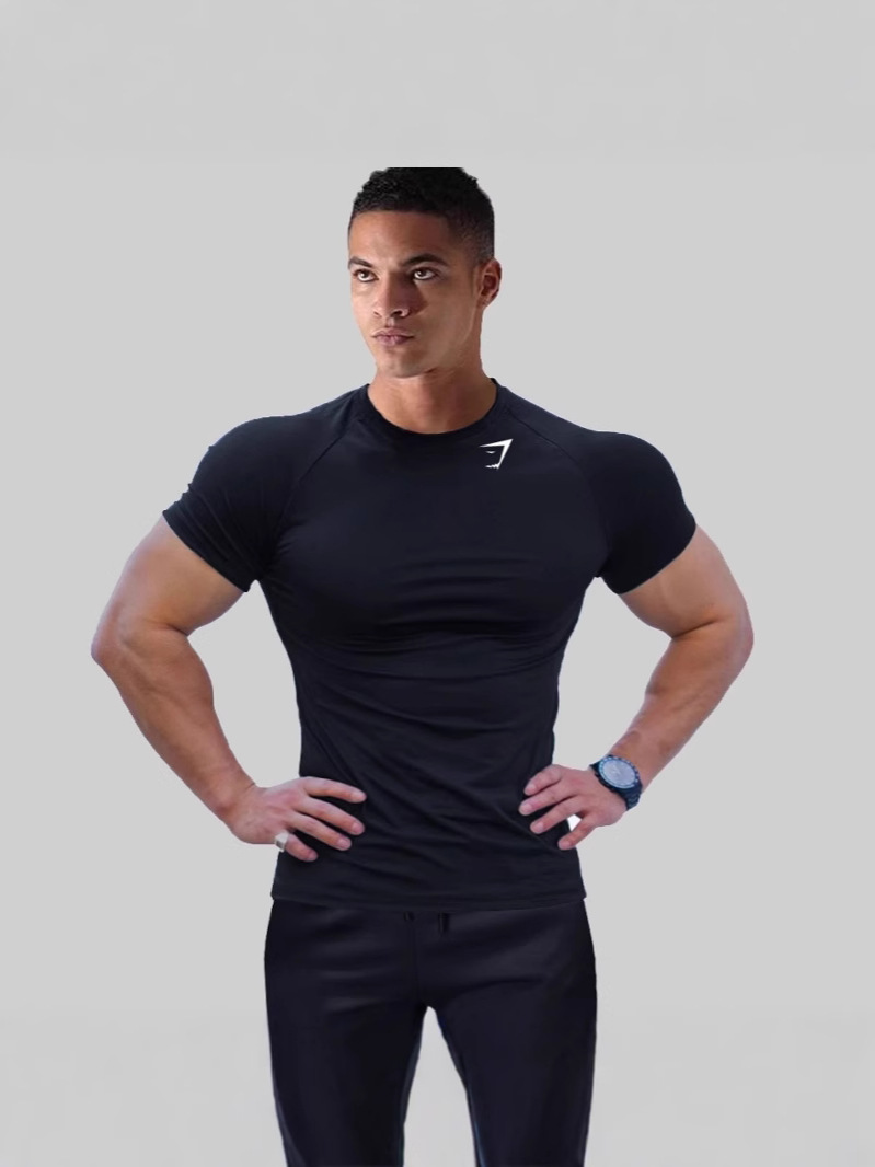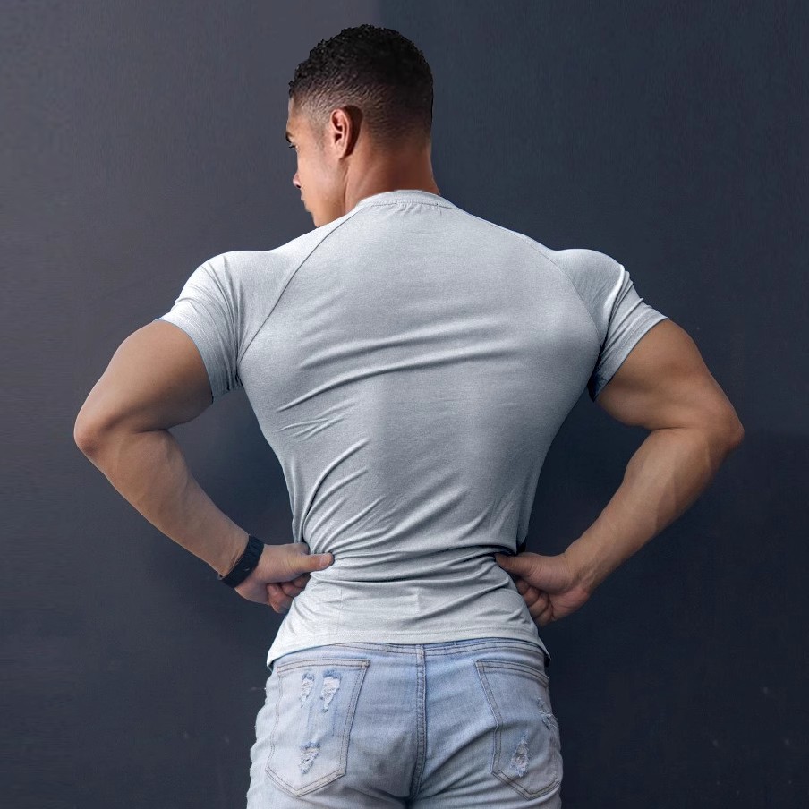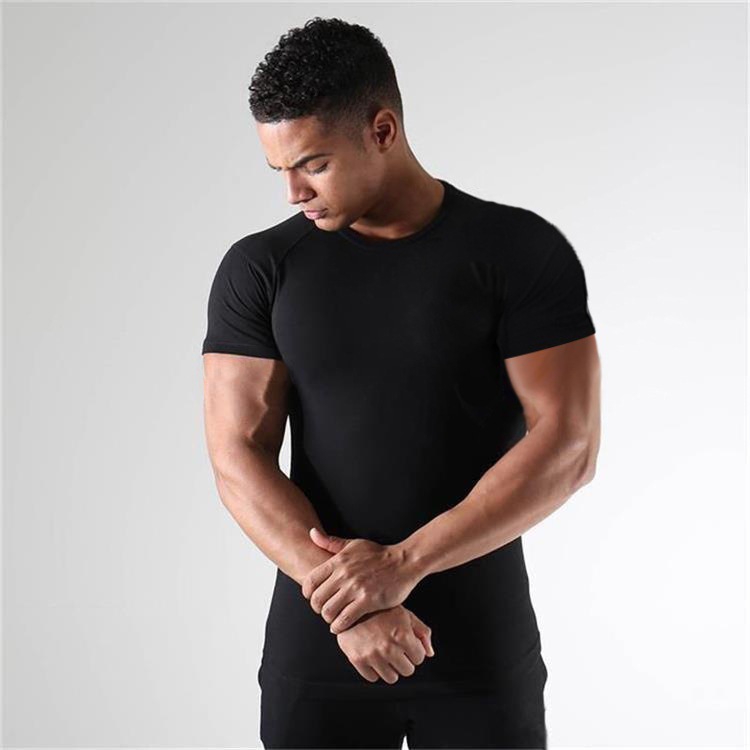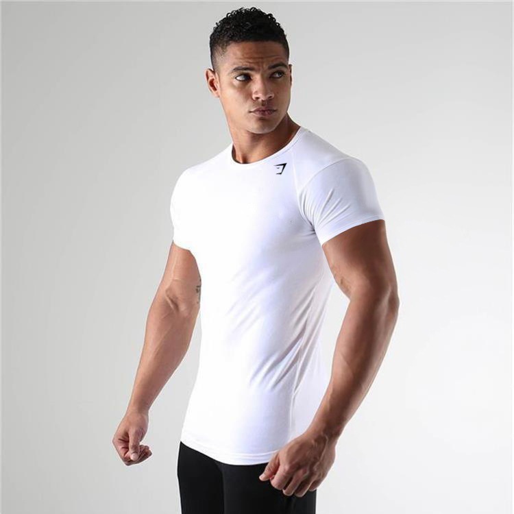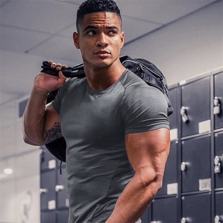국경을 넘는 새로운 근육 스포츠 티셔츠 남성용 라운드 넥 피트니스 반팔 탄성 슬림 핏 퀵 드라이 트레이닝 피트니스 의류스토어 가기