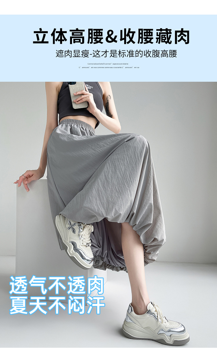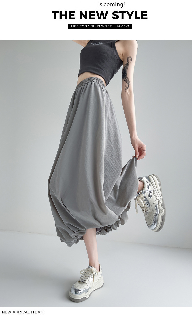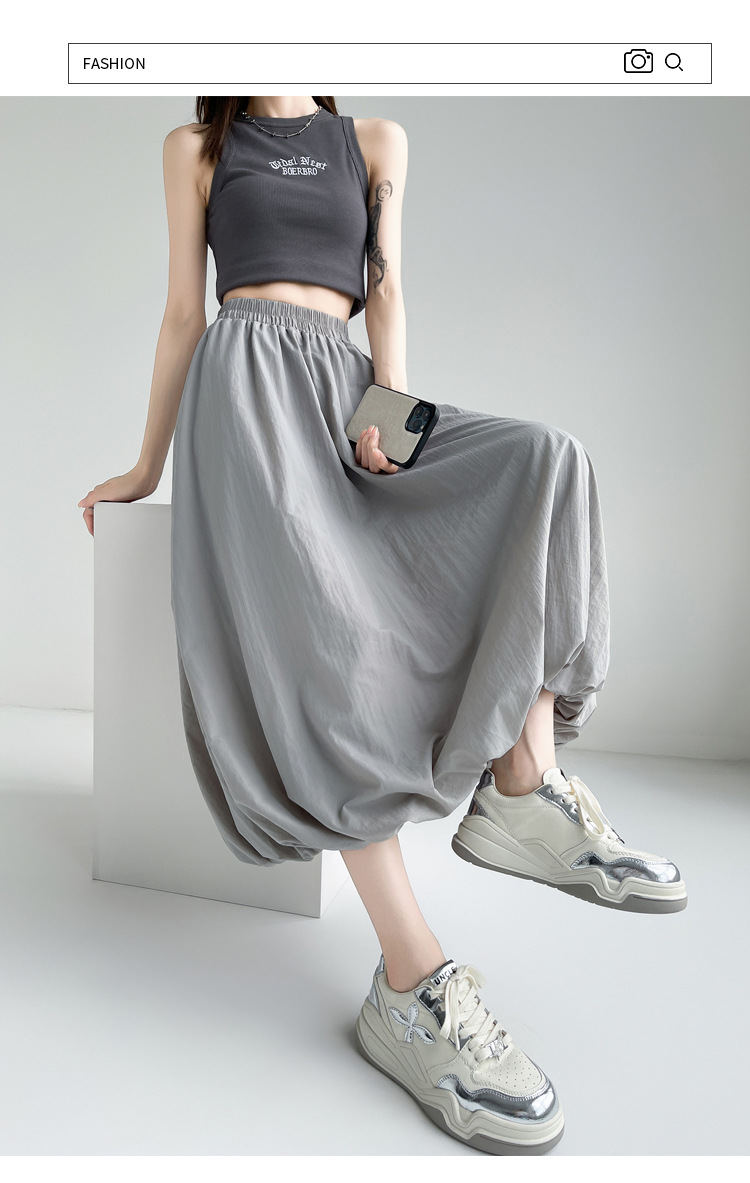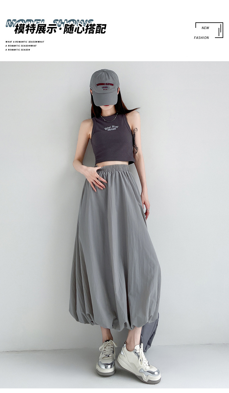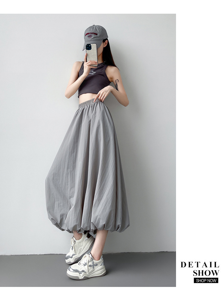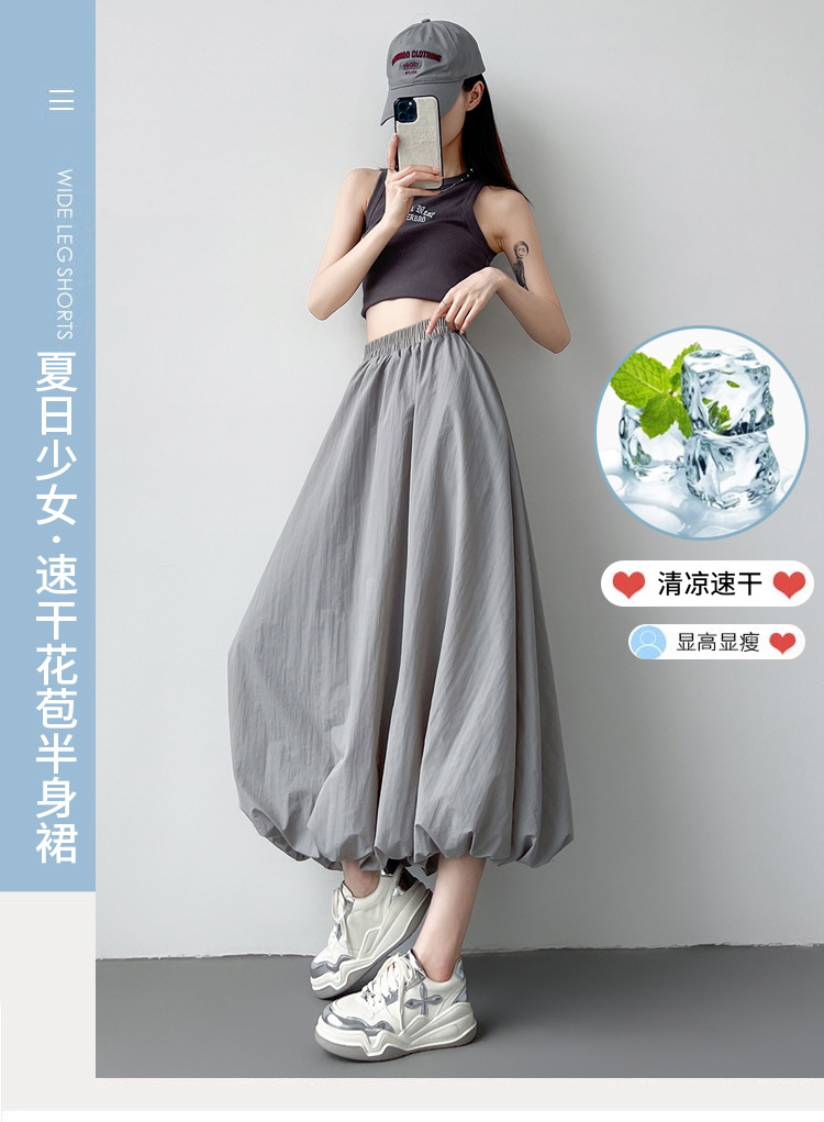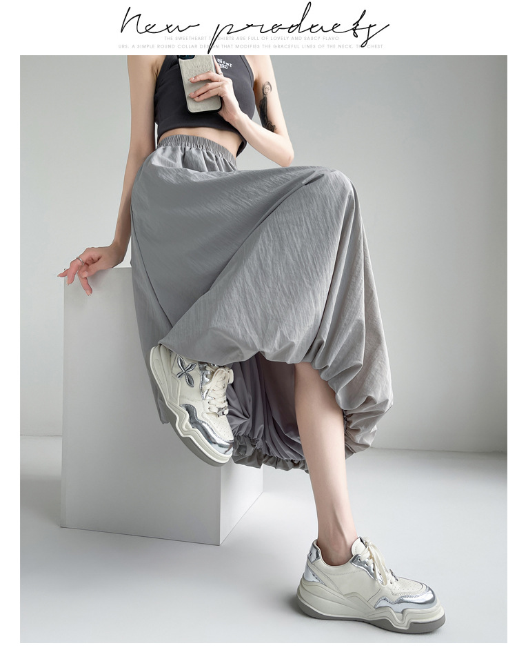 실시간 미국식 게으른 스포츠 느슨한 꽃 버드 스커트 여성 스트리트 그레이 엘랩틱 허리 푹신한 스커트 중간 길이 스커트