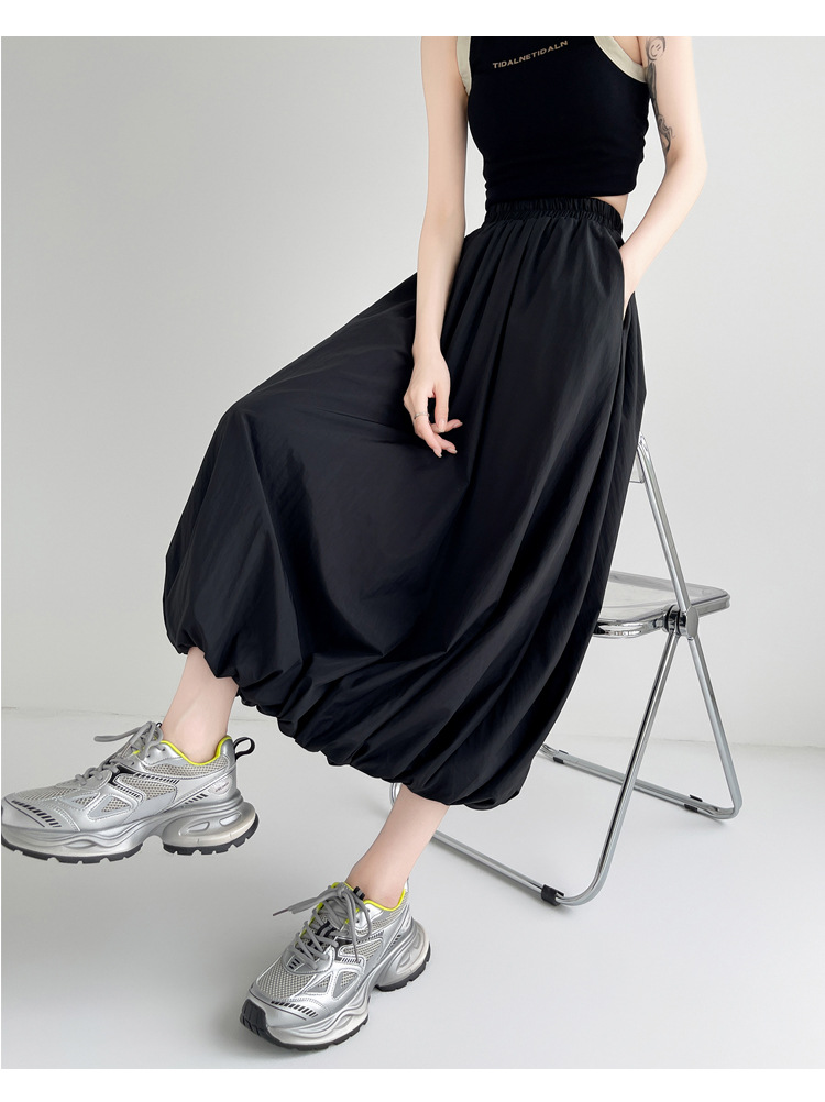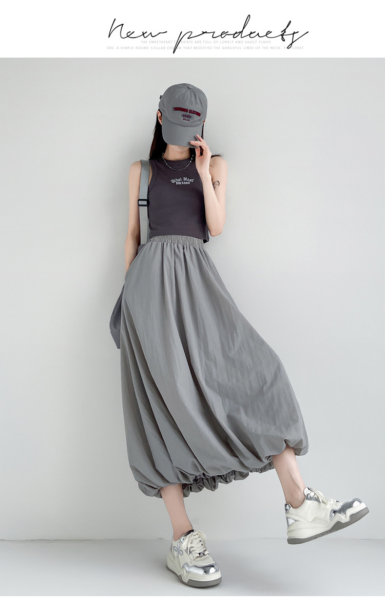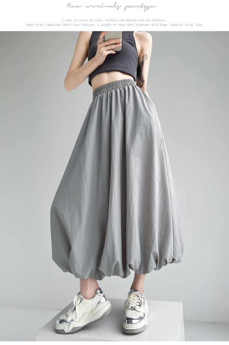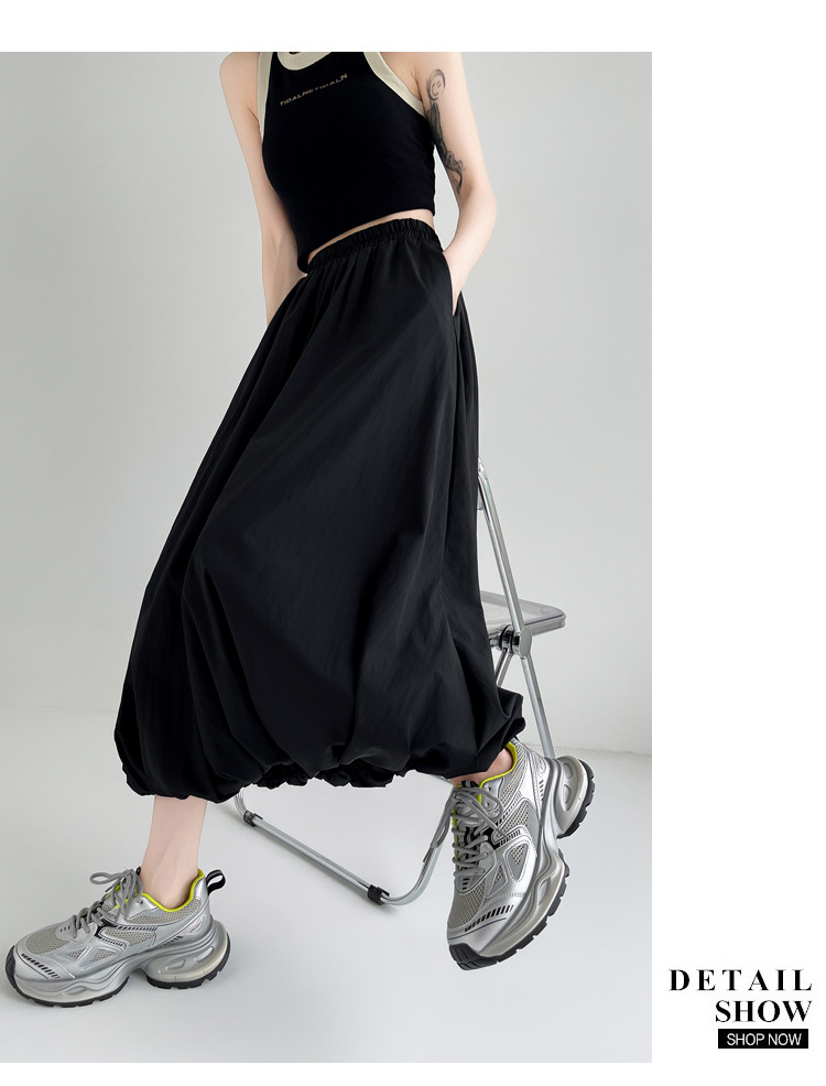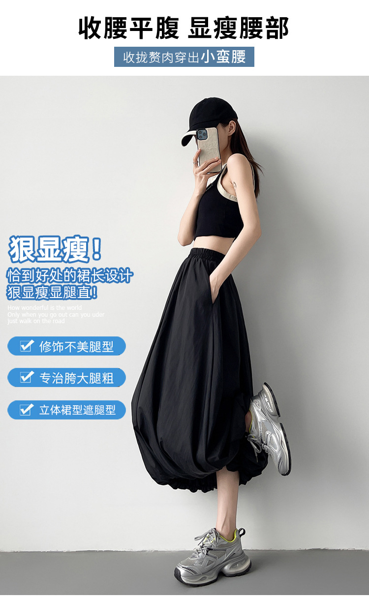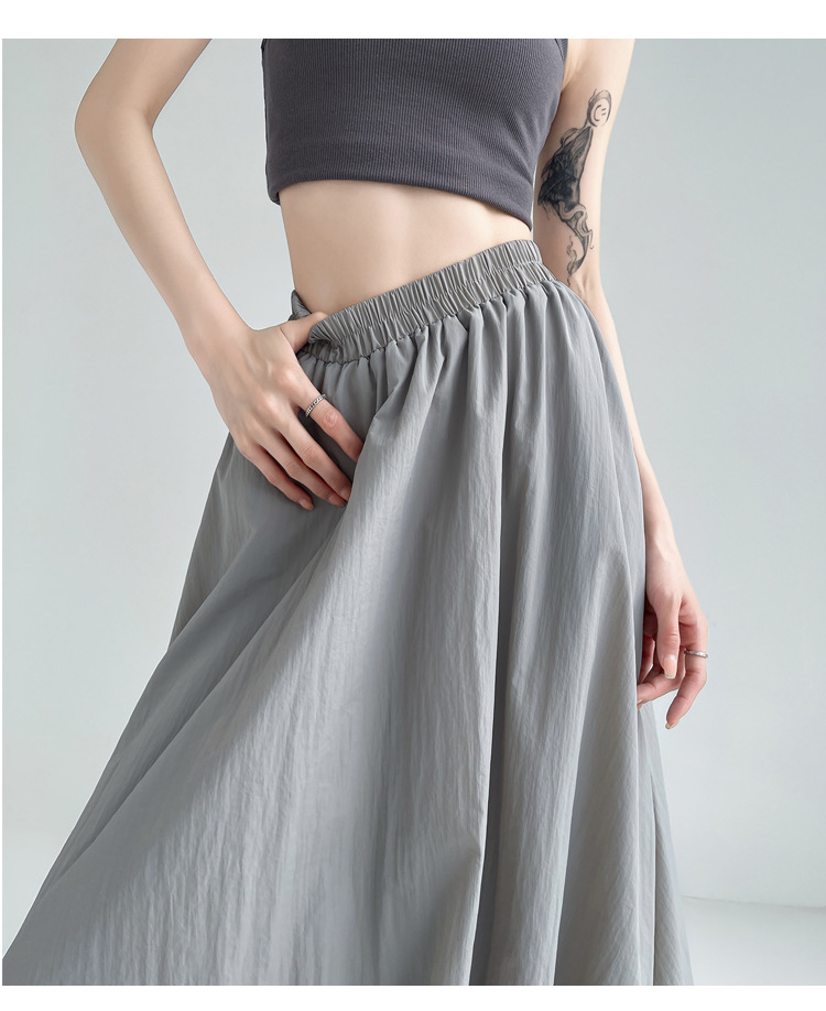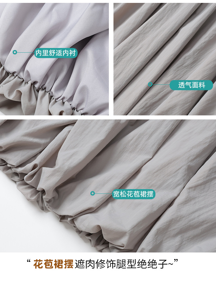 실시간 미국식 게으른 스포츠 느슨한 꽃 버드 스커트 여성 스트리트 그레이 엘랩틱 허리 푹신한 스커트 중간 길이 스커트
