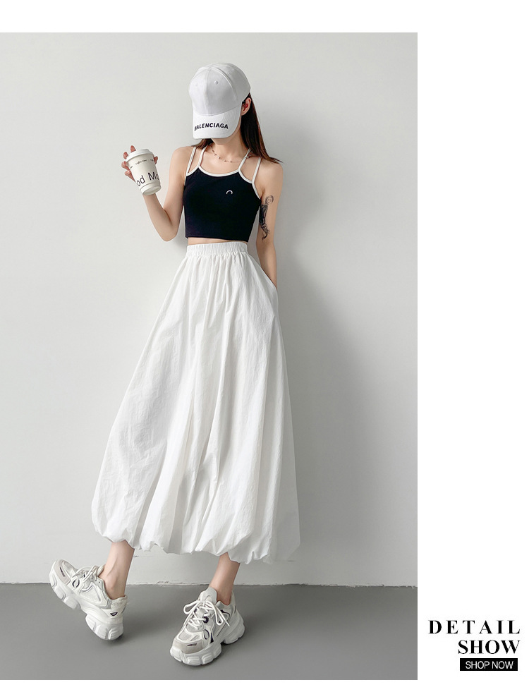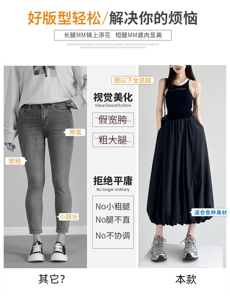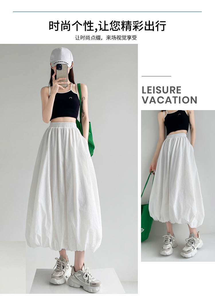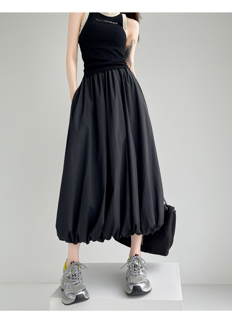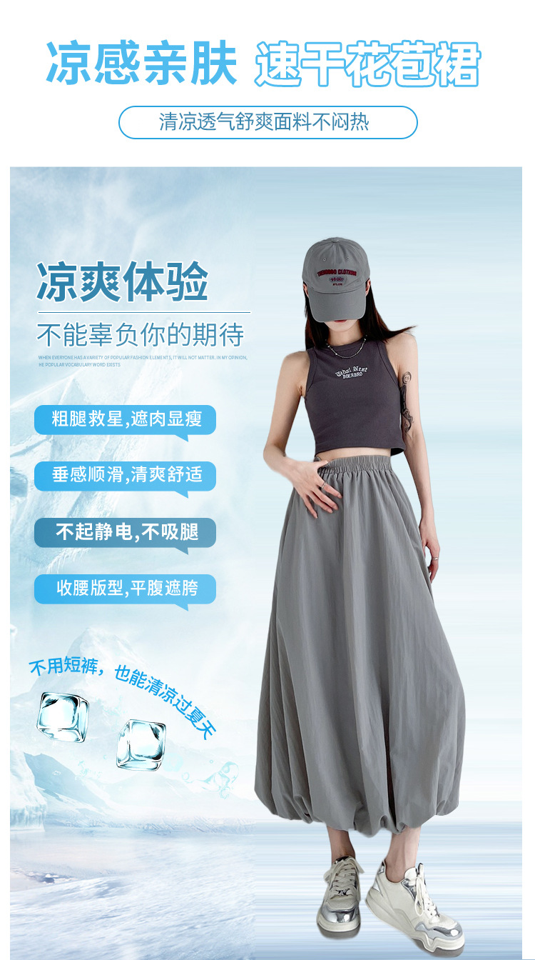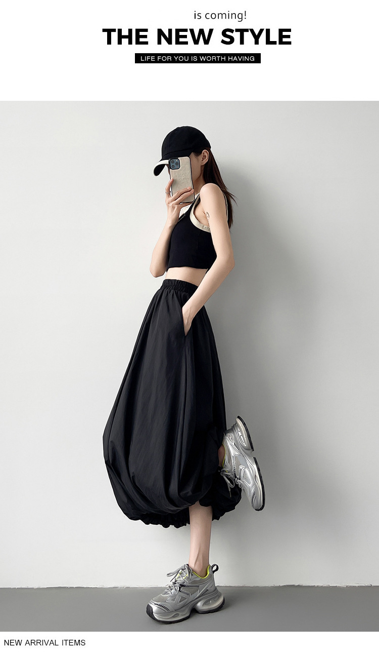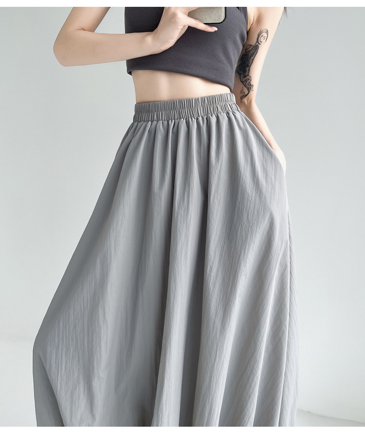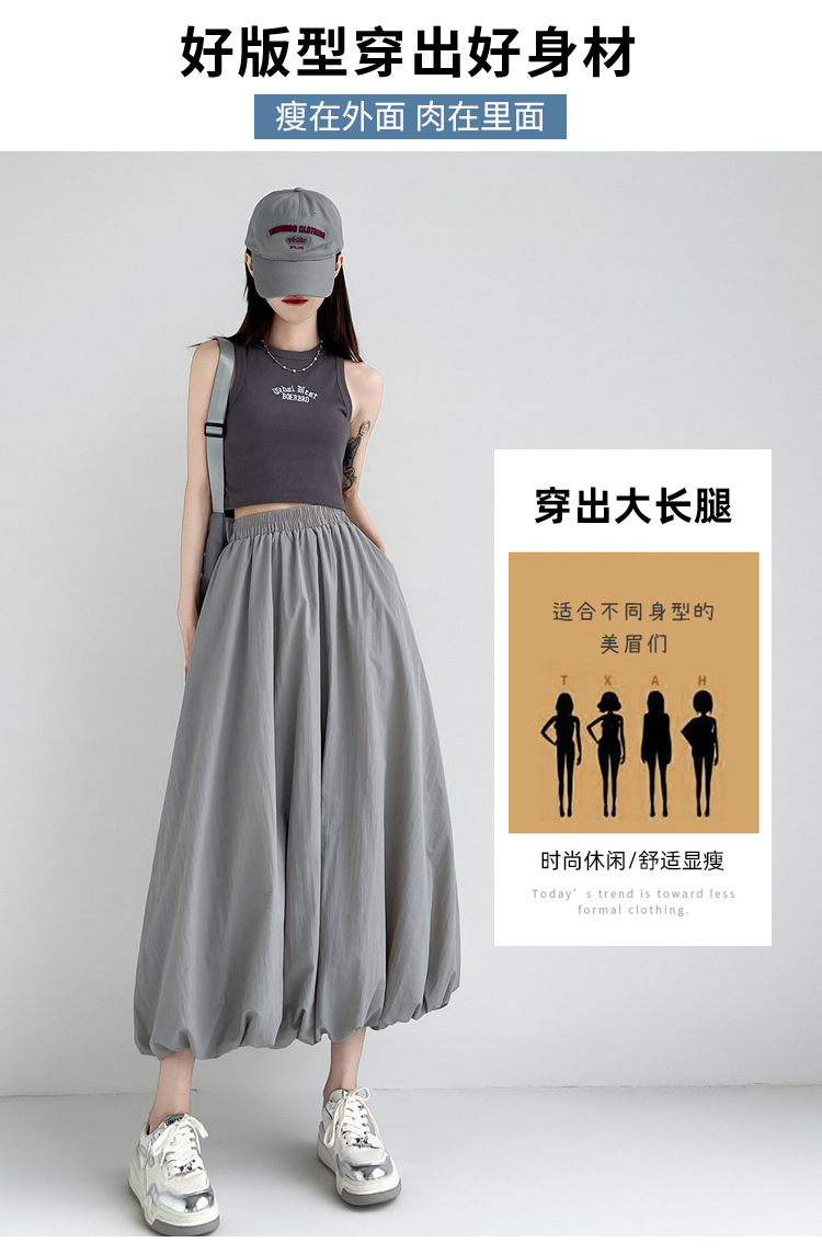 실시간 미국식 게으른 스포츠 느슨한 꽃 버드 스커트 여성 스트리트 그레이 엘랩틱 허리 푹신한 스커트 중간 길이 스커트