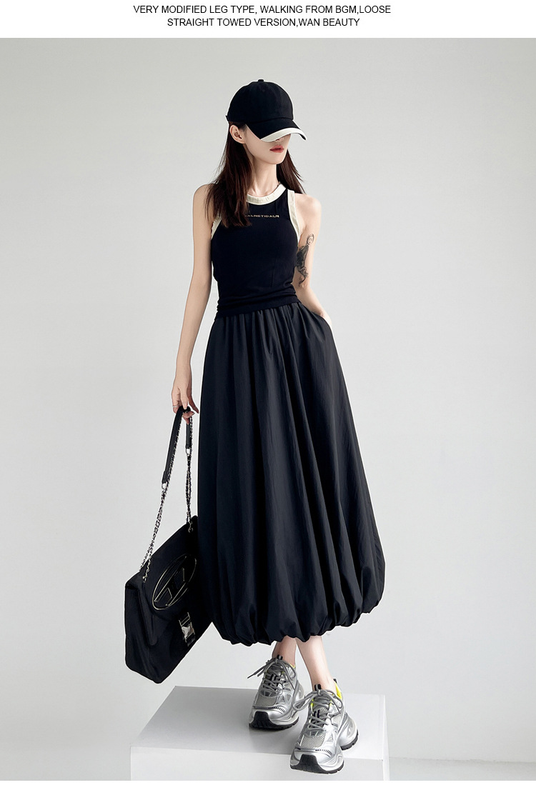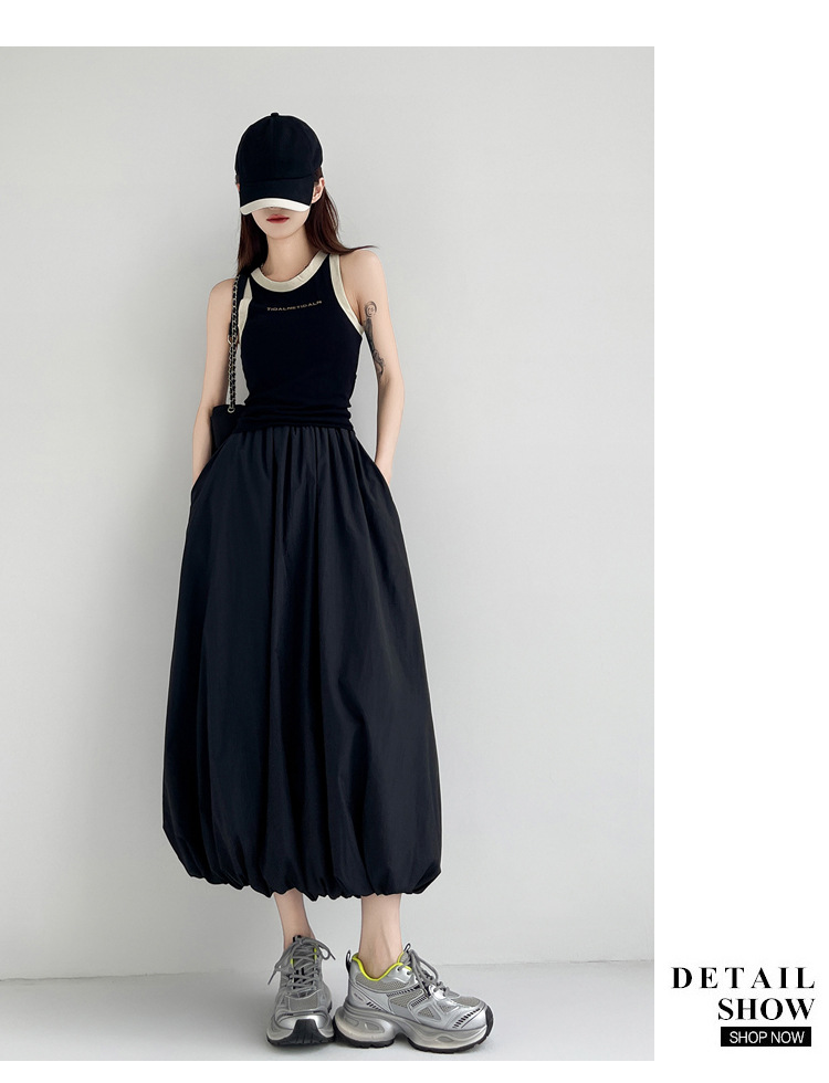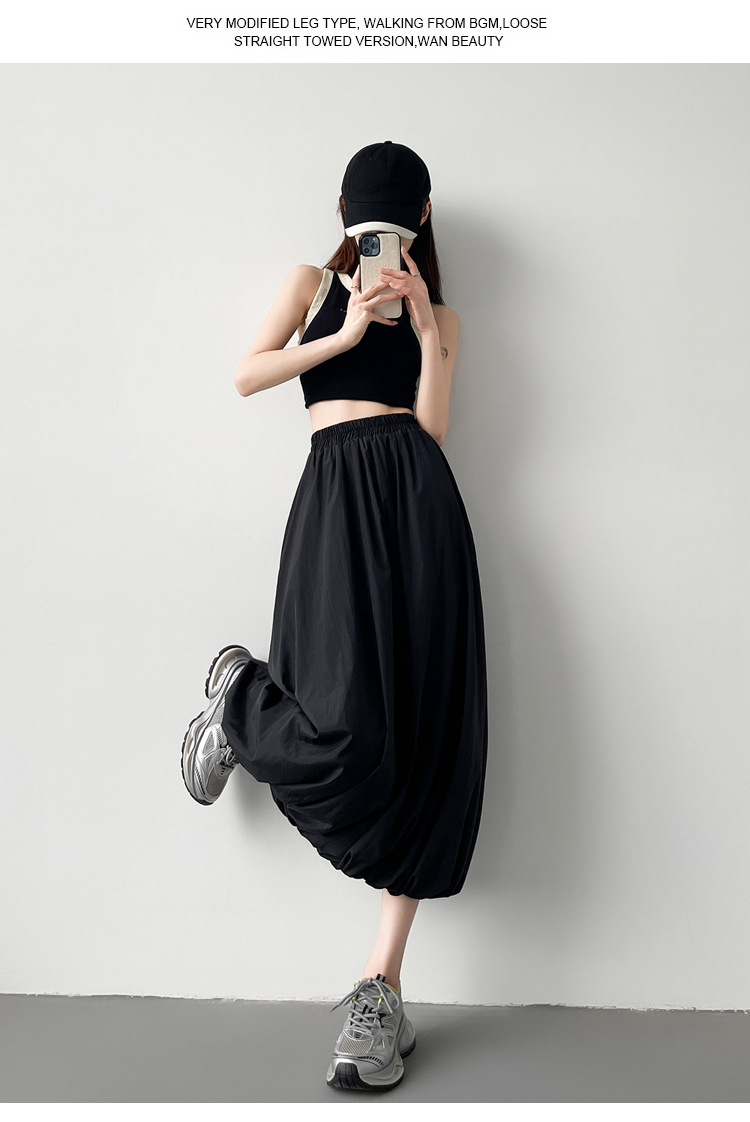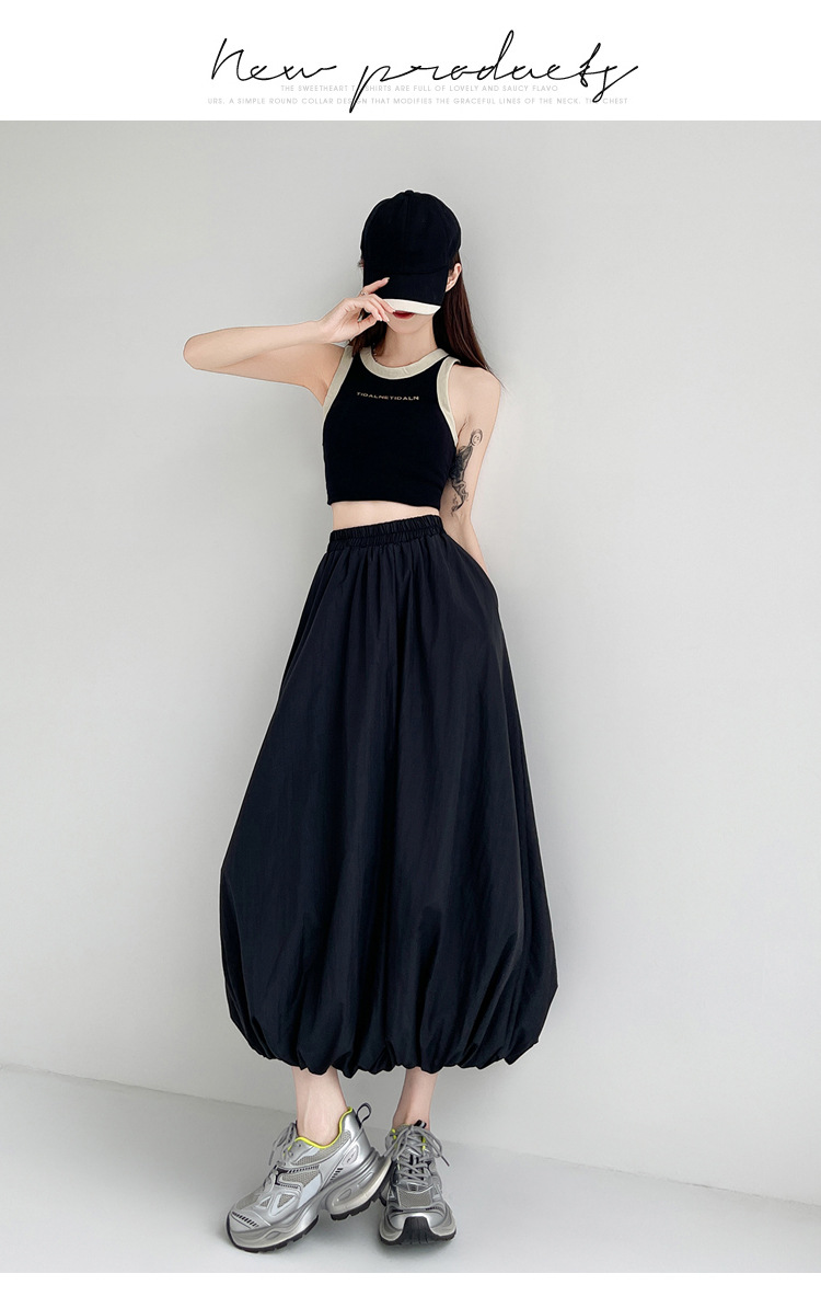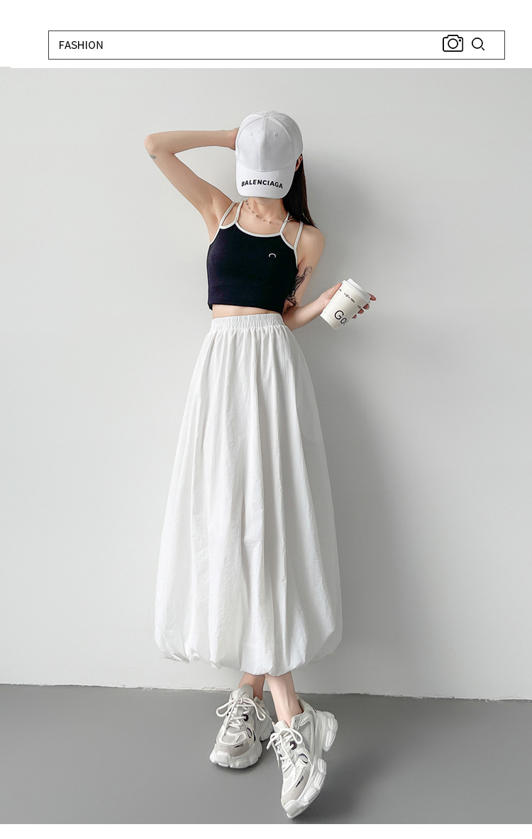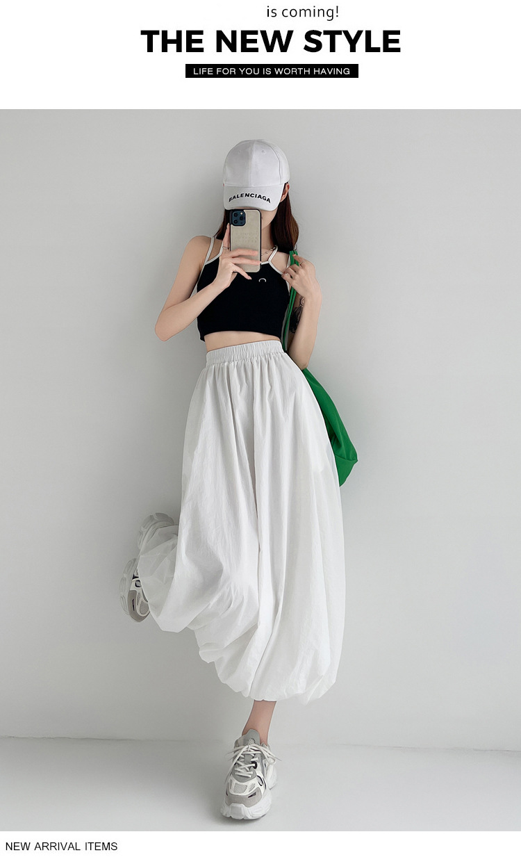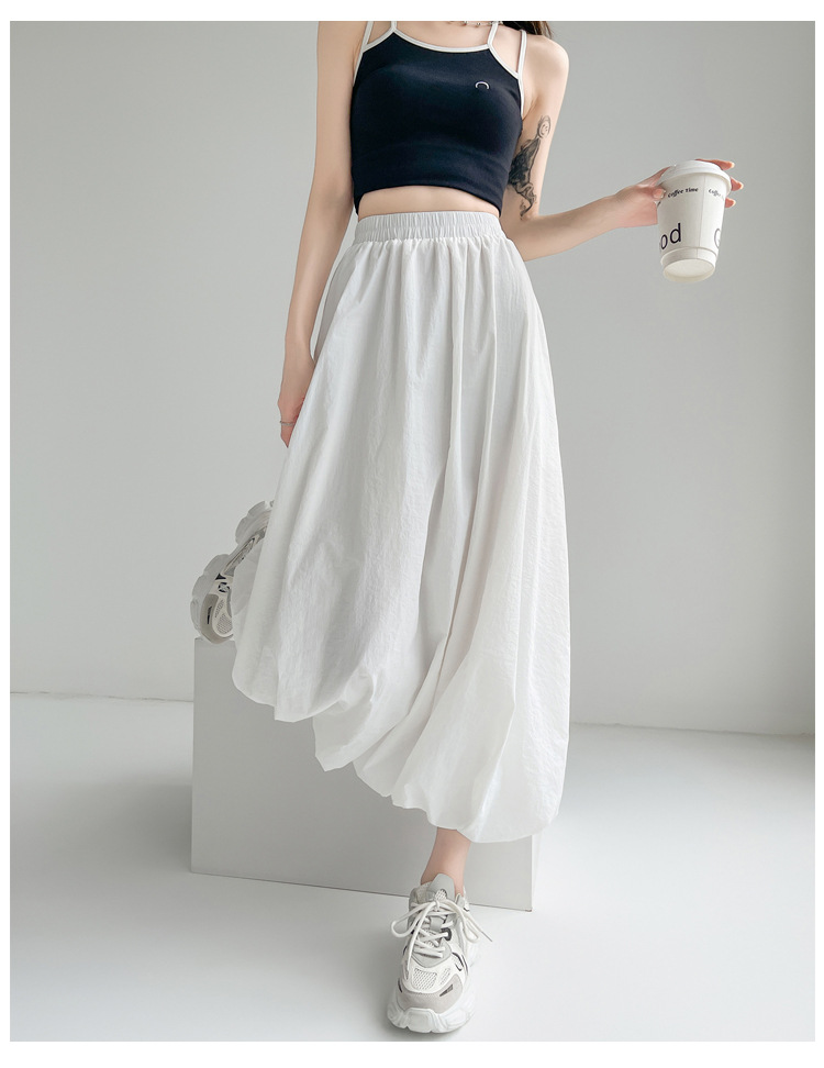 실시간 미국식 게으른 스포츠 느슨한 꽃 버드 스커트 여성 스트리트 그레이 엘랩틱 허리 푹신한 스커트 중간 길이 스커트