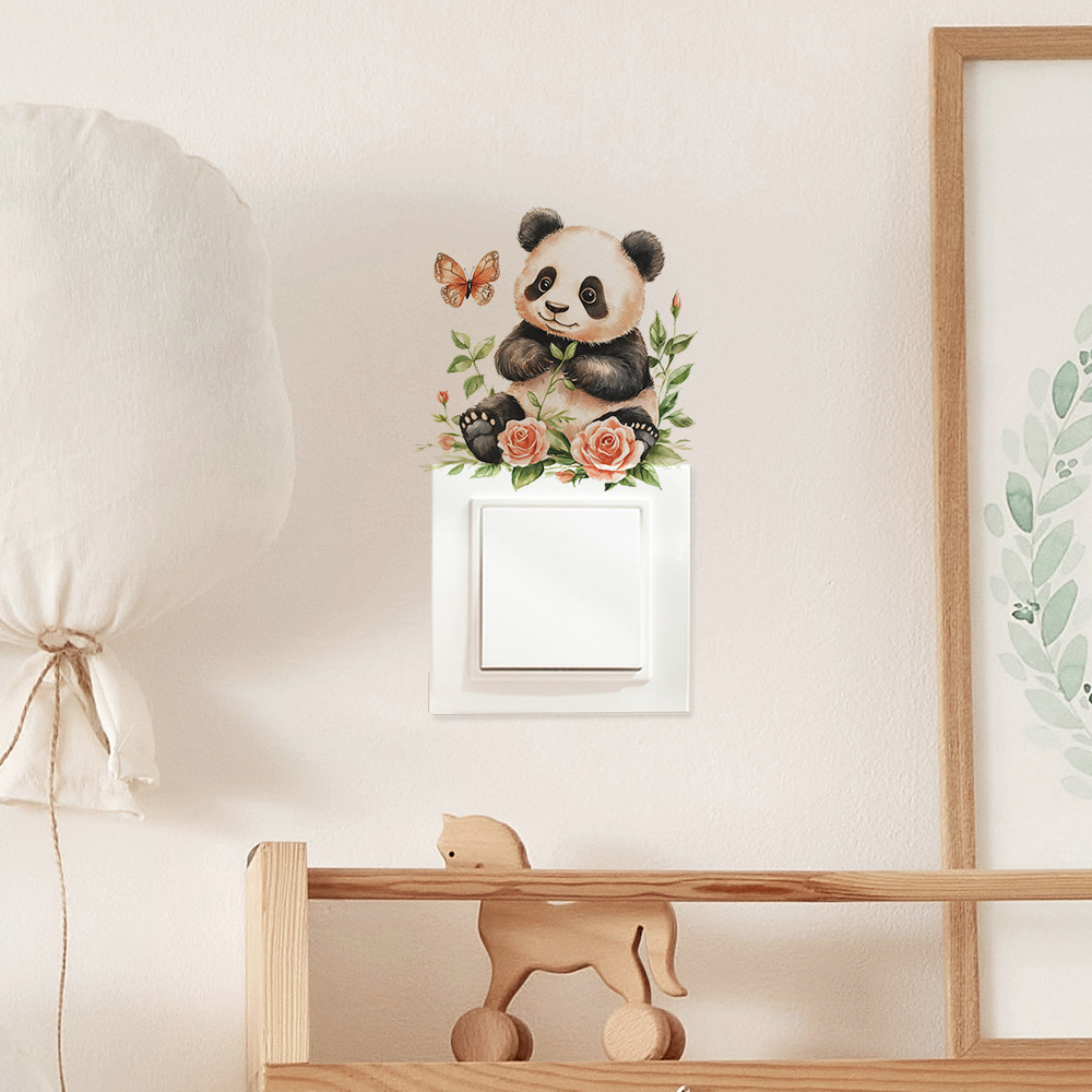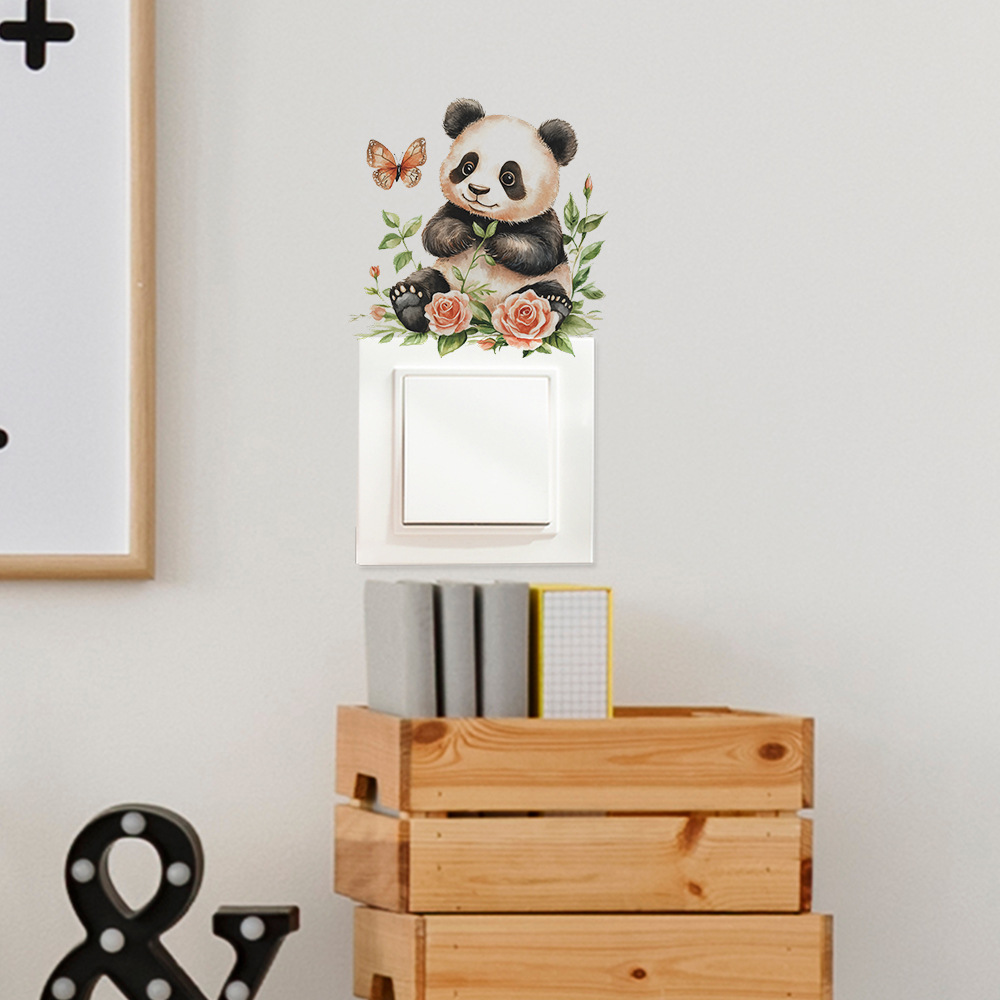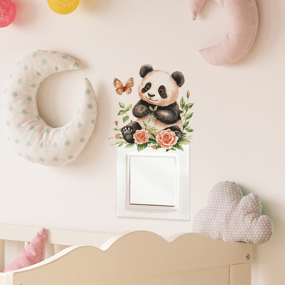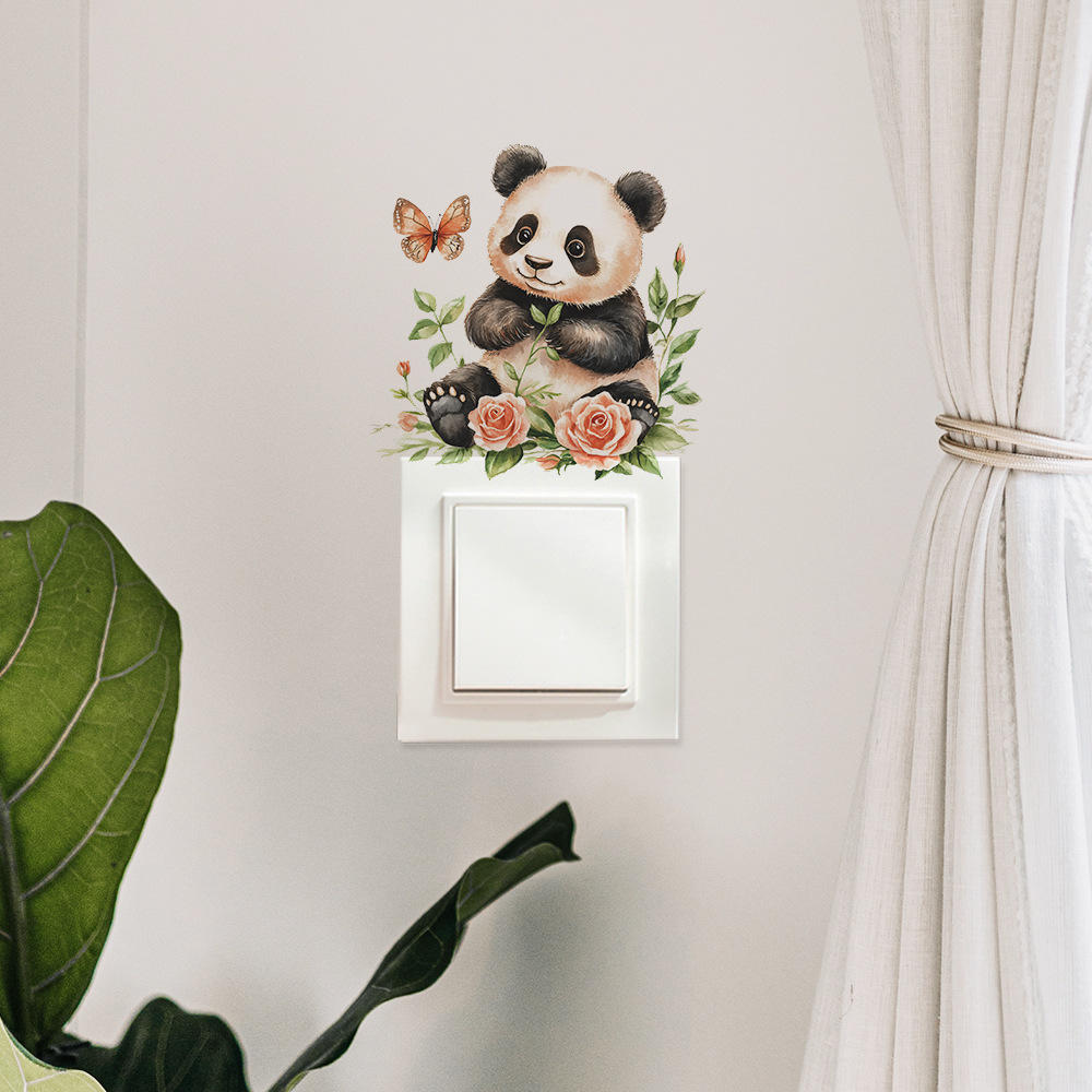 Fun-kg130 만화 귀여운 작은 팬더 침실 거실 스위치 스티커 집 배경 미화 벽 스티커 도매
