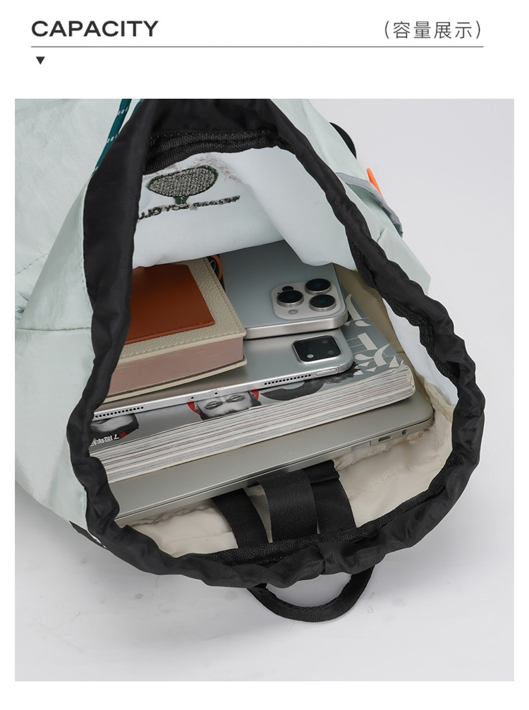 배드민턴 가방 Drawstring 가방 대학 여성의 새로운 나일론 천 대용량 배낭 학생 등산 라이드 배낭
