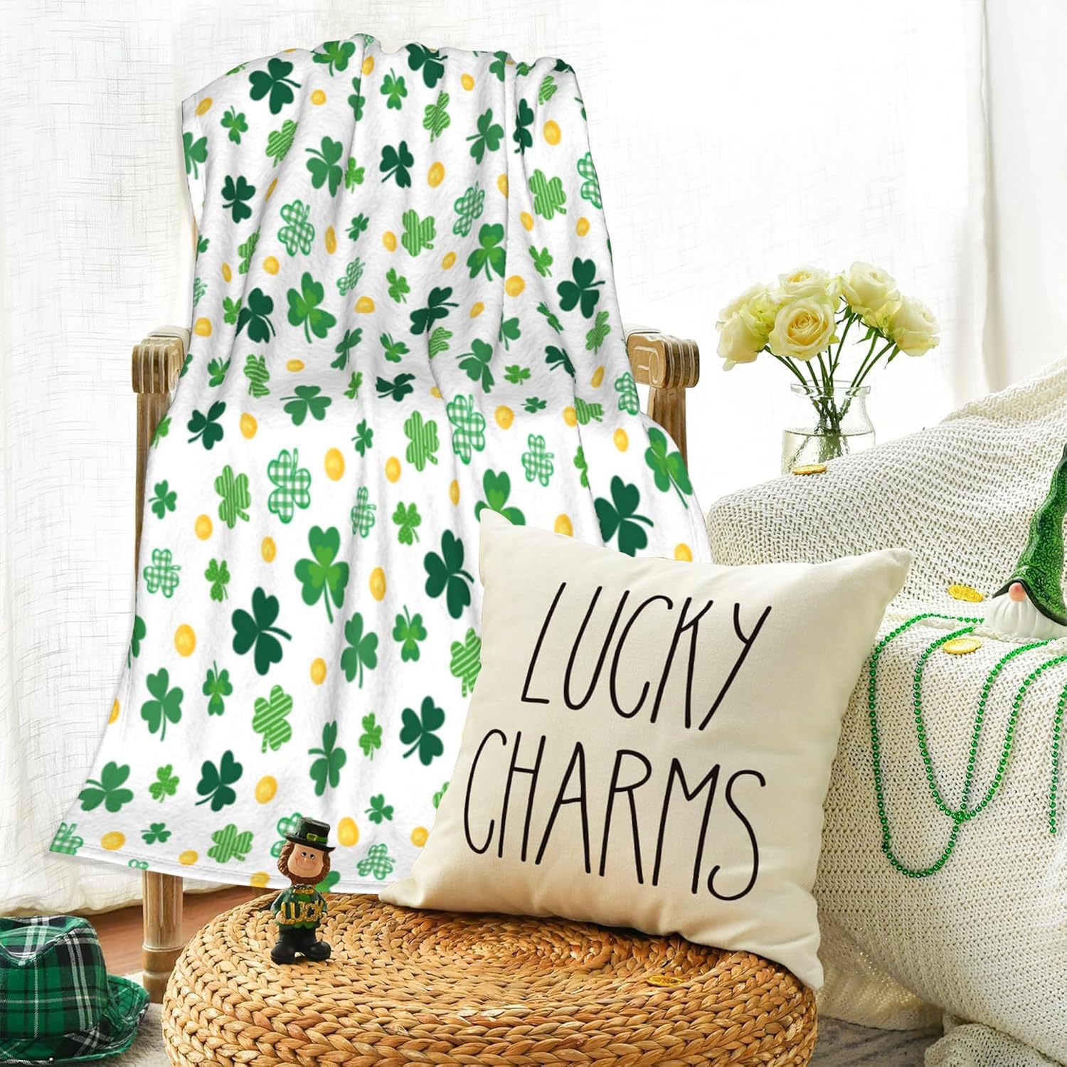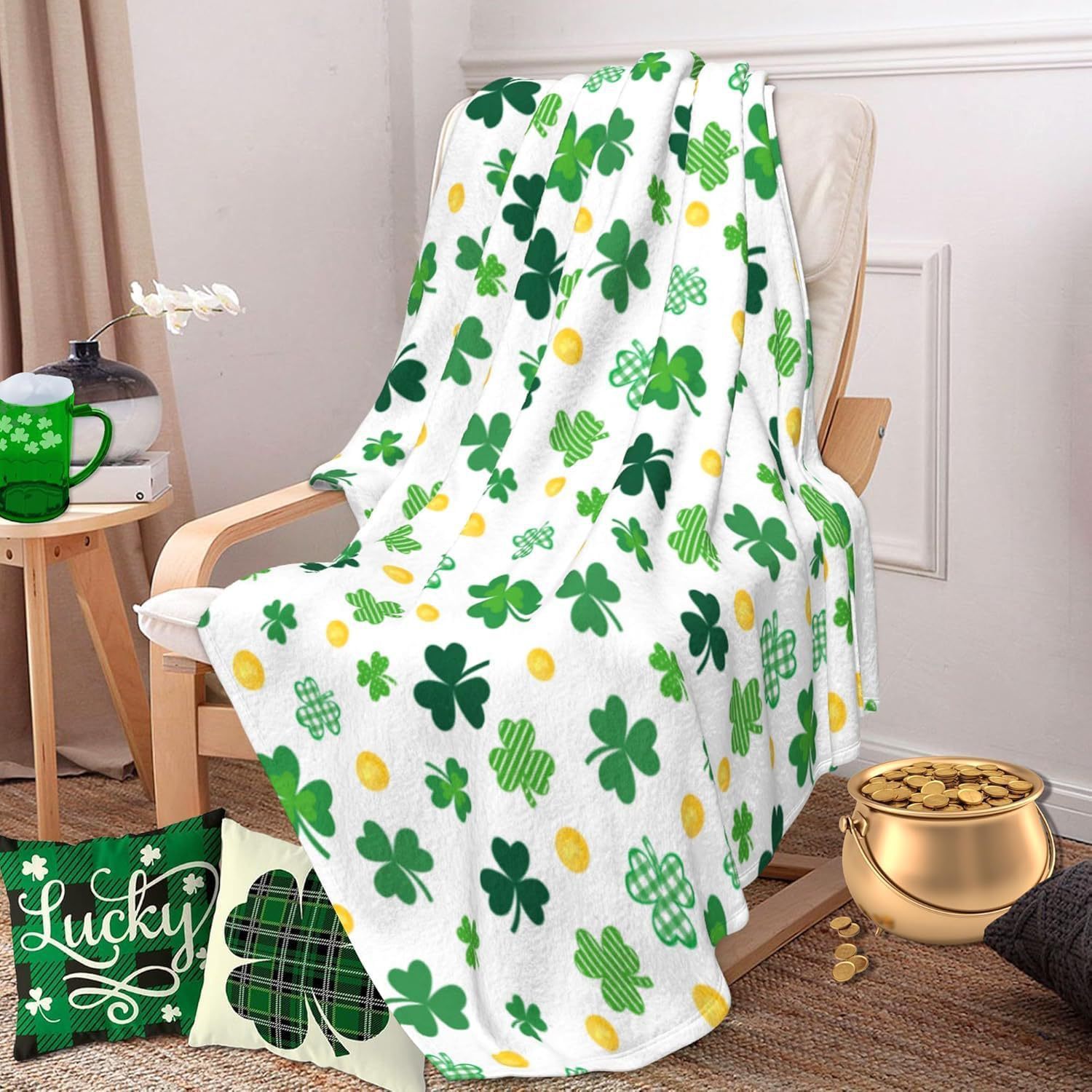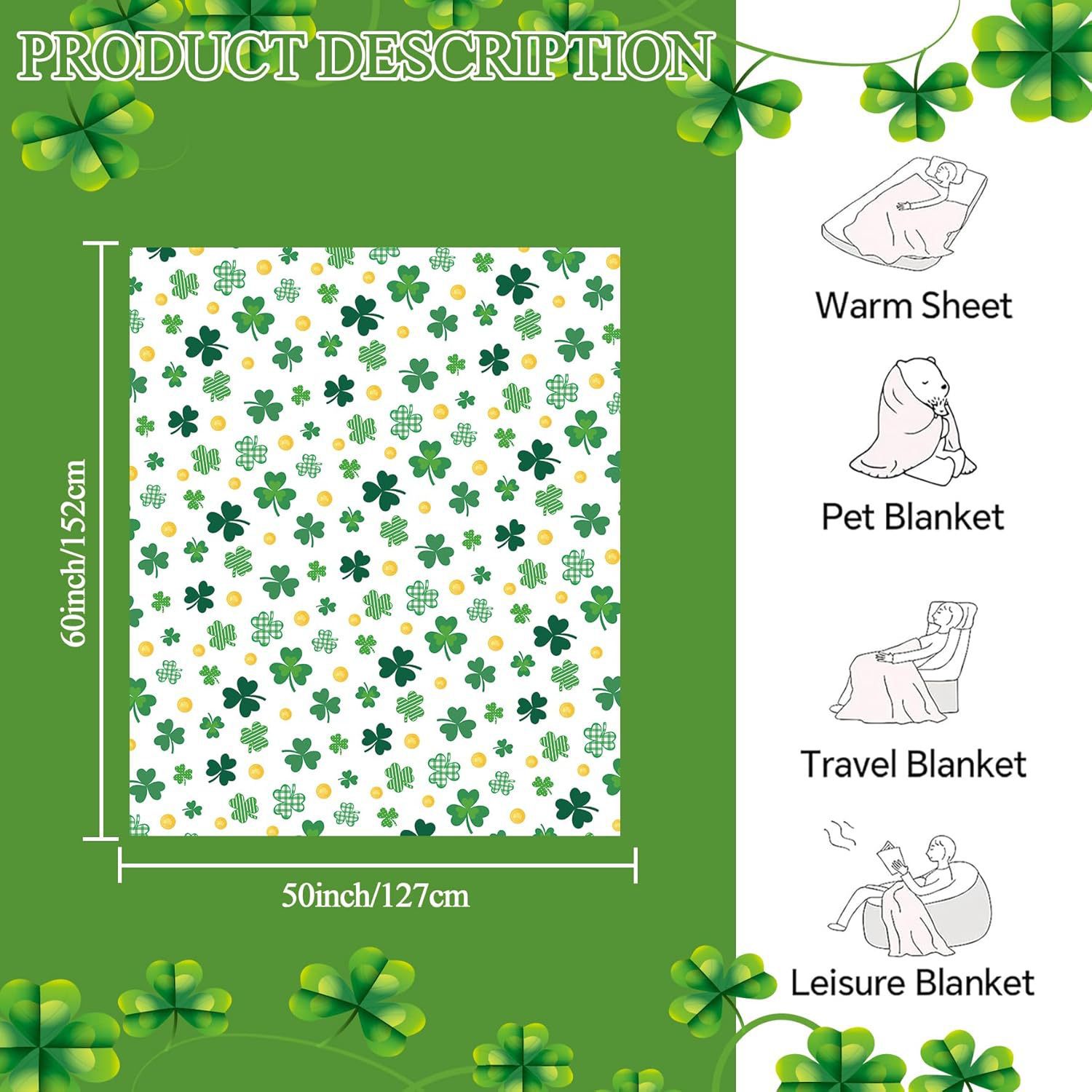 성 패트릭의 날 담요 클로버 플란넬 커버 담요 럭키 잔디 거실 침실 침대 소파 캠핑 담요