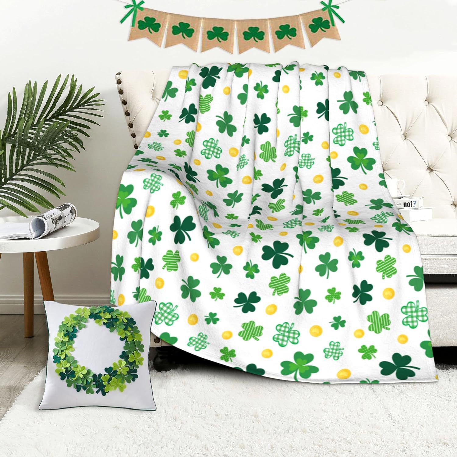 성 패트릭의 날 담요 클로버 플란넬 커버 담요 럭키 잔디 거실 침실 침대 소파 캠핑 담요스토어 가기