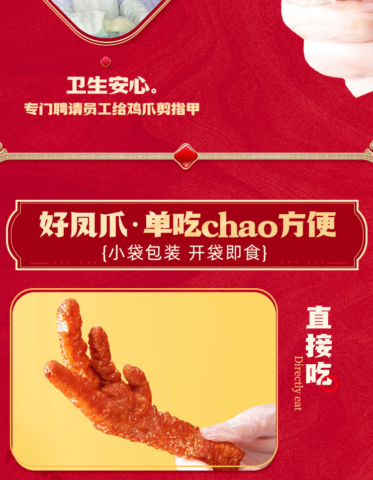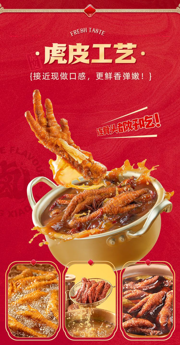 왕 샤오 할로겐 호랑이 가죽 닭 발 210g 캐주얼 폭발 간식 닭 발 절인 매운 갈망스토어 가기
