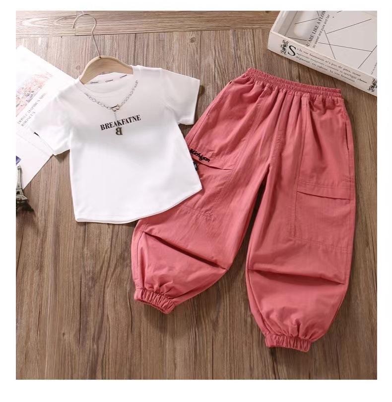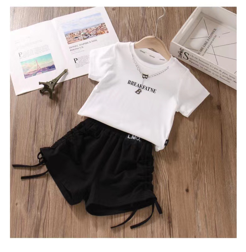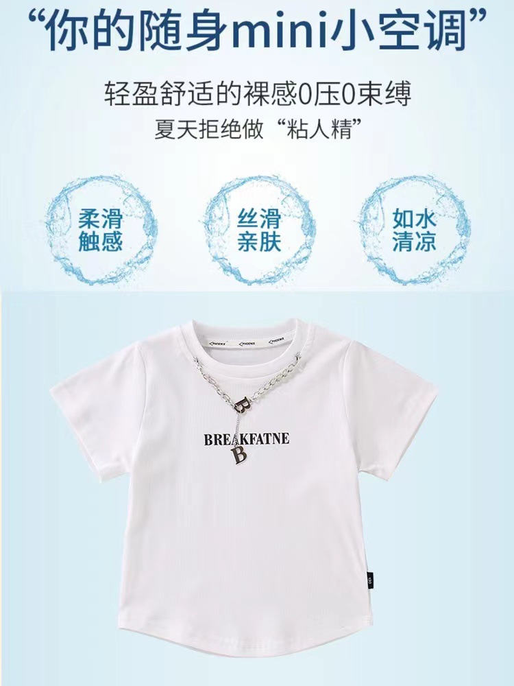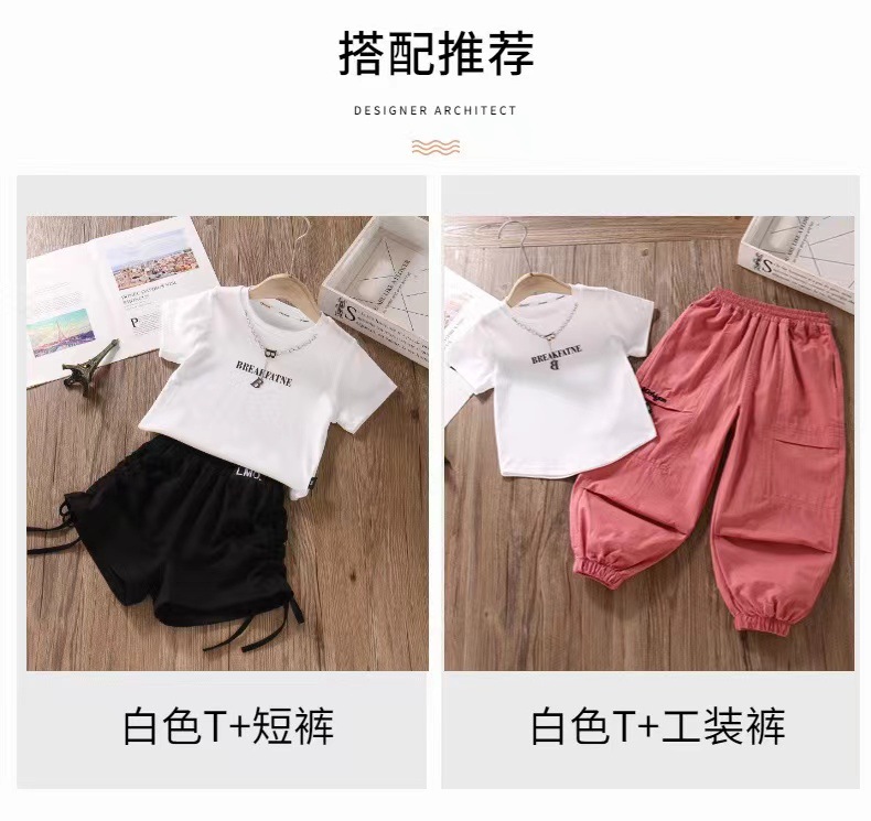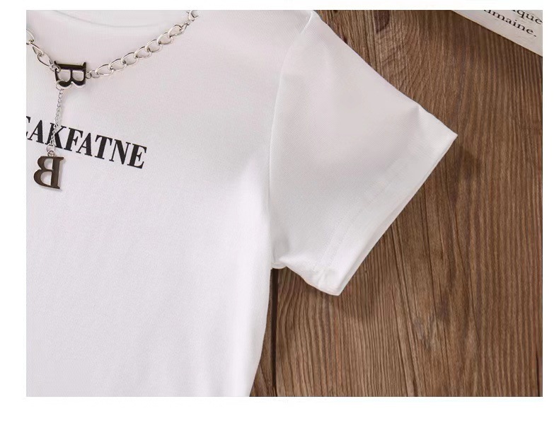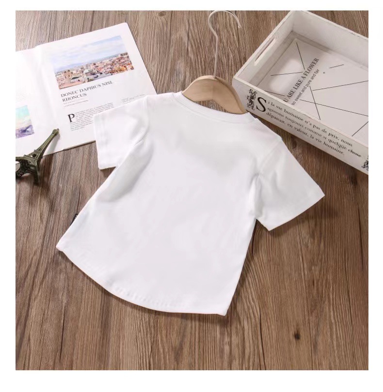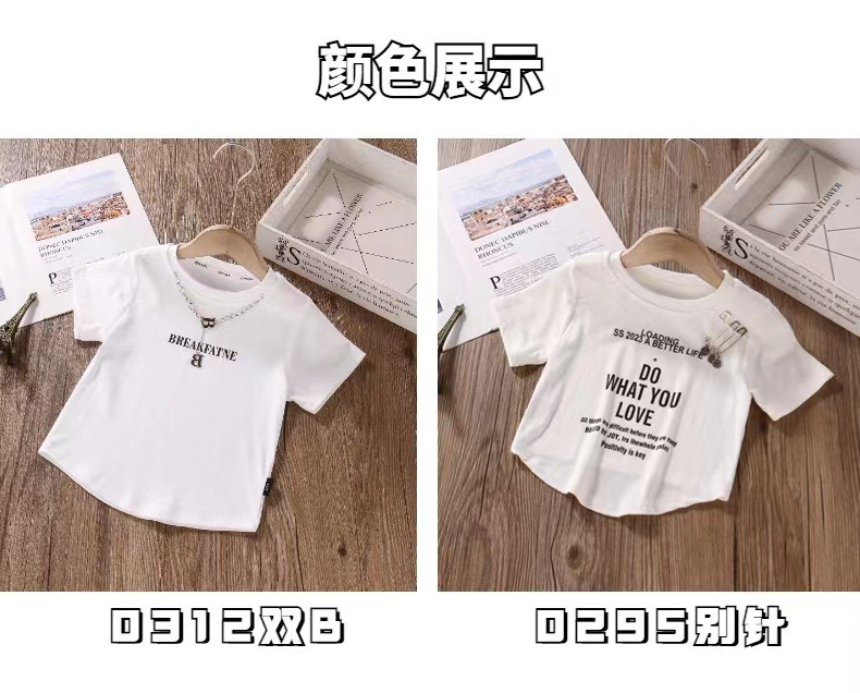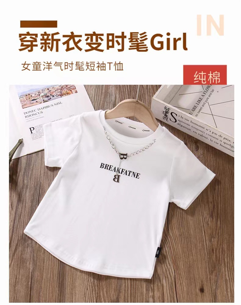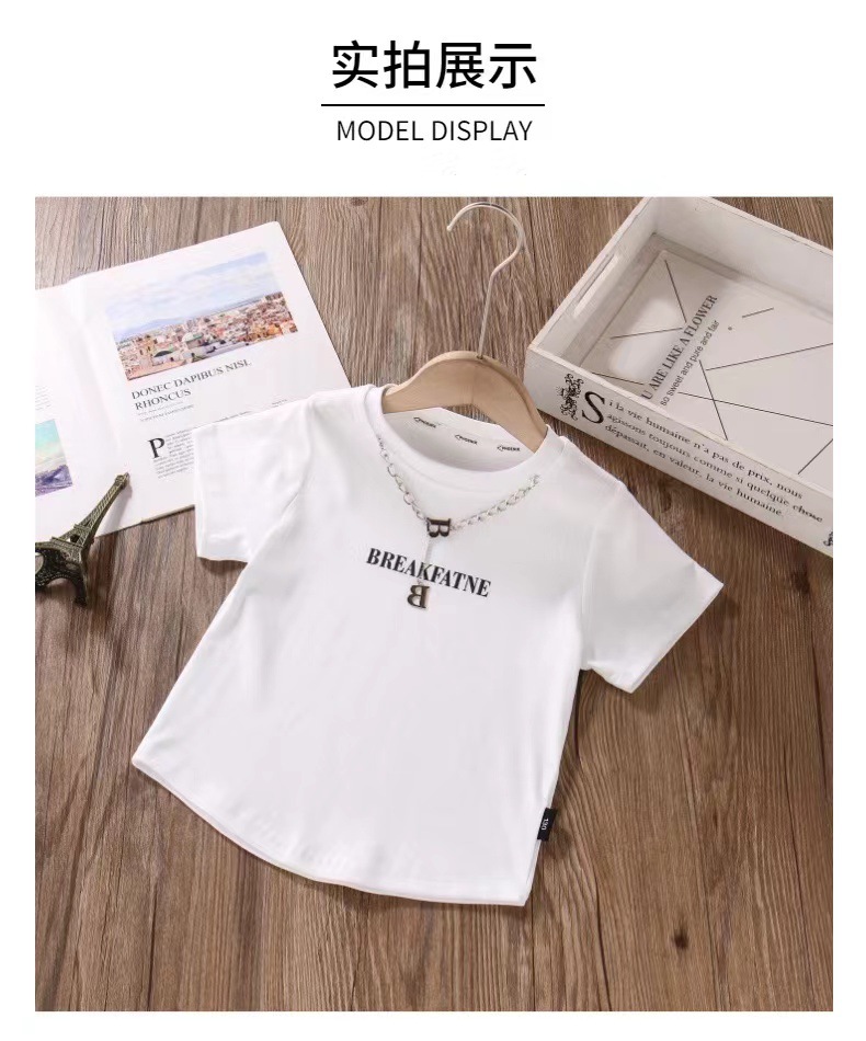 여자 반팔 티셔츠 2024 새로운 스타일 코튼 여름 서양식 유행 티셔츠 유행 어린이 흰색 짧은 탑스토어 가기