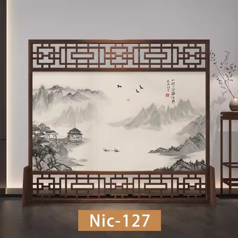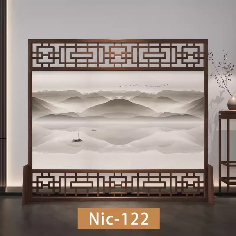 새로운 중국 스타일의 솔리드 우드 스크린 파티션 도어 음영 거실 호텔 티룸 사무실 입구 빈 좌석 화면
