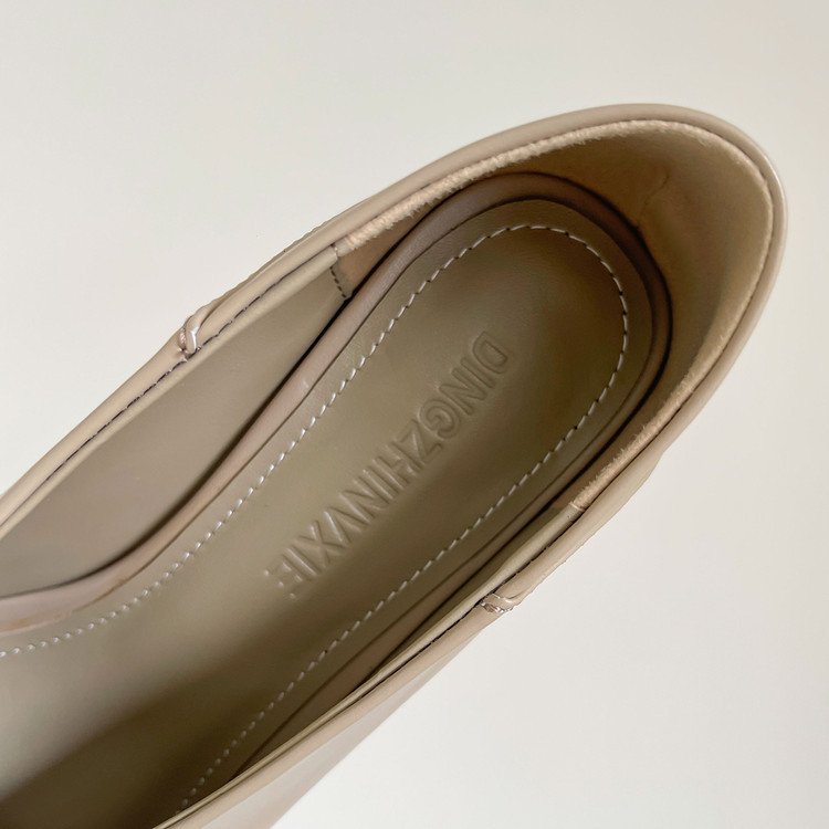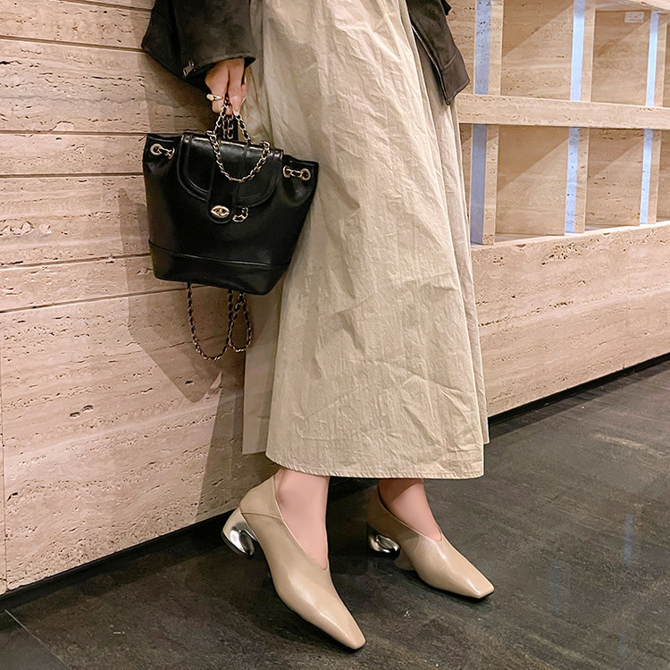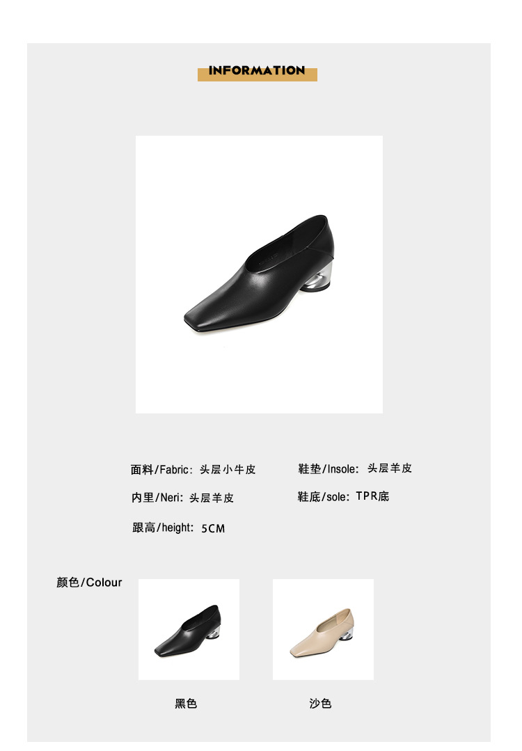 매우 간단한 부드러운 가죽 V-입 진한 베이지 밀크 신발 여성용 소 가죽 로우 입 싱글 신발 스퀘어 토 플랫 슈즈 로우 힐 마녀 신발스토어 가기