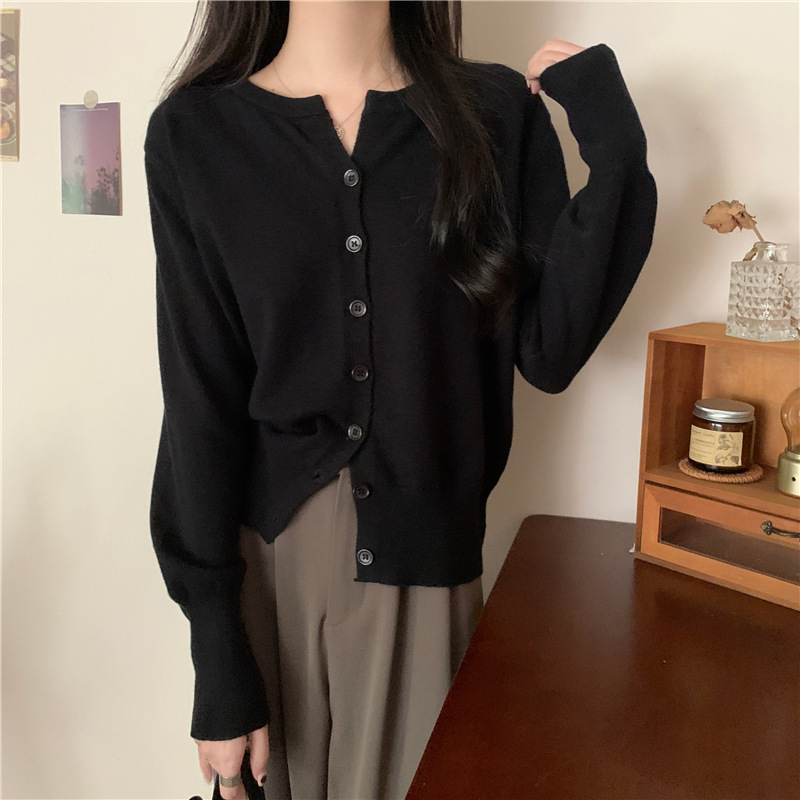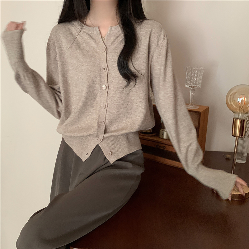 Le Ding ~ 한국식 부드러운 핑크 스웨터 여성의 부드러운 왁스 스킨 친화적 인 니트 스웨터 작은 카디건 크루 넥 스웨터 코트 여성