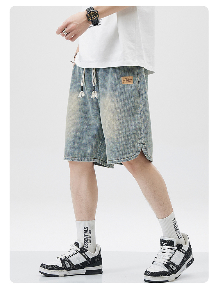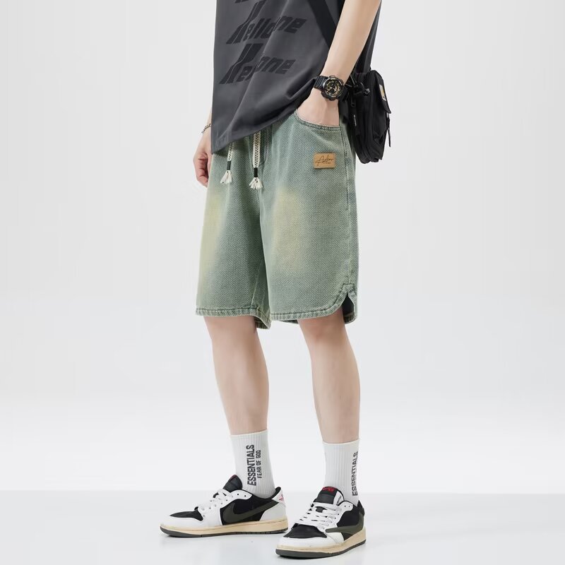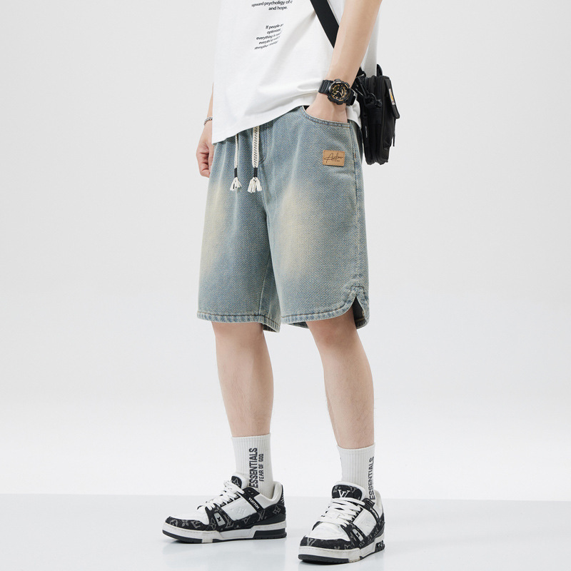 스타 패턴 데님 반바지 남자 느슨한 유행 스트레이트 캐주얼 5 점 바지 2025 새로운 미국 스타일 올매치스토어 가기