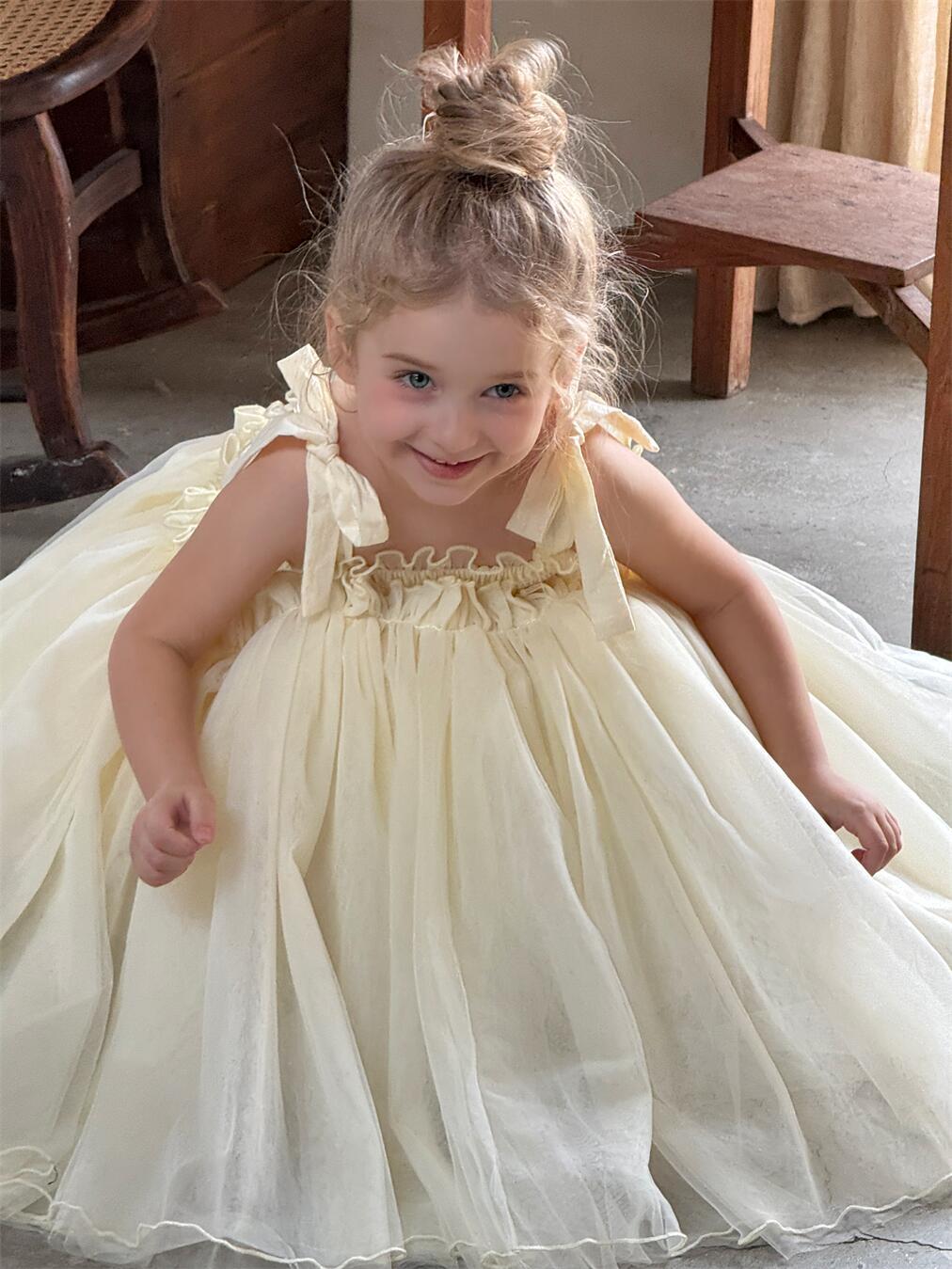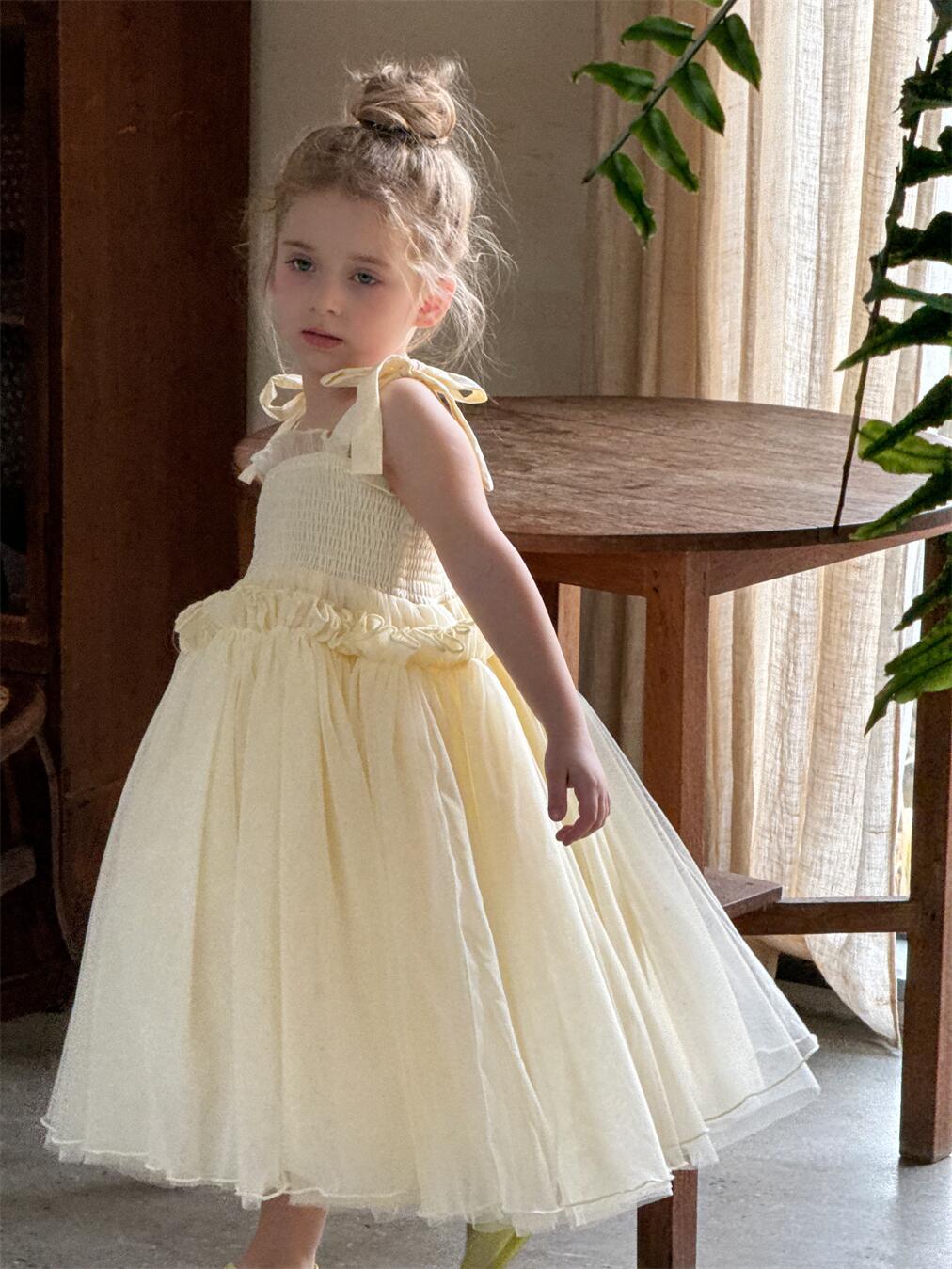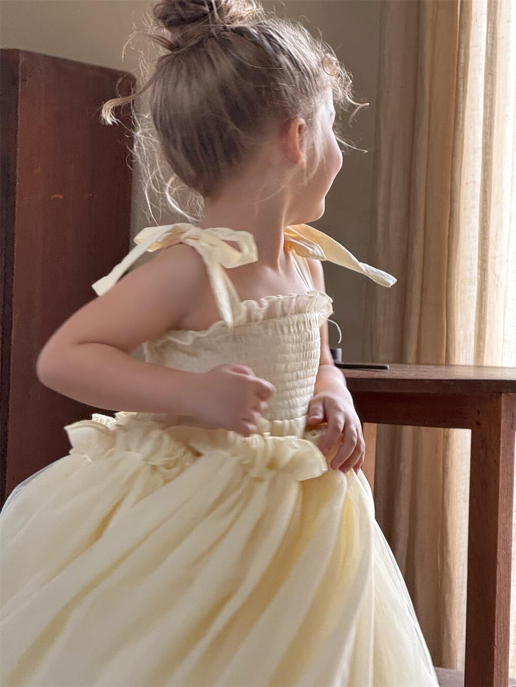 뾰족한 달걀 한국 아동복 2025 봄과 여름 새 소녀 원피스 거즈 스커트 공주 스커트 민소매 서스펜더 퍼프 스커트스토어 가기