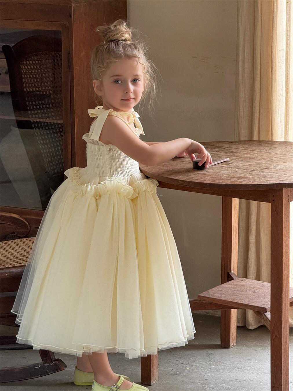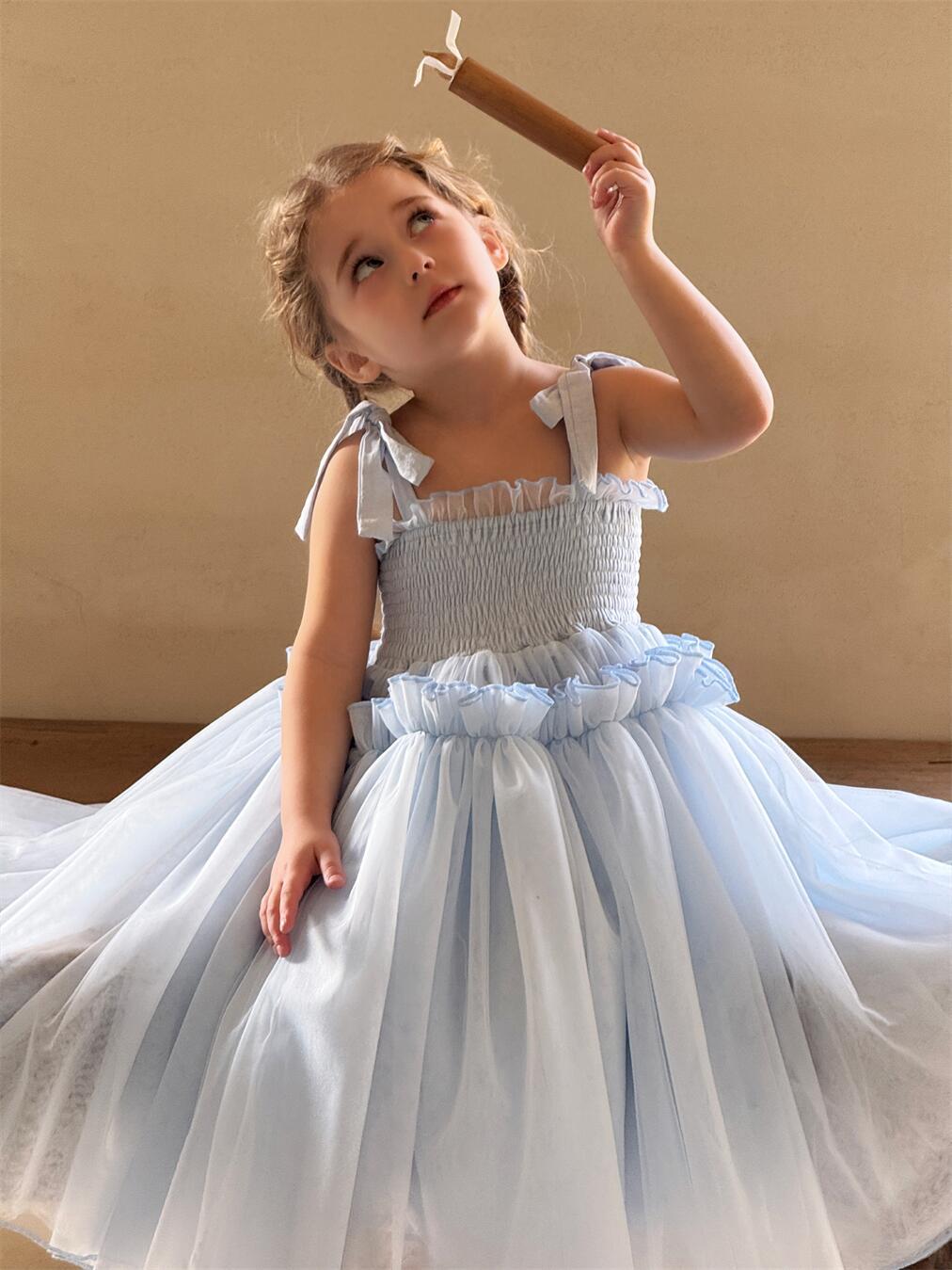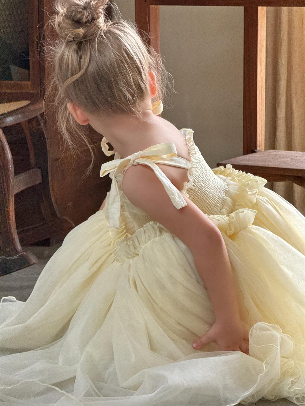 뾰족한 달걀 한국 아동복 2025 봄과 여름 새 소녀 원피스 거즈 스커트 공주 스커트 민소매 서스펜더 퍼프 스커트스토어 가기