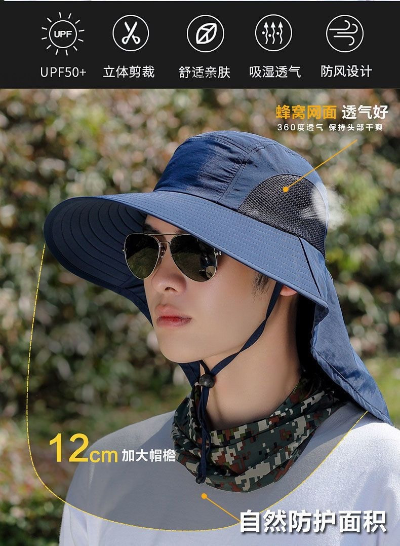 어부 모자 방풍 대형 처마 안티 자외선 차단 야외 등산 승마 자외선 캡 목 보호 통합 대외 무역 도매스토어 가기