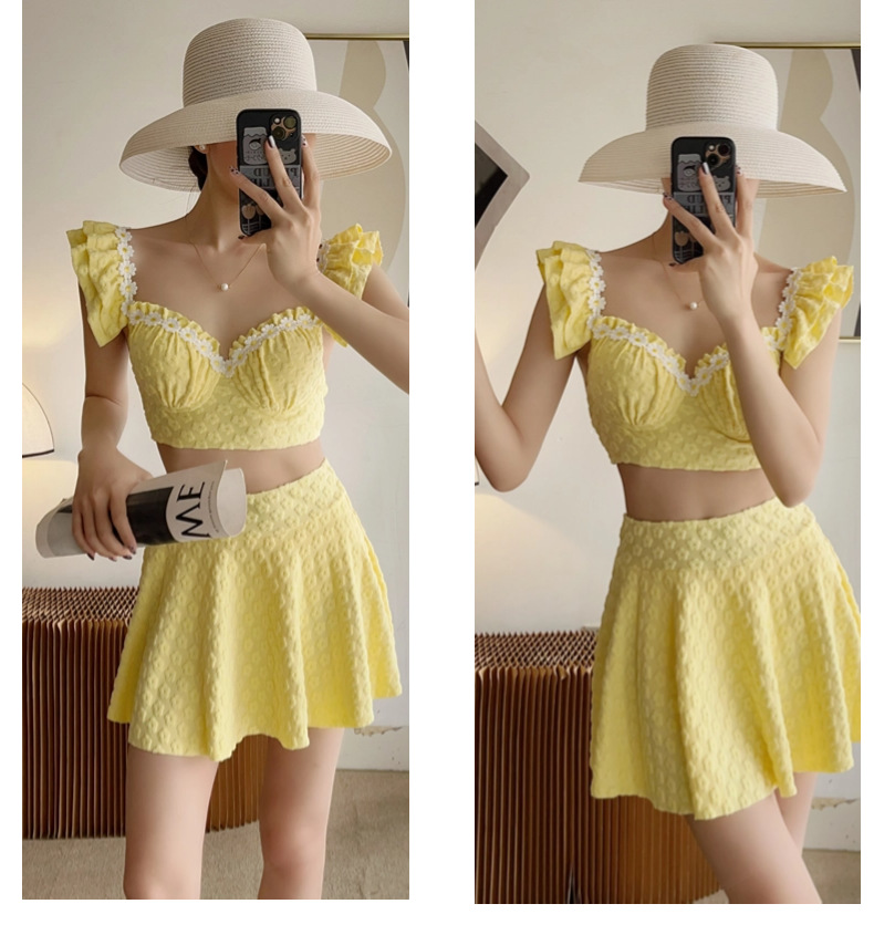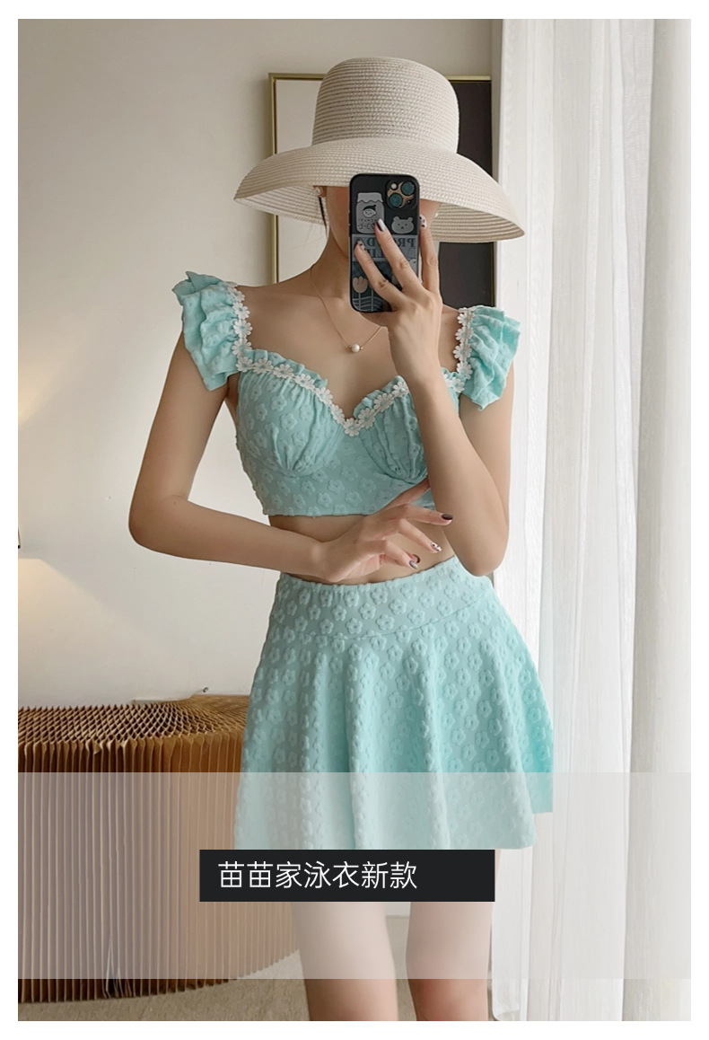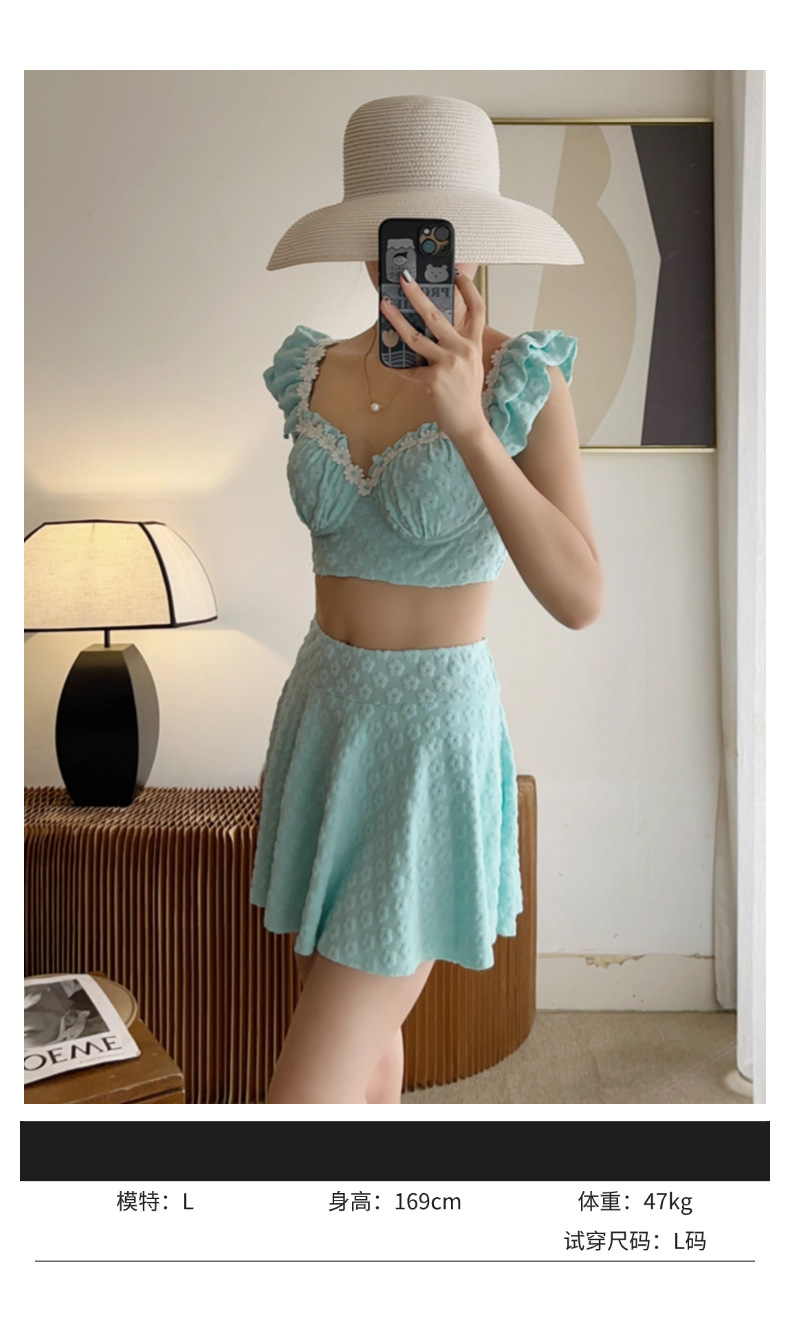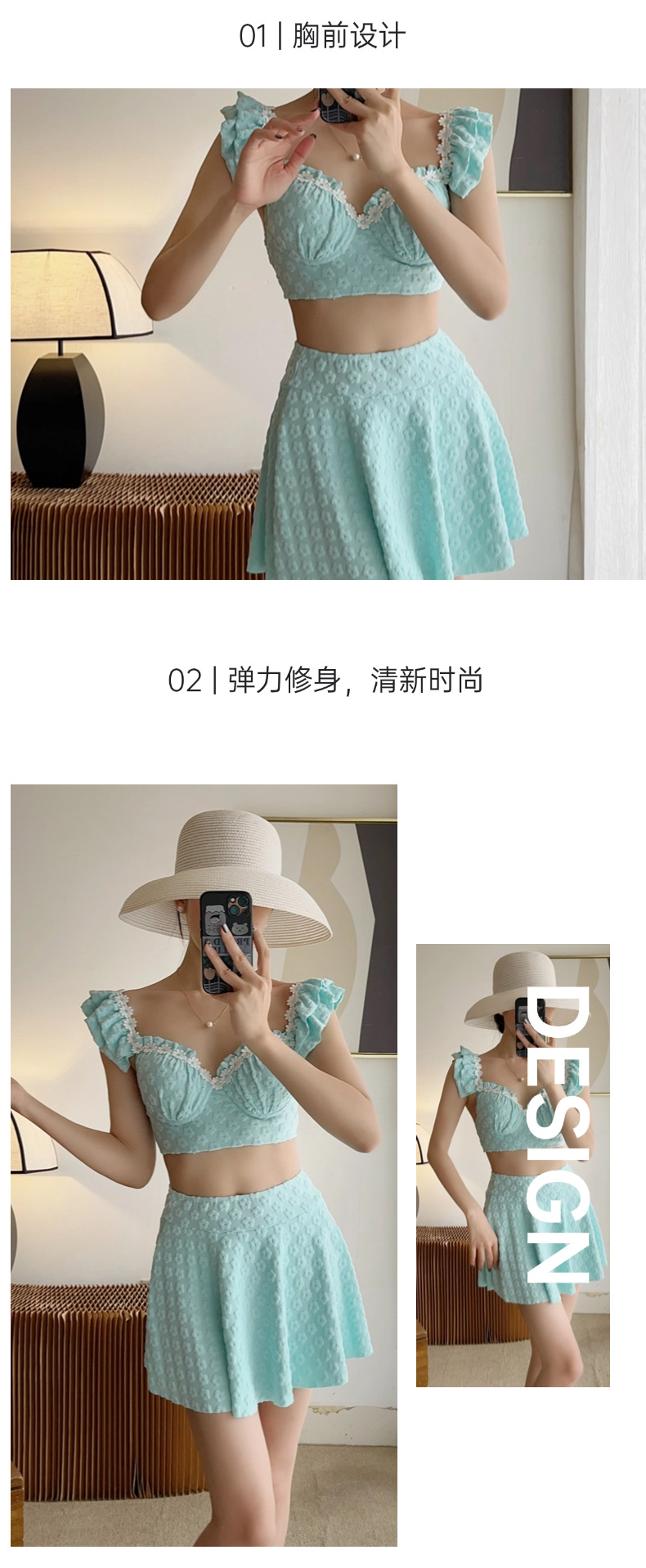 [리틀 데이지 스플릿] 여름 여성을위한 고급 질감 휴가 해변 분할 스커트 수영복 비키니 3 종 세트