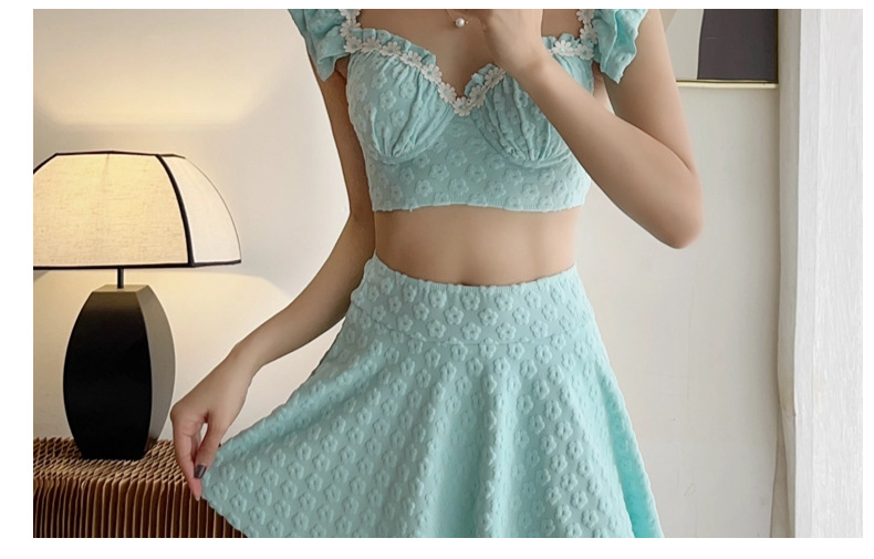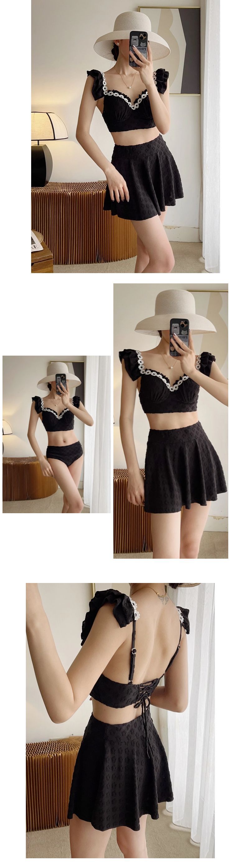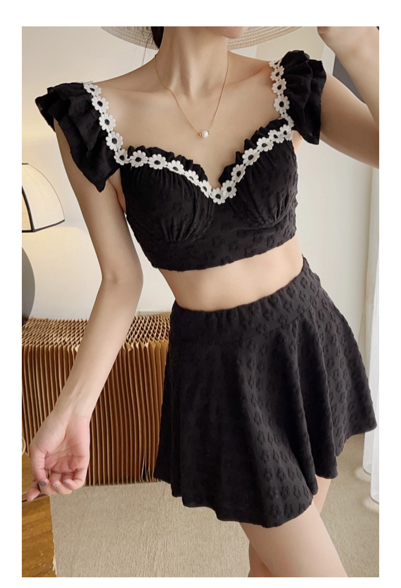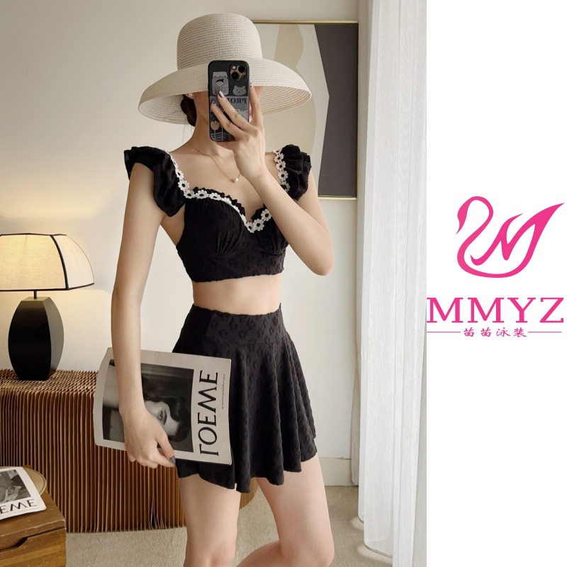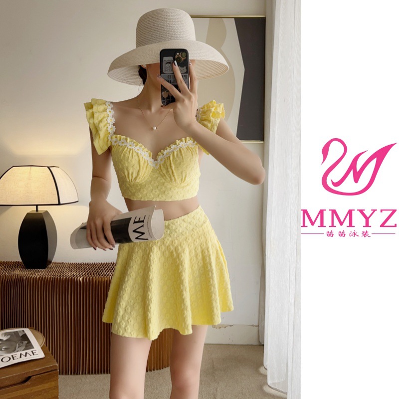 [리틀 데이지 스플릿] 여름 여성을위한 고급 질감 휴가 해변 분할 스커트 수영복 비키니 3 종 세트