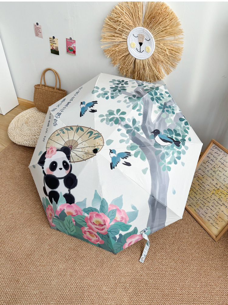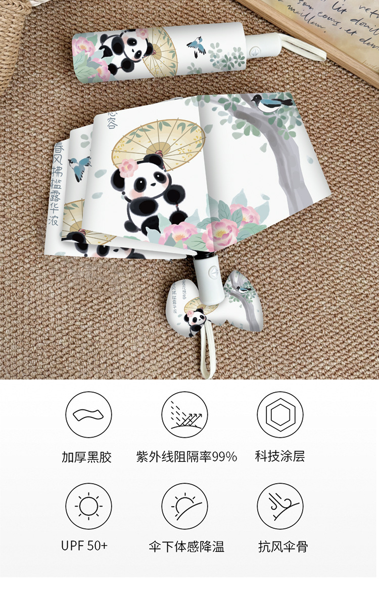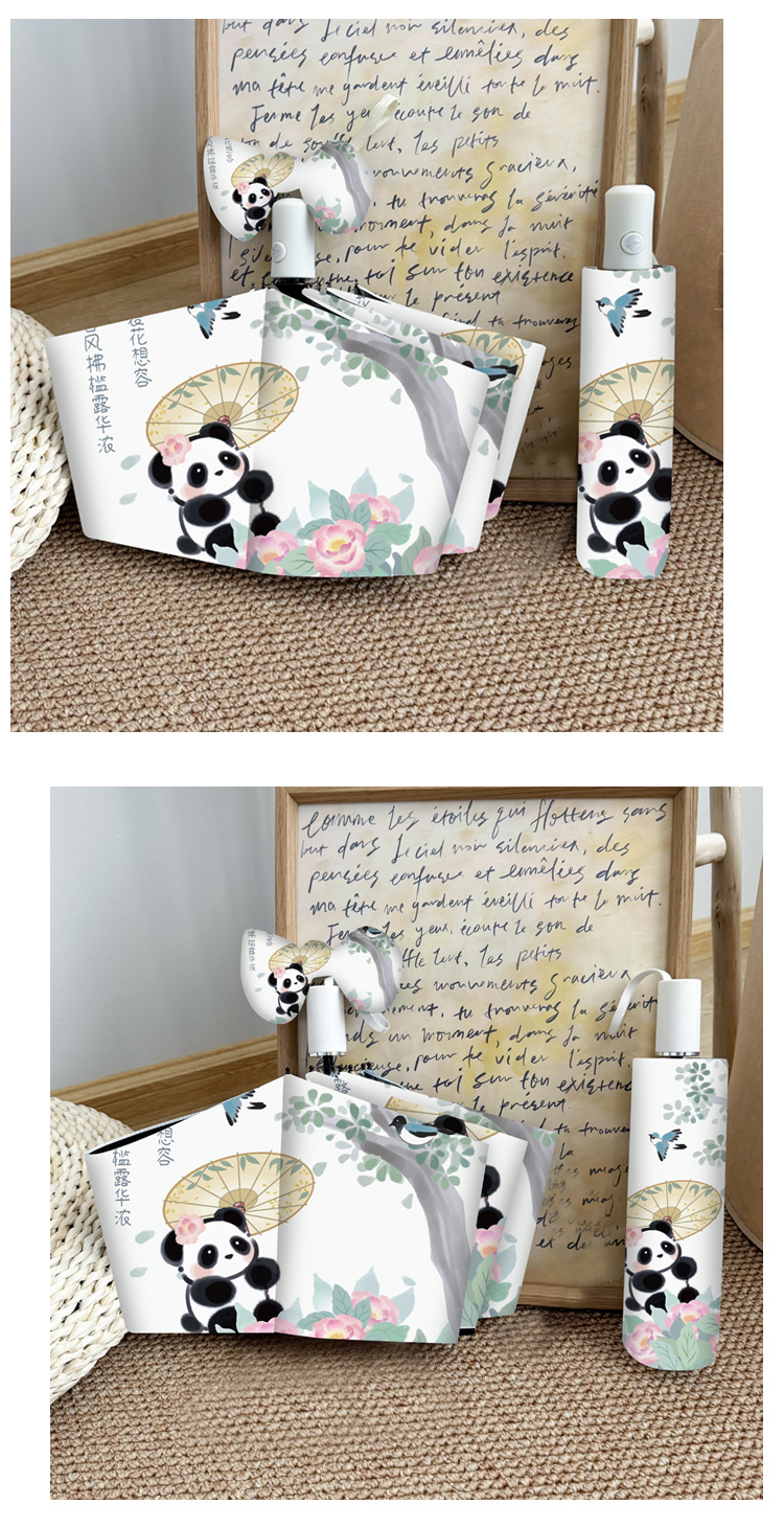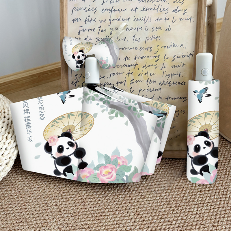 중국 스타일 팬더 완전 자동 우산 바람 강한 접이식 이중 목적 햇빛 자외선 방지 태양 우산스토어 가기
