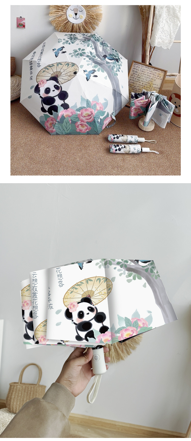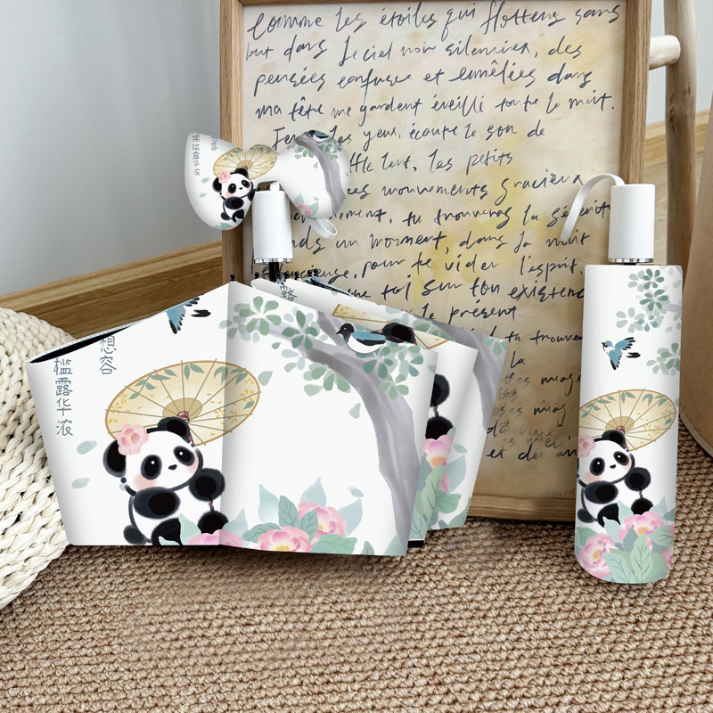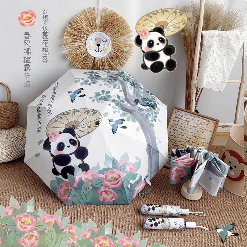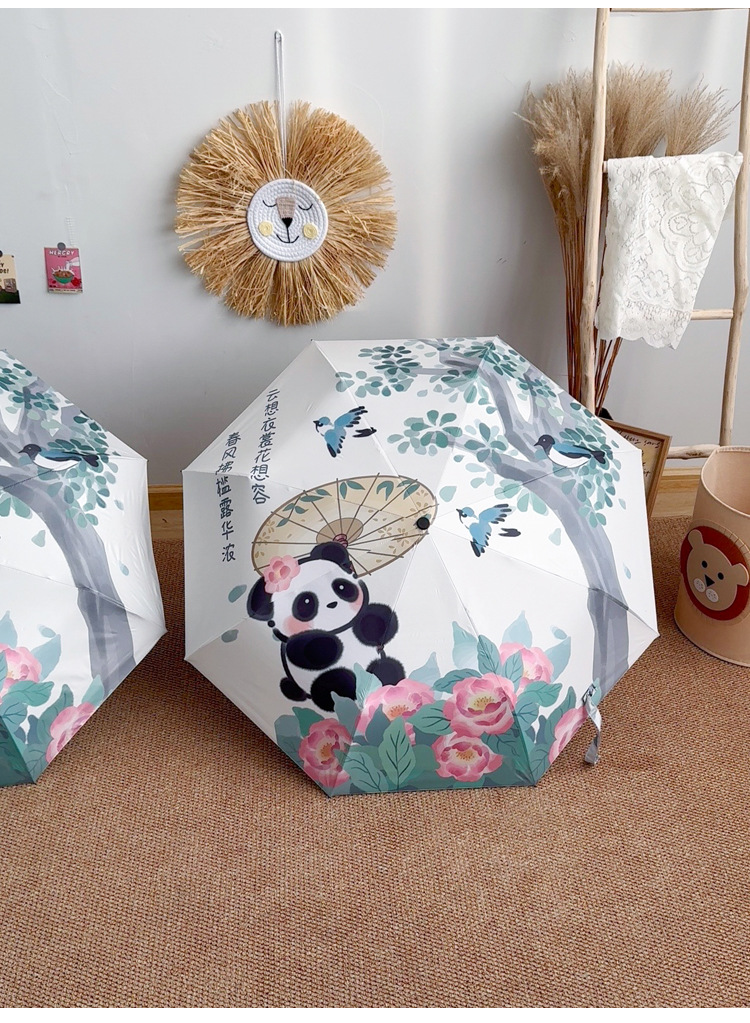 중국 스타일 팬더 완전 자동 우산 바람 강한 접이식 이중 목적 햇빛 자외선 방지 태양 우산스토어 가기