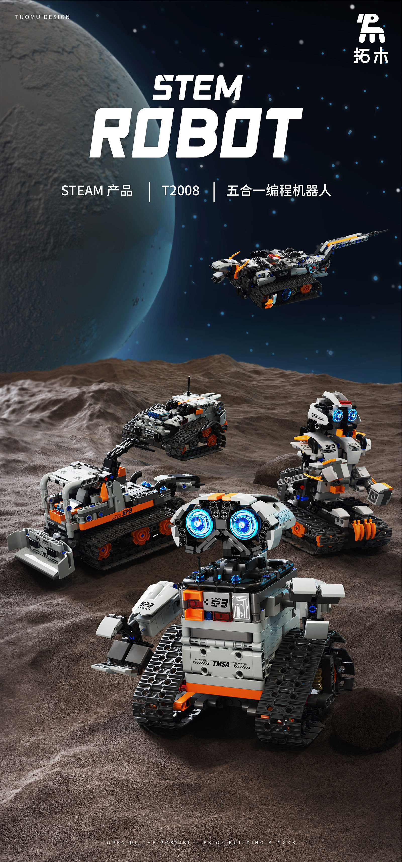 Tombwood T1010 타일 기술 빌딩 블록 5 대 1 프로그래밍 로봇 원격 제어 APP 프로그래밍 어린이 소년 장난감