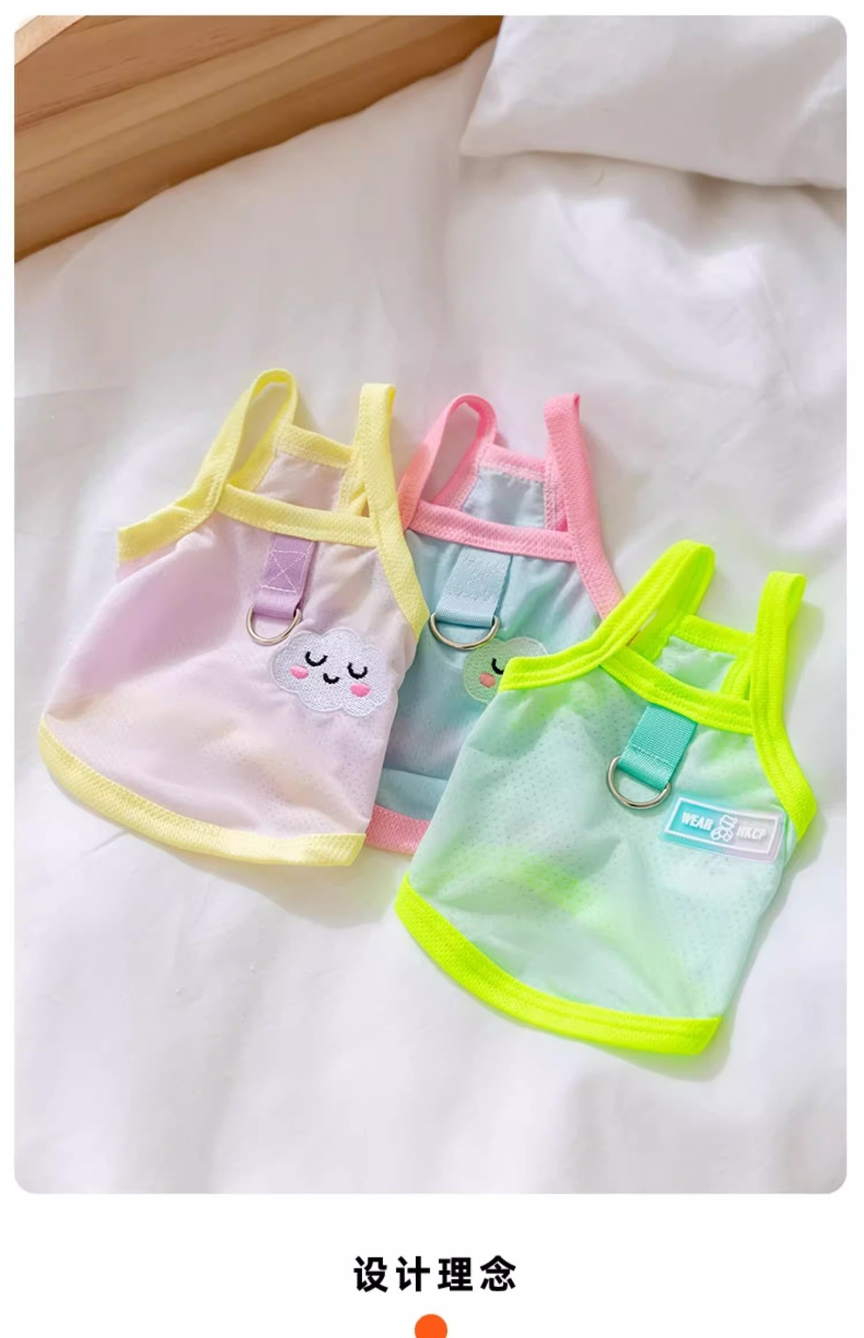 봄 여름 얇고 시원한 아이스 실크 양쪽 다리 스트랩 소형견 비숑 애완동물 의류 도매 강아지 옷스토어 가기
