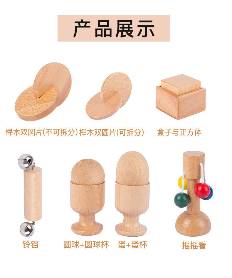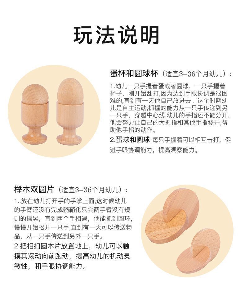 몬테소리 교육 인식 0-3 세 유아 조기 교육 너도밤 계란 컵 잡기 훈련 로그 IC 클래스 더블 라운드 조각 장난감스토어 가기