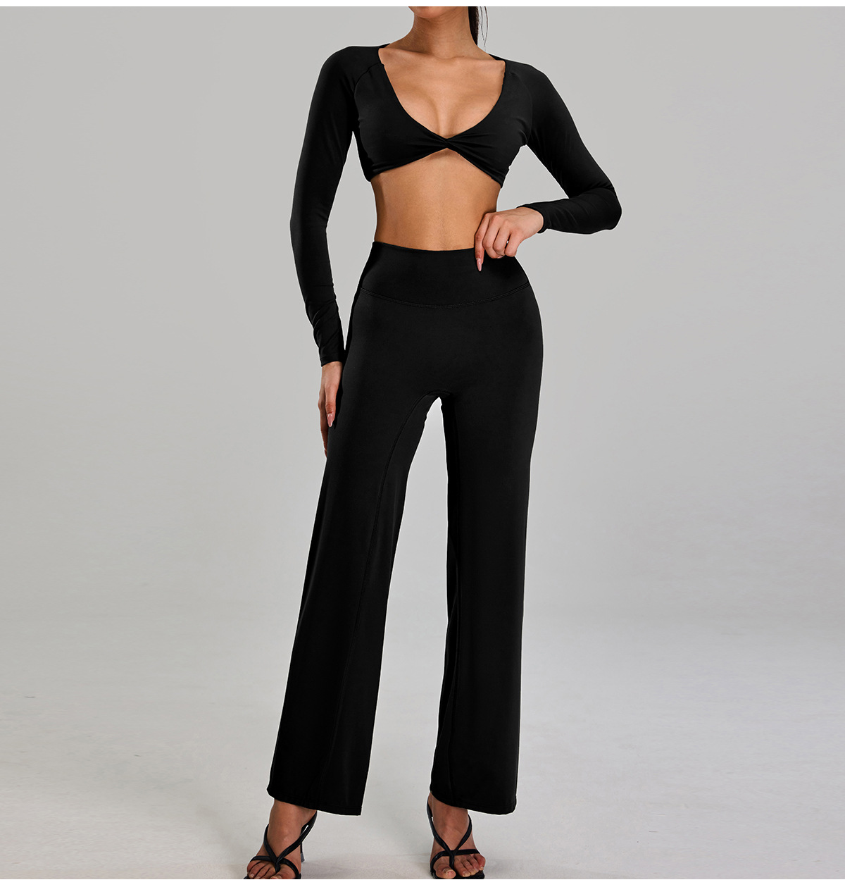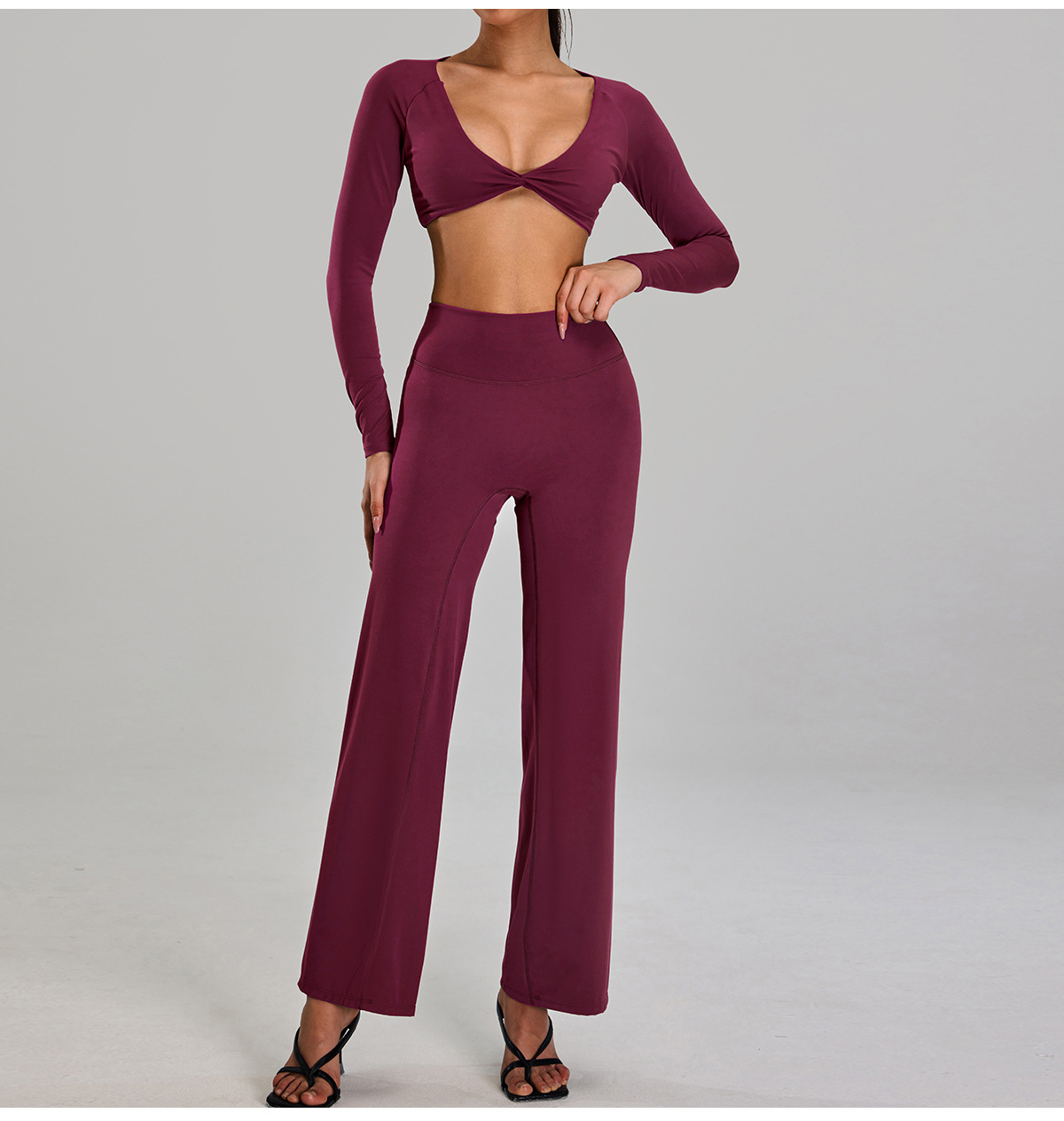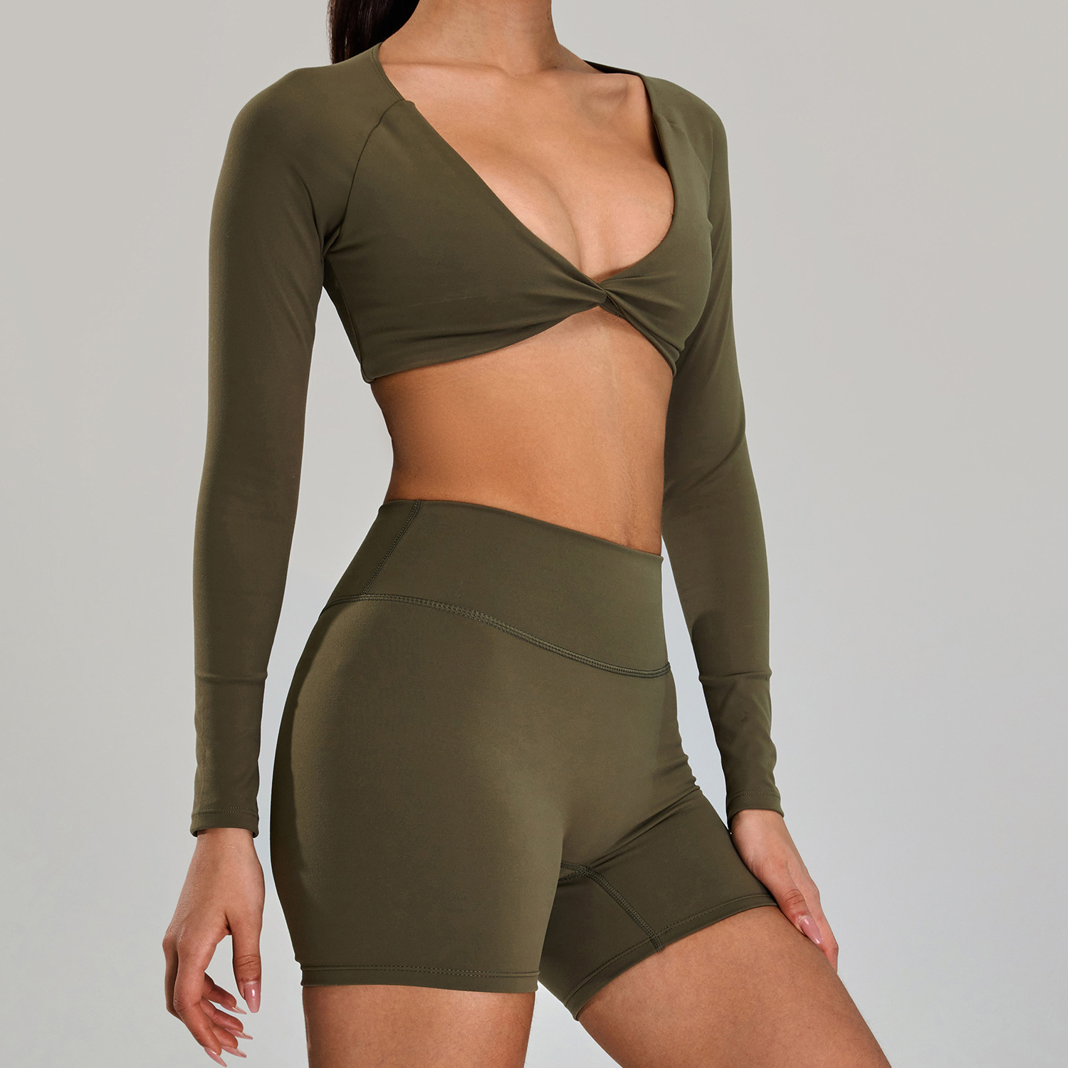 새로운 유럽과 미국의 요가 의류 여성의 빠른 건조 통기성 타이트 티셔츠 피트니스 의류 캐주얼 러닝 스포츠 긴팔 탑