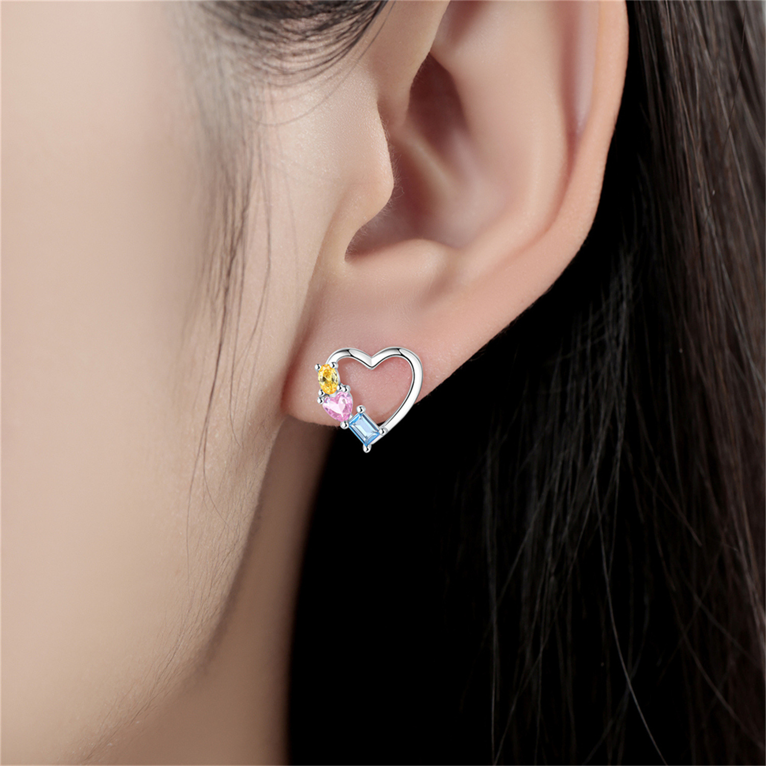 • OSE3076-중공 하트 모양의 컬러 지르코늄 귀걸이