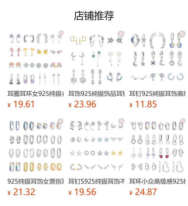 공장 직접 귀걸이 귀걸이 S925 스털링 실버 사랑 가벼운 고급 귀걸이 틈새 하이 엔드 귀걸이 보석 여성 대외 무역스토어 가기