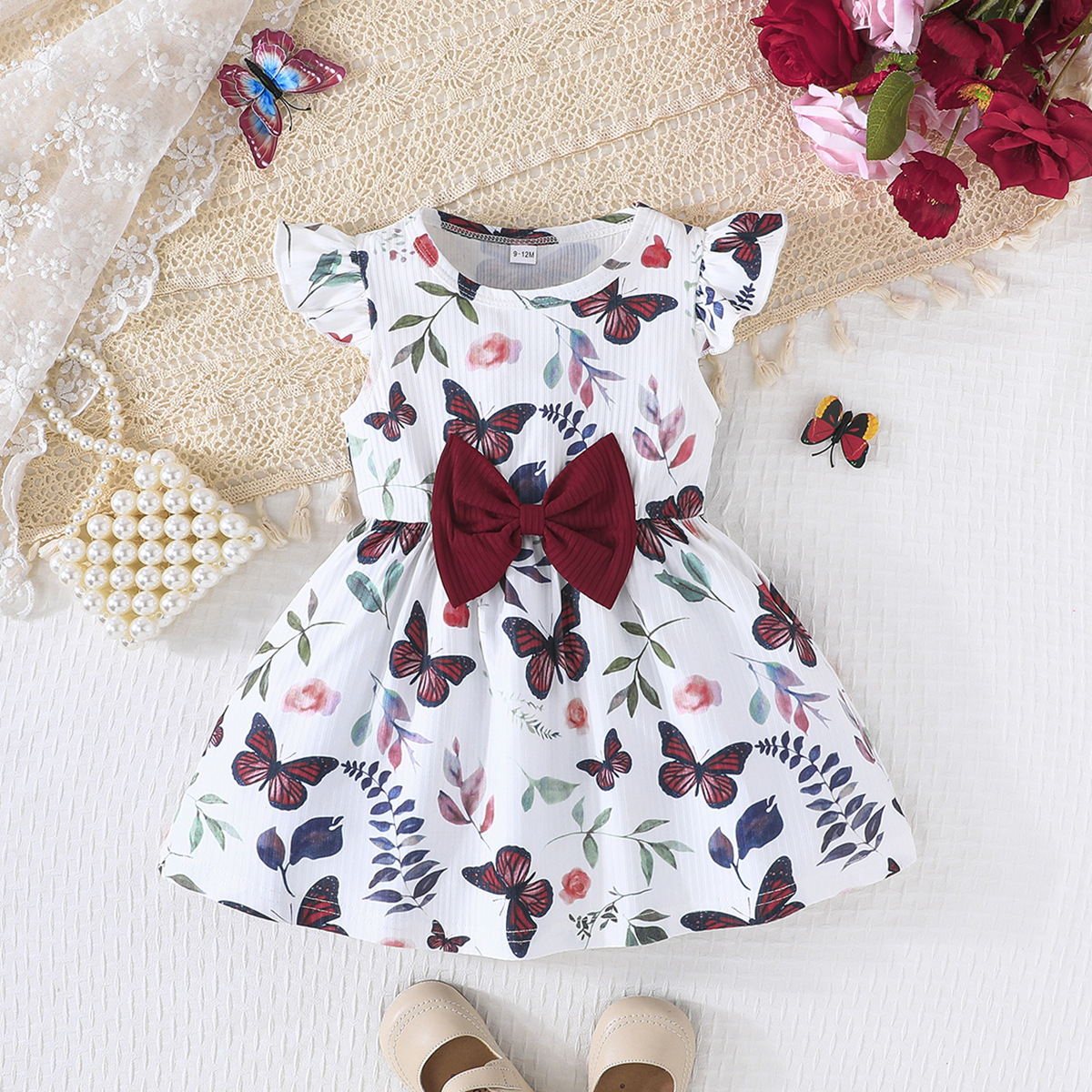 국경 2025 귀여운 아기 소녀 여름 새로운 나비 패턴 원피스 단색 원피스 2 조각 조합스토어 가기
