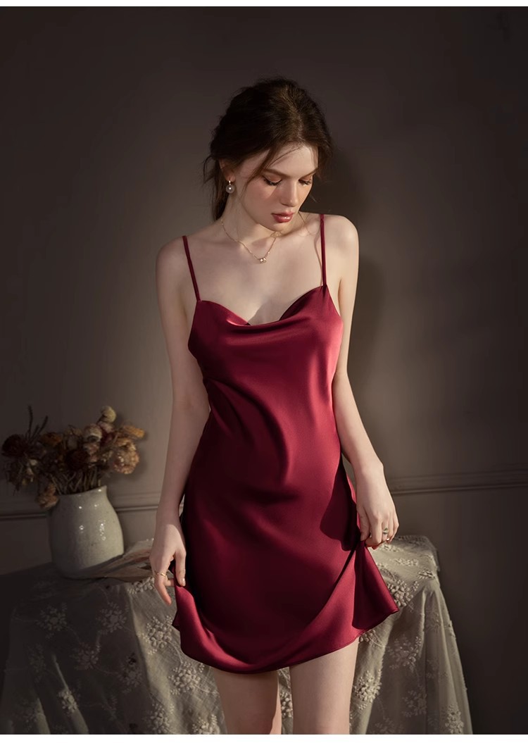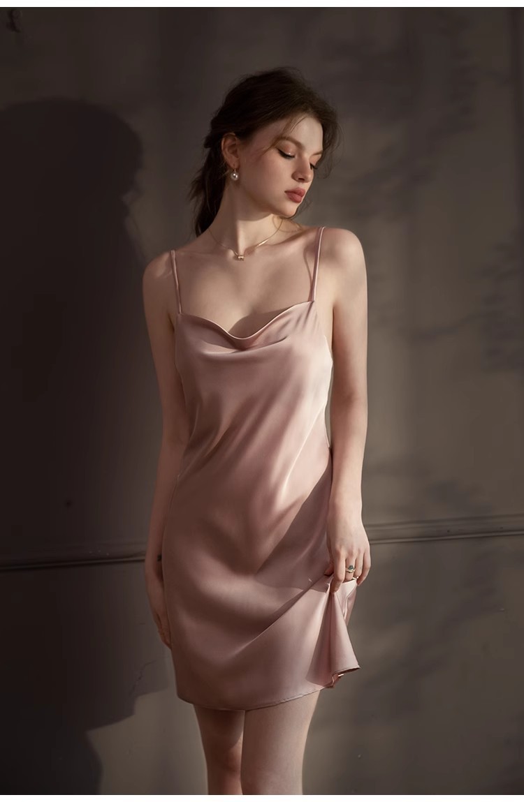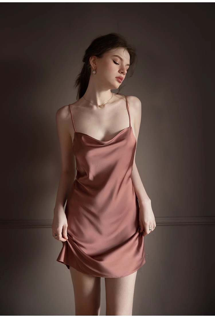 • 단조 실크 잠옷 - 미젠 컬러 프렌치 스타일
