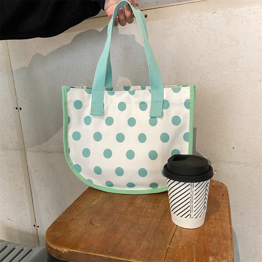 13142 웨이브 포인트 캔버스 가방 여성 여름 작업 작은 가방 간단한 핸드백 점심 가방 미라 가방