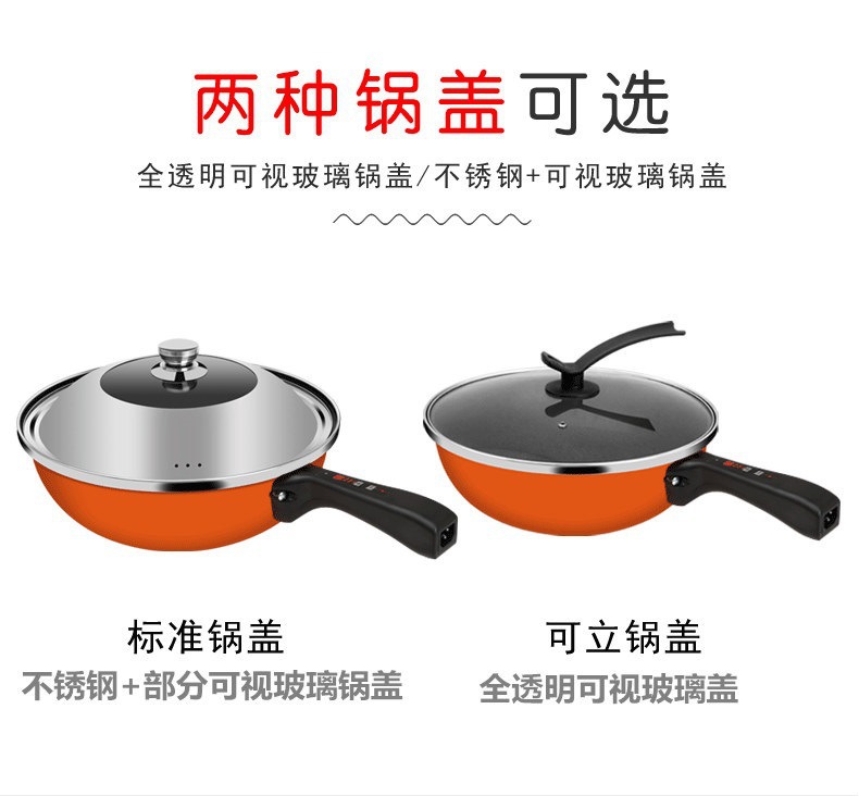 • 橙色智能五档控温麦饭石-可立玻璃盖-带蒸屉