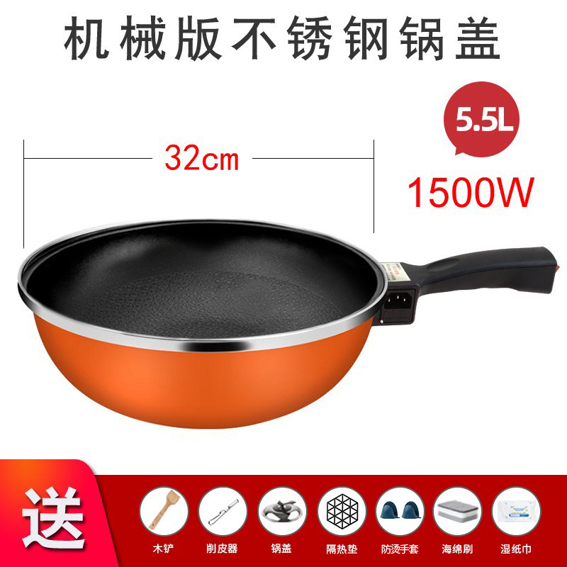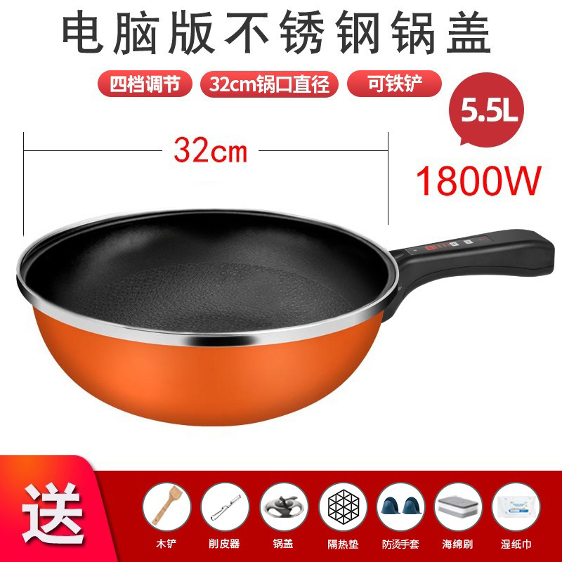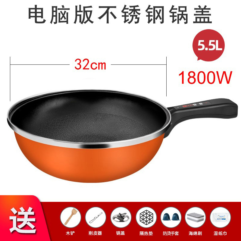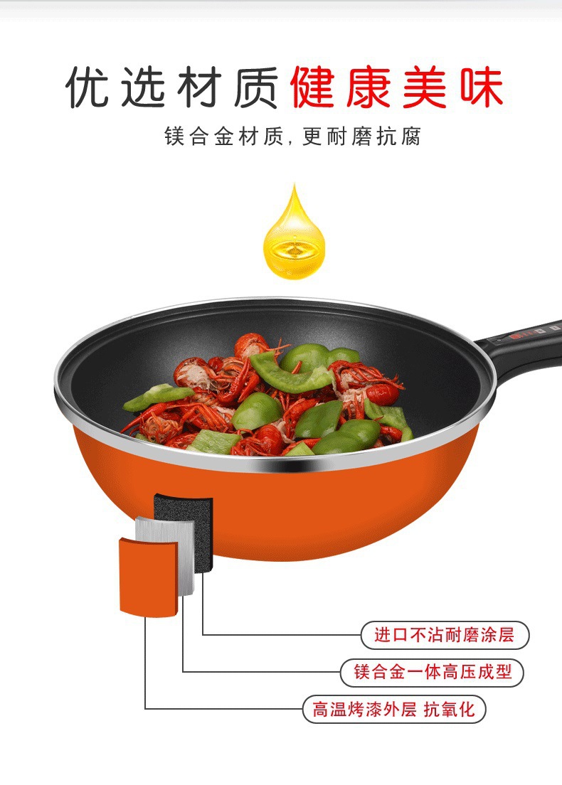 • 橙色智能五档控温麦饭石-不锈钢锅盖