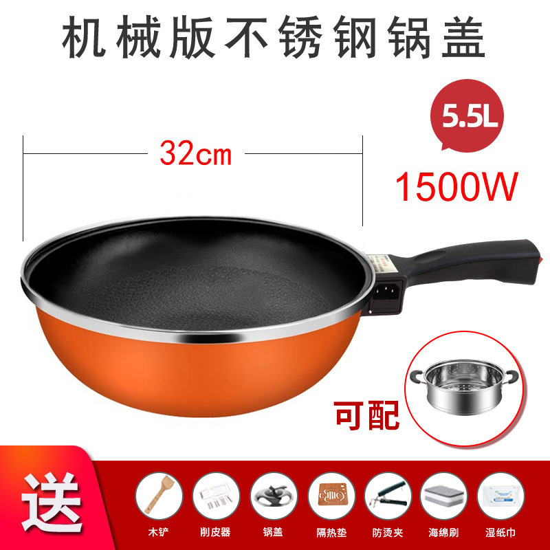 • 橙色智能五档控温麦饭石-不锈钢锅盖-带蒸屉